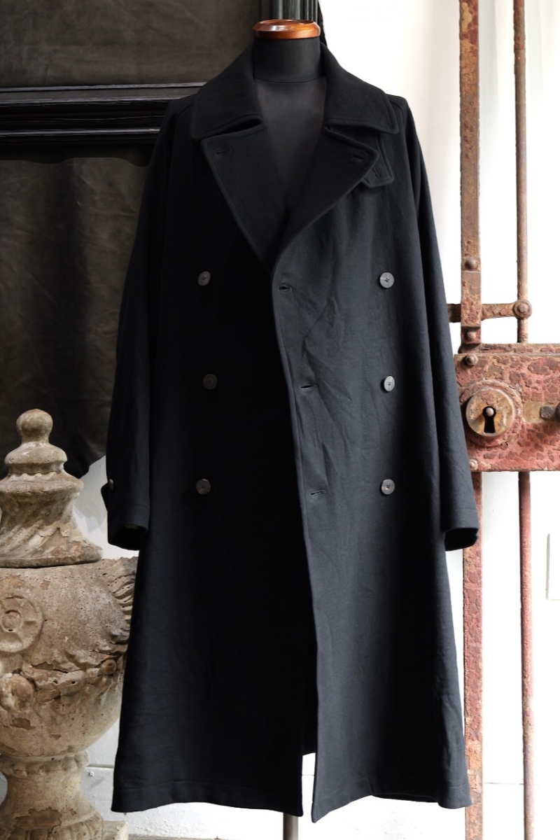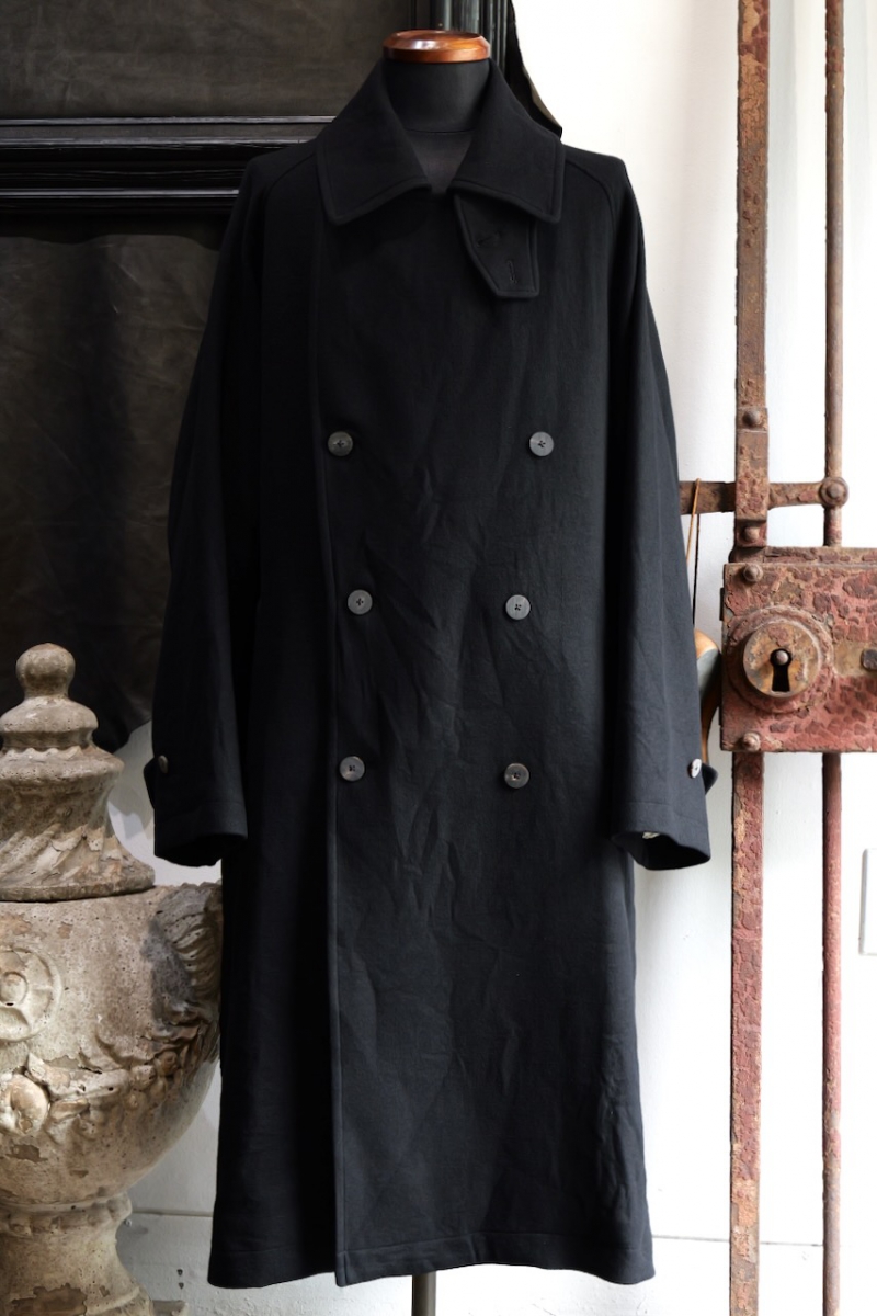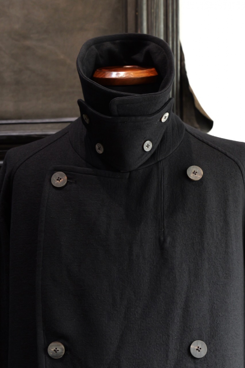 COAT008. Double Breasted Coat Super180 Wool Double Cloth. Black. Collection 005. calmlence.