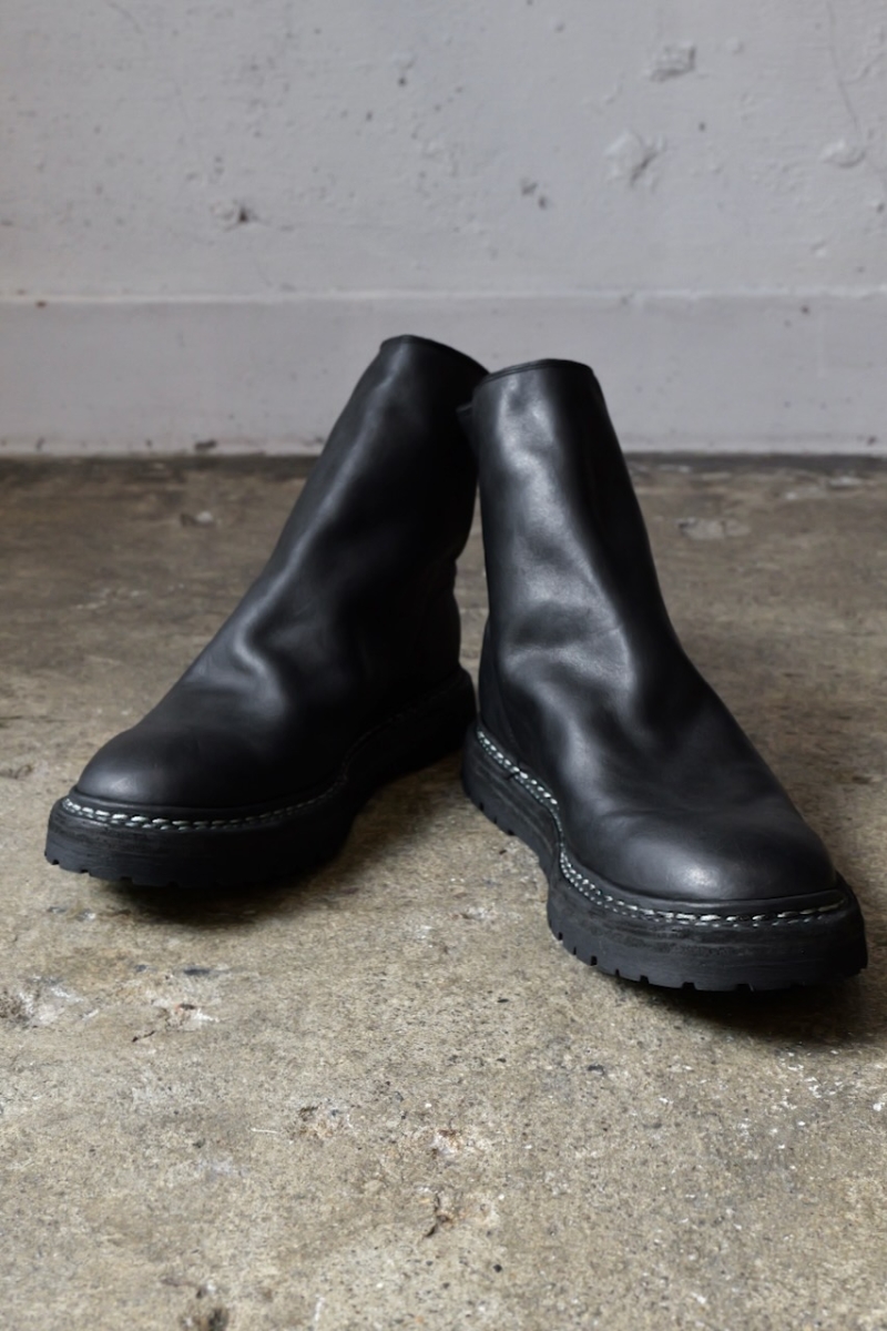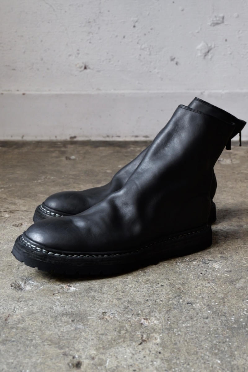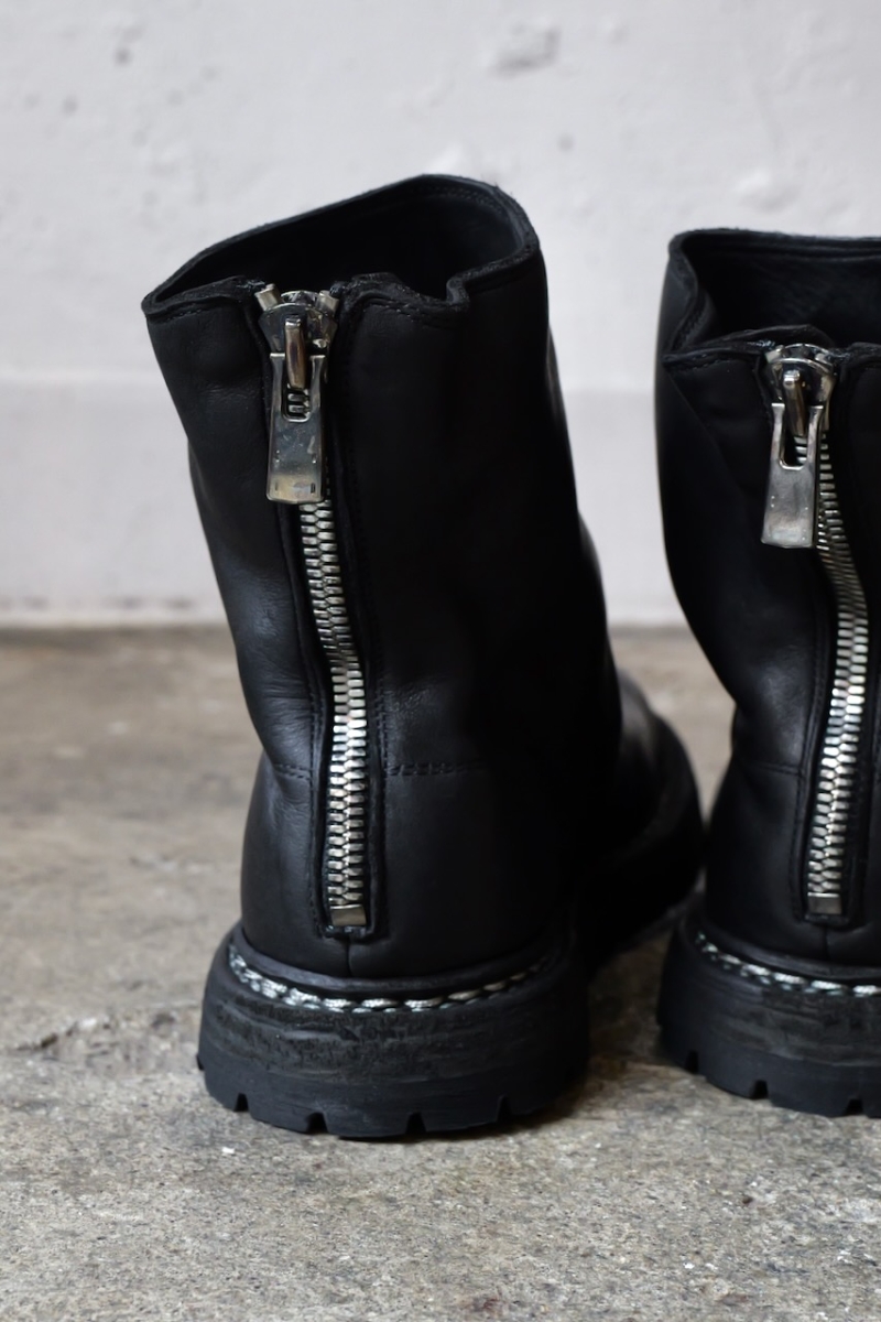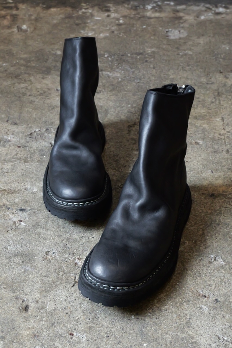 No 9860V_N. Norwegian Welted Process Back Zip Boots Horse Full Grain. BLKT(Black). GUIDI.