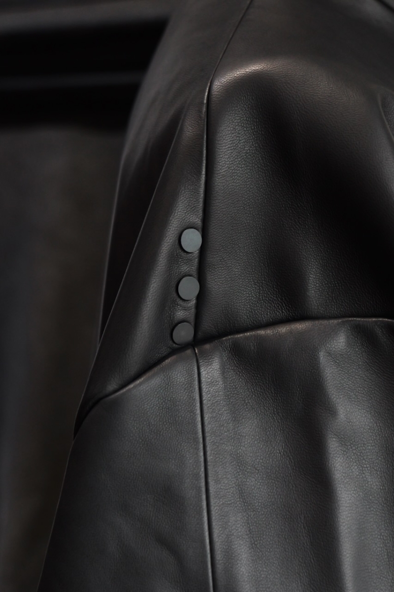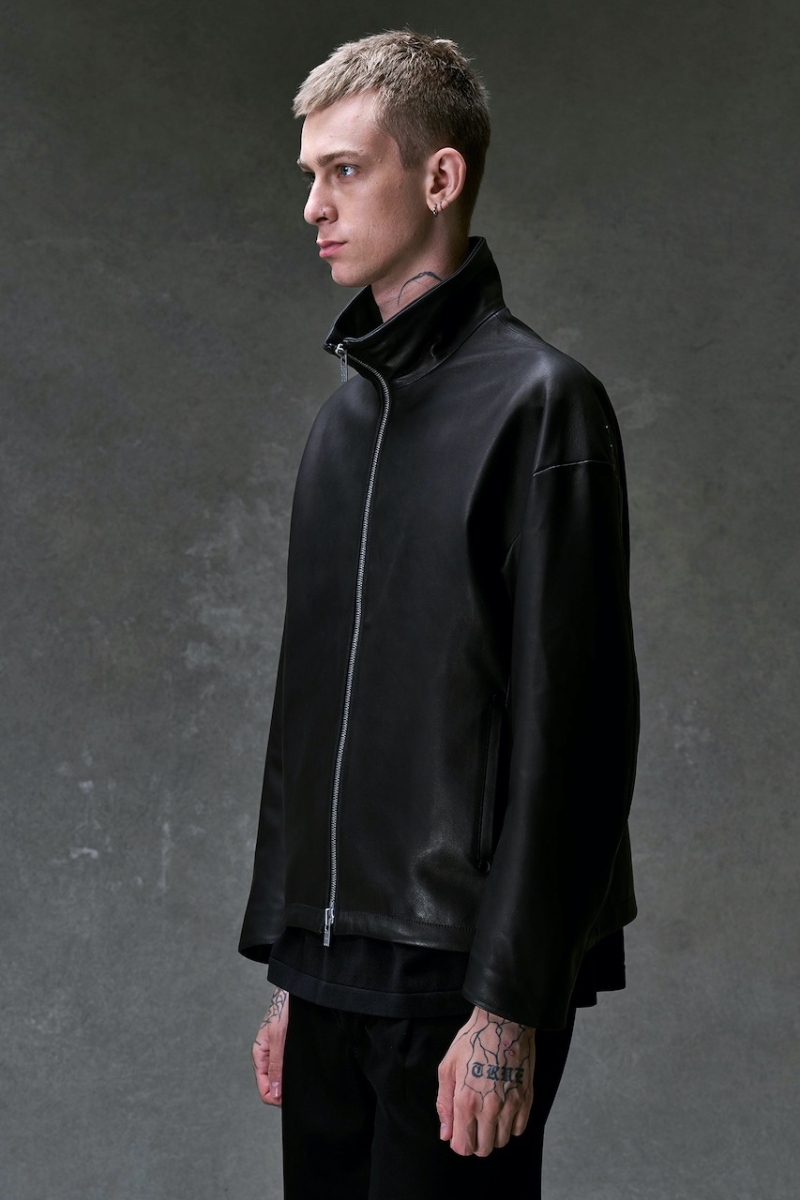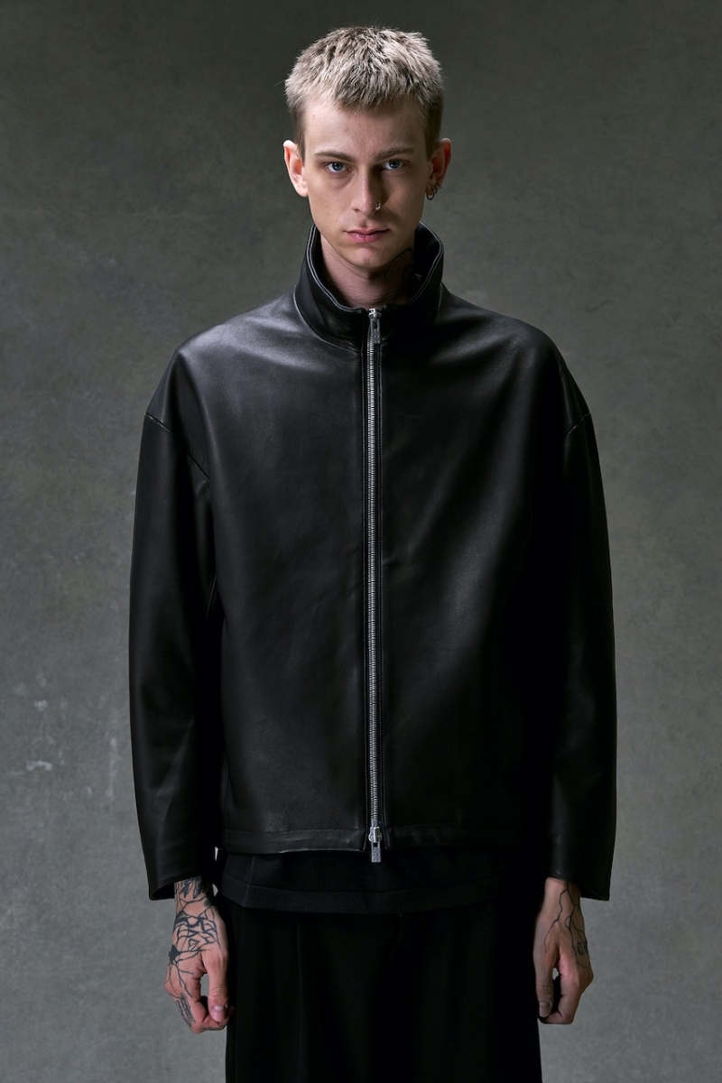 ・デザインはハイネックのレザージャケット。