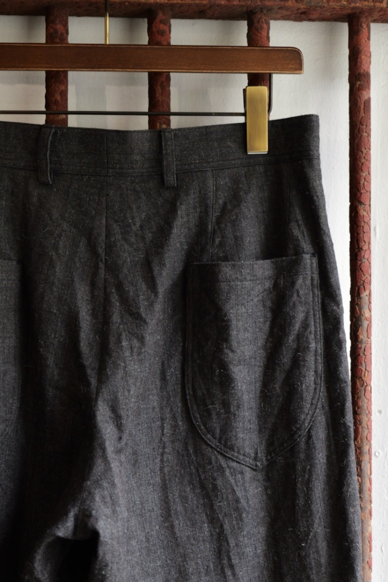腿周りのボリューム、ヒップから裾に向けて直線的に落ちるラインなどに拘っています。