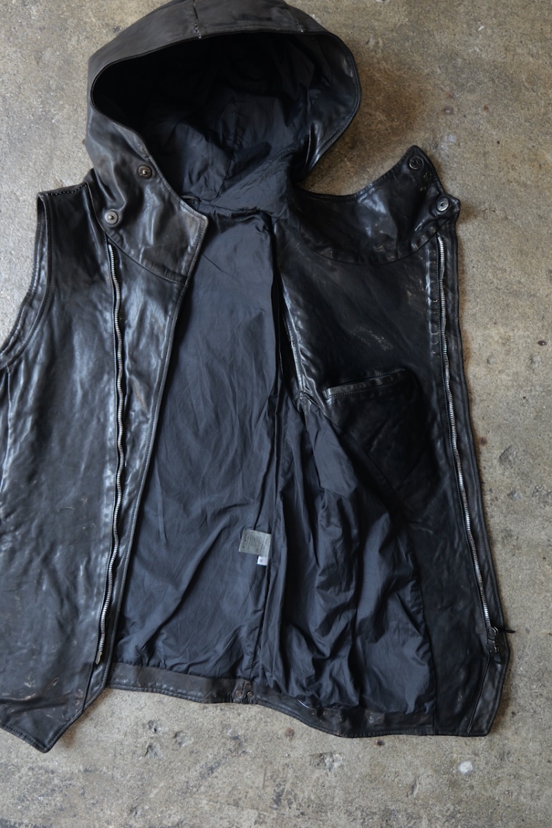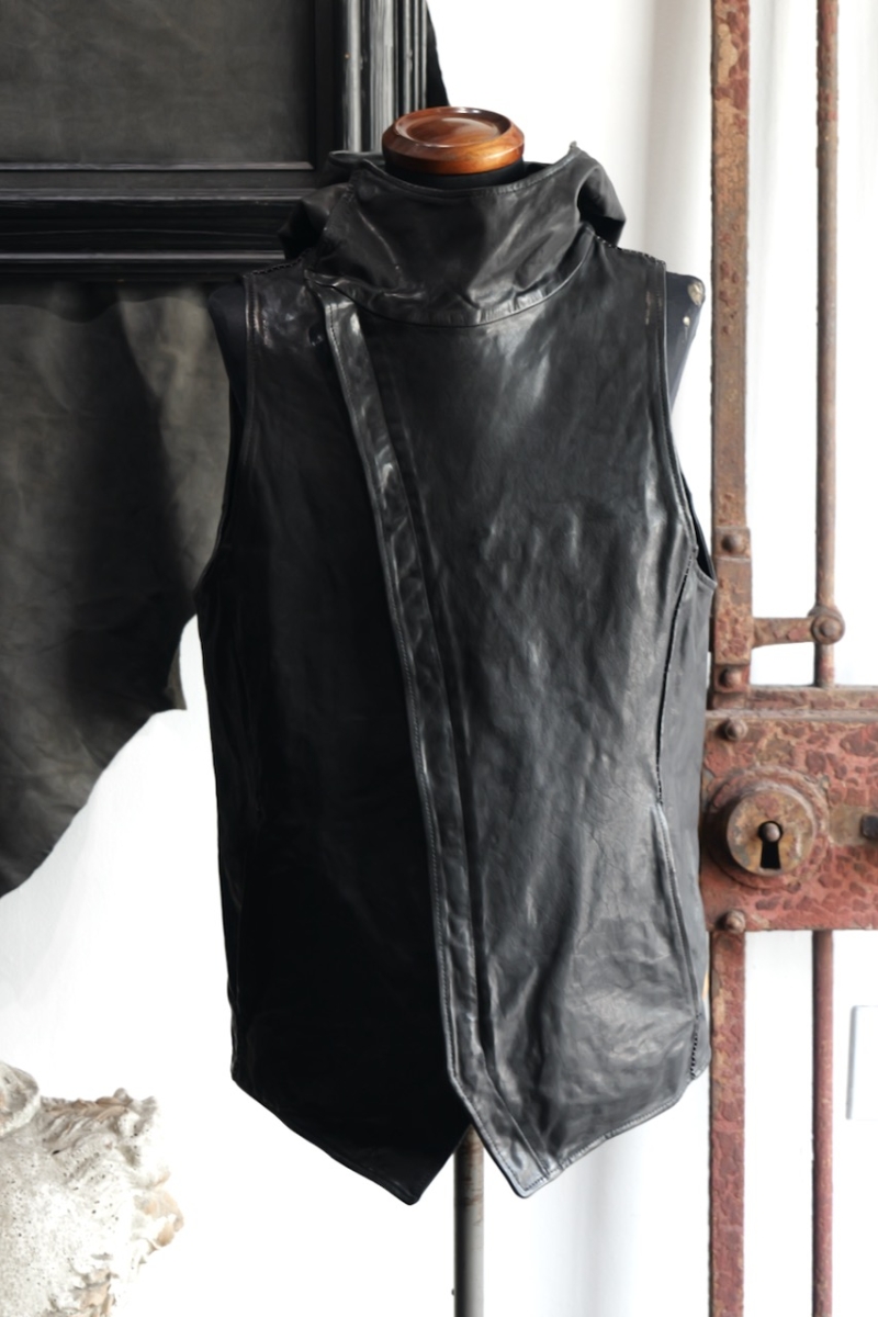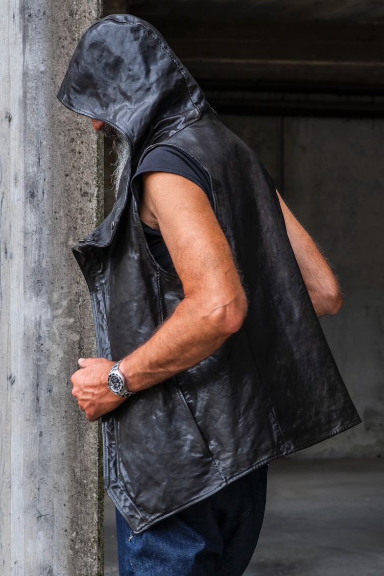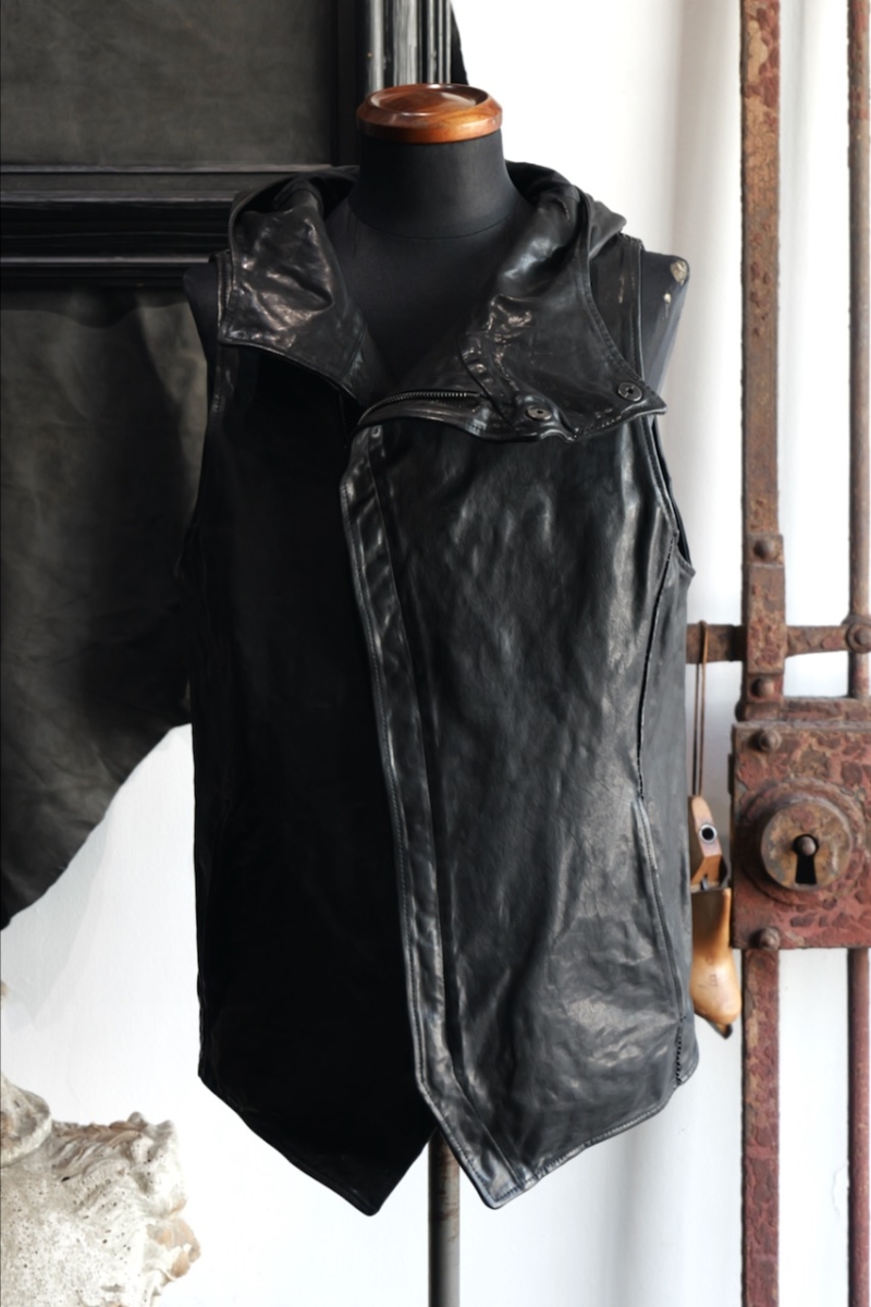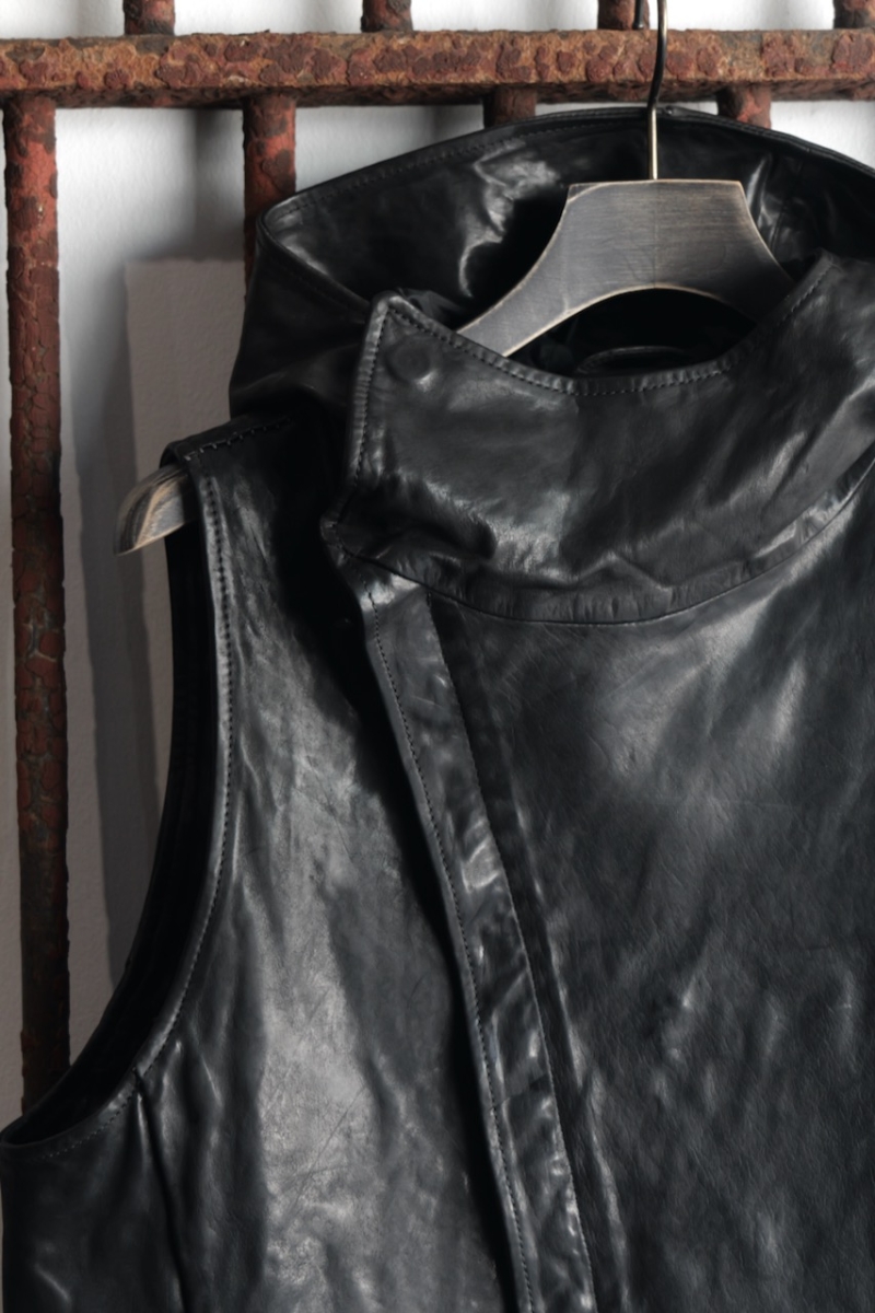 HORSE LEATHER HI NECK HOODED ZIP FRONT VEST LINED HV-2.