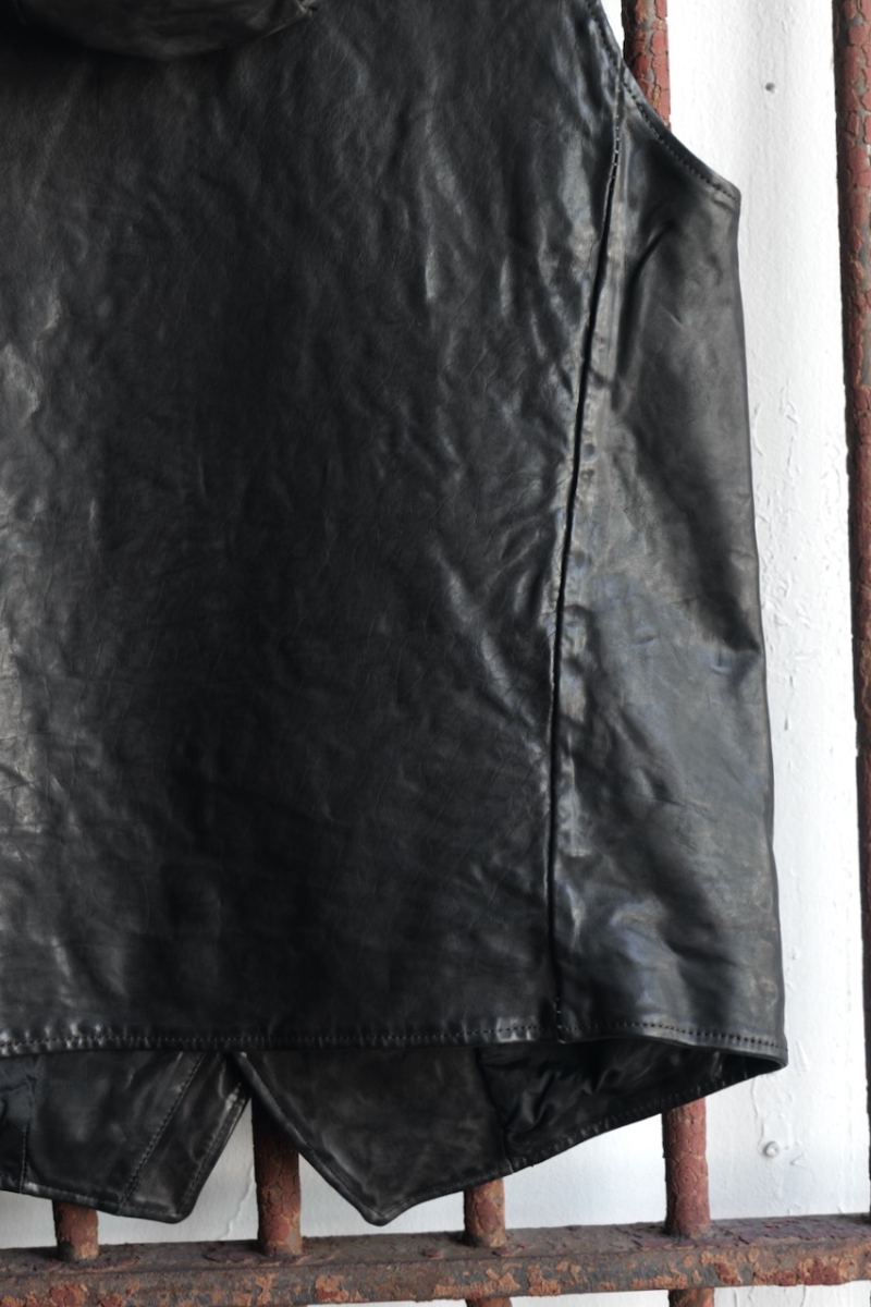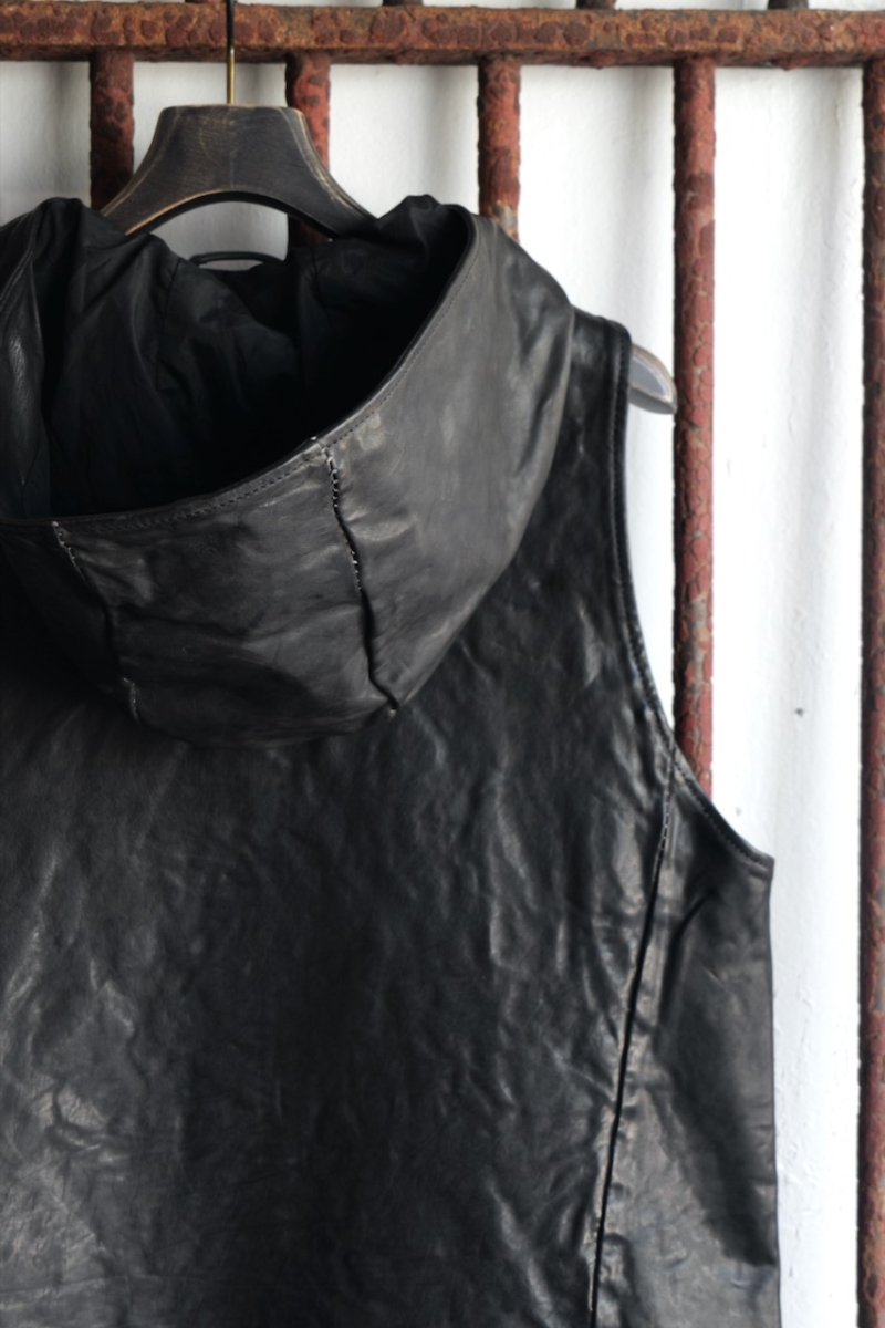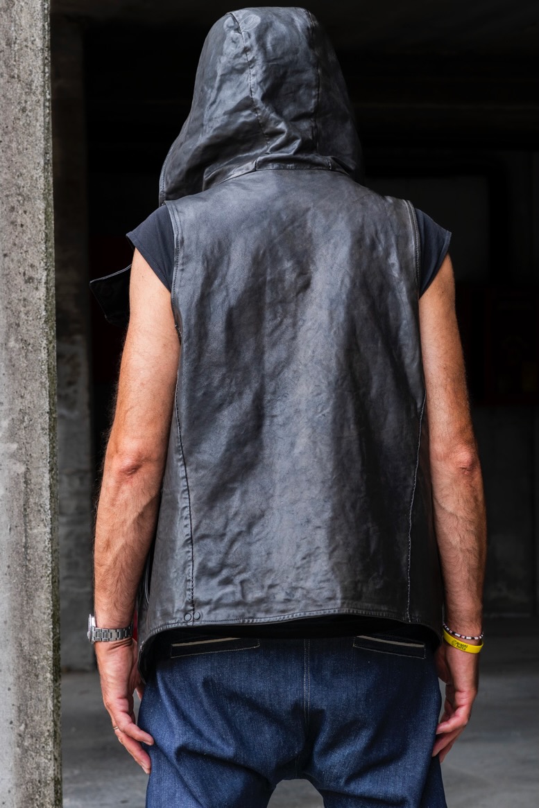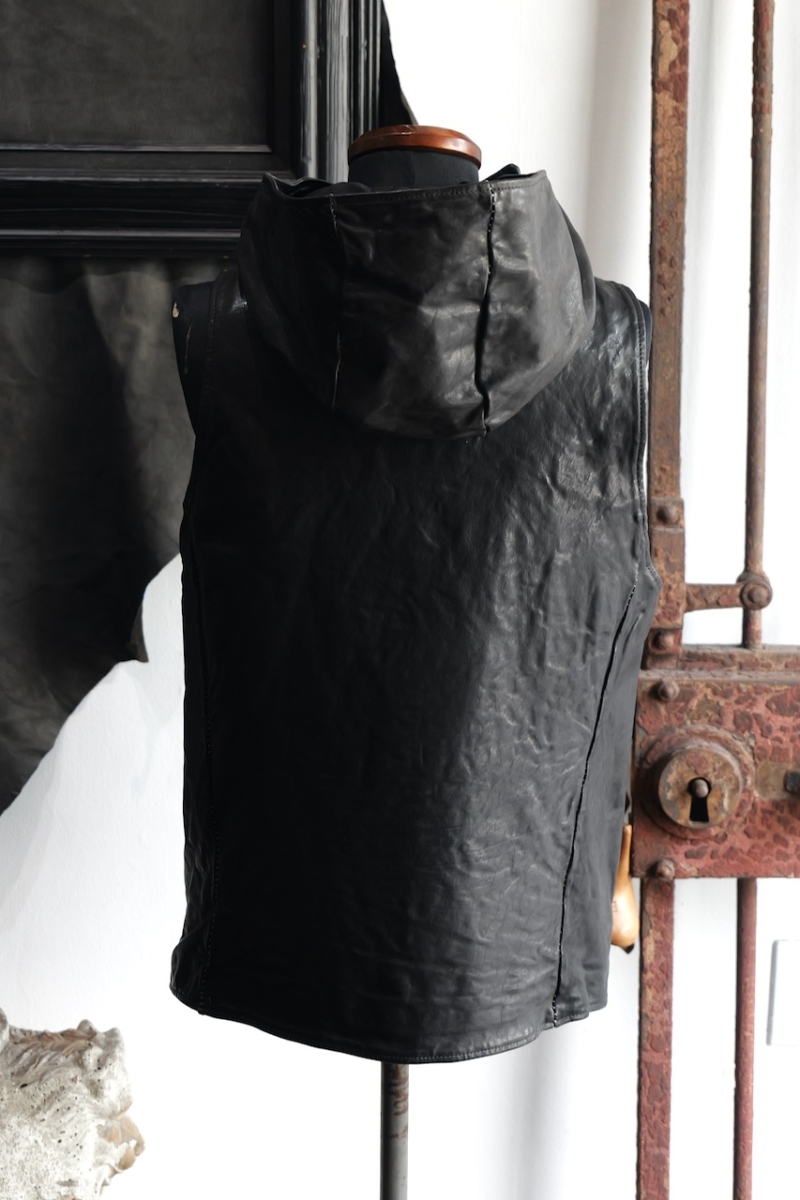 HORSE LEATHER HI NECK HOODED ZIP FRONT VEST LINED HV-2.