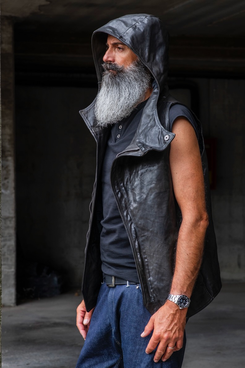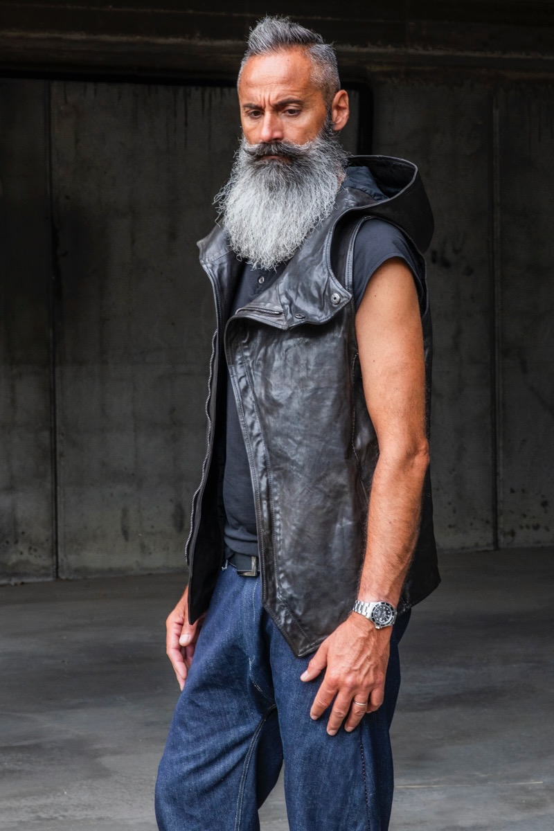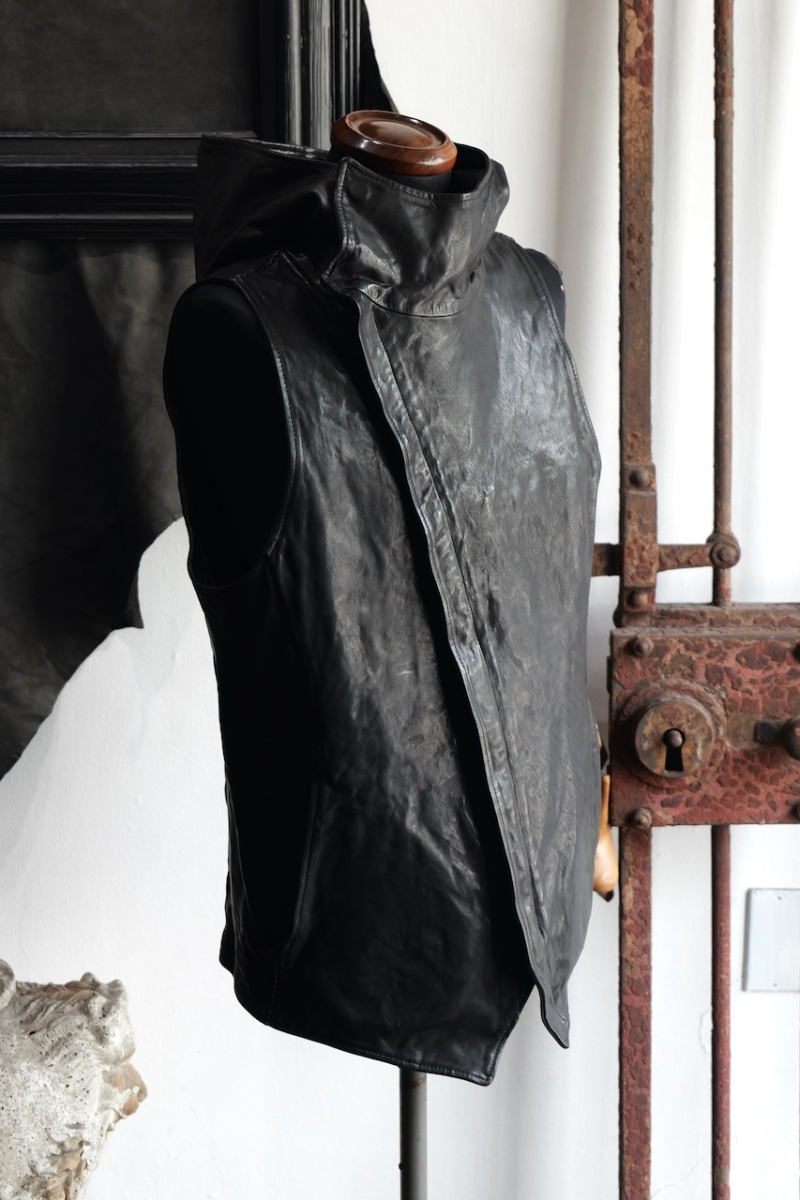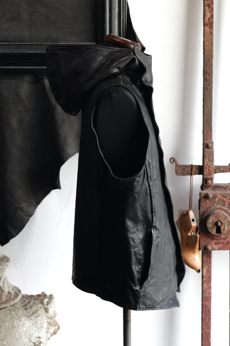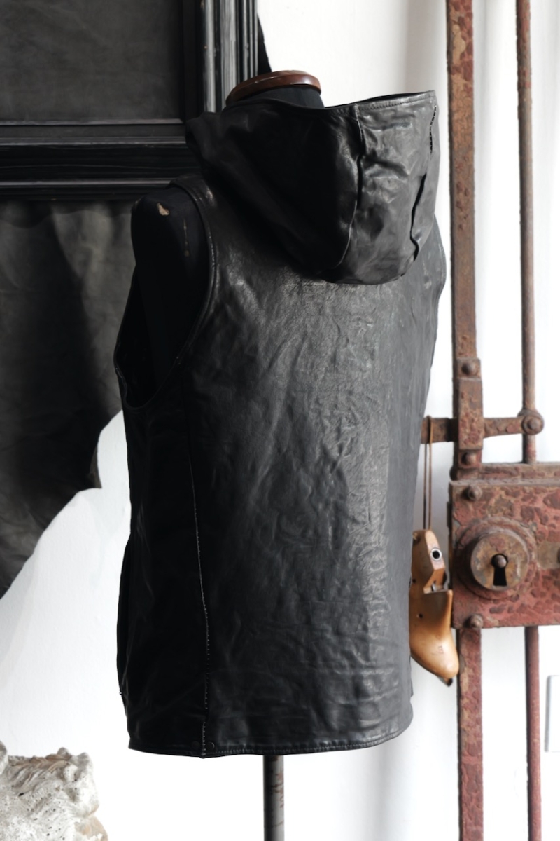 HORSE LEATHER HI NECK HOODED ZIP FRONT VEST LINED HV-2.
