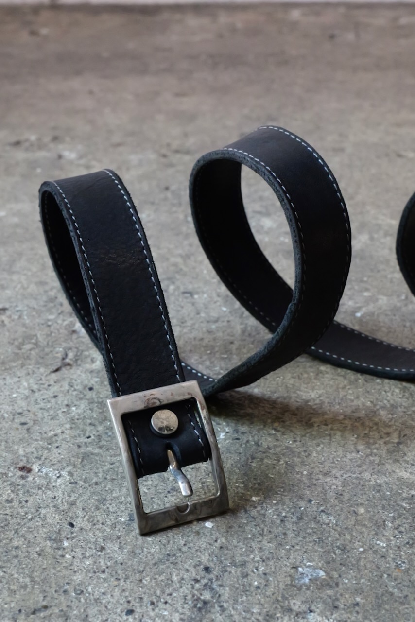 14-81117. CALF SHOULDER LEATHER BELT SQARE 30. 83N(Lead Gray). incarnation.
