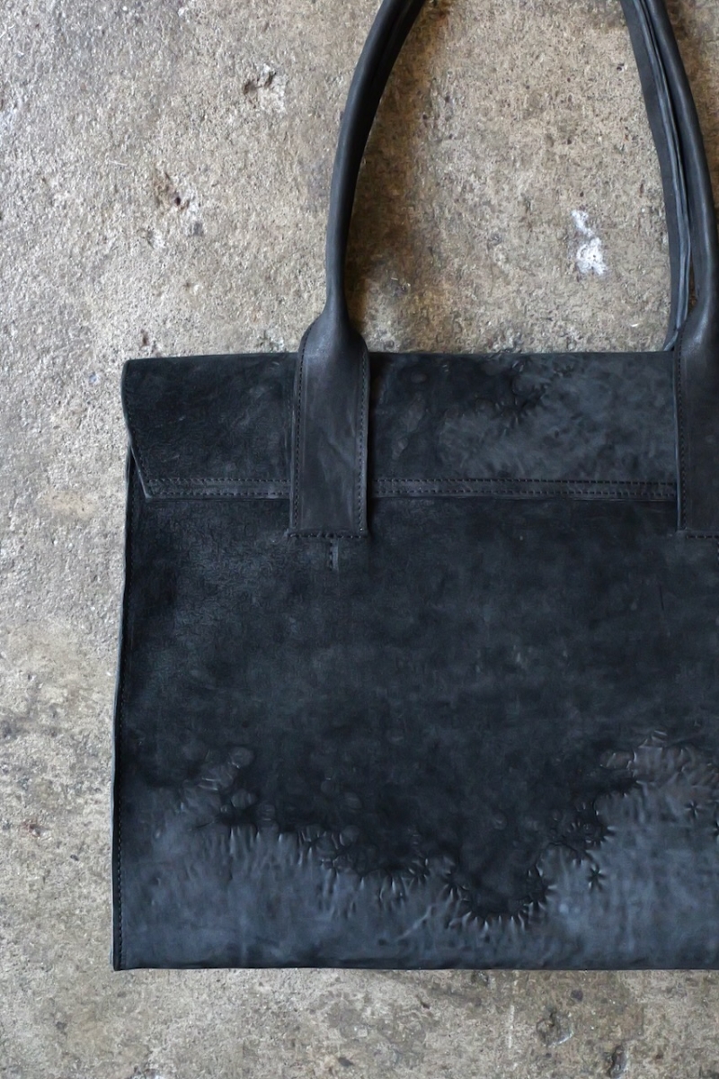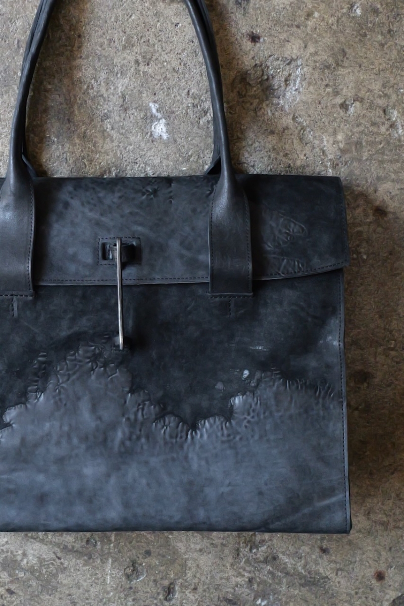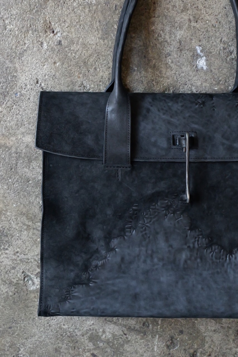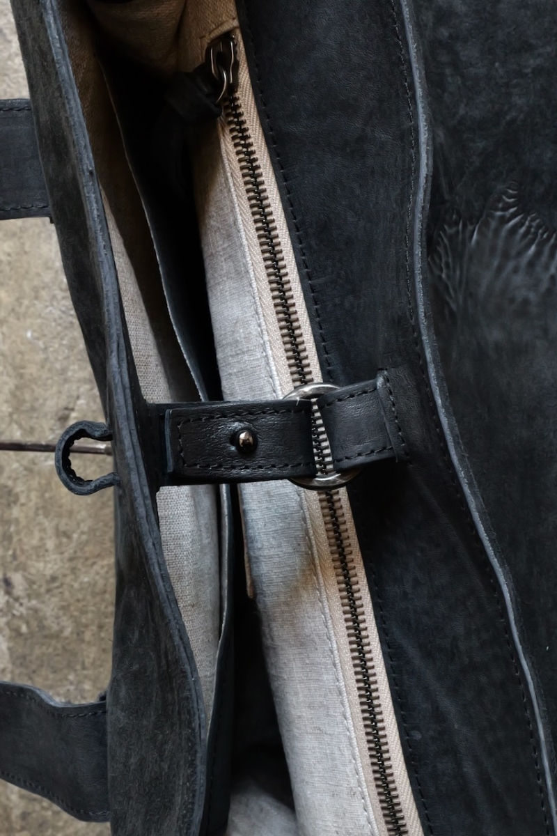 ・ライニングにはロウ引されたリネンを使用しており、中に入れたものの色移りを防ぐだけでなく、