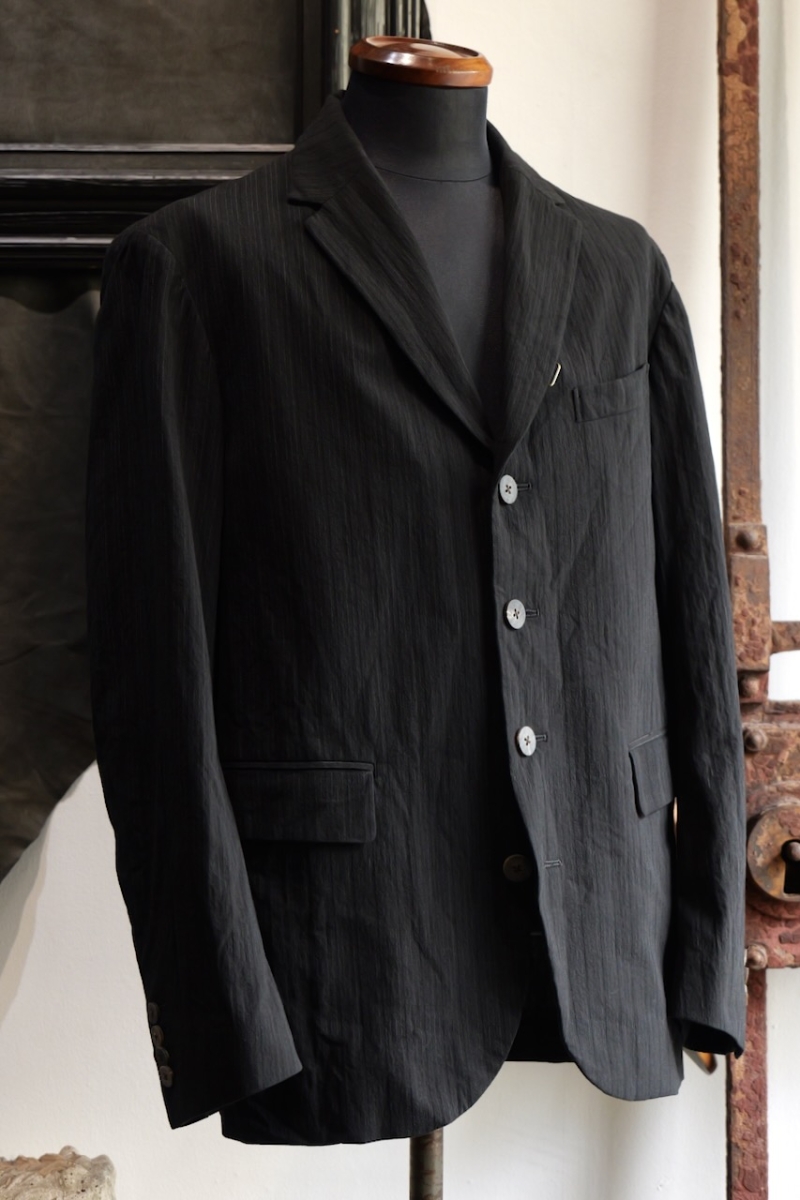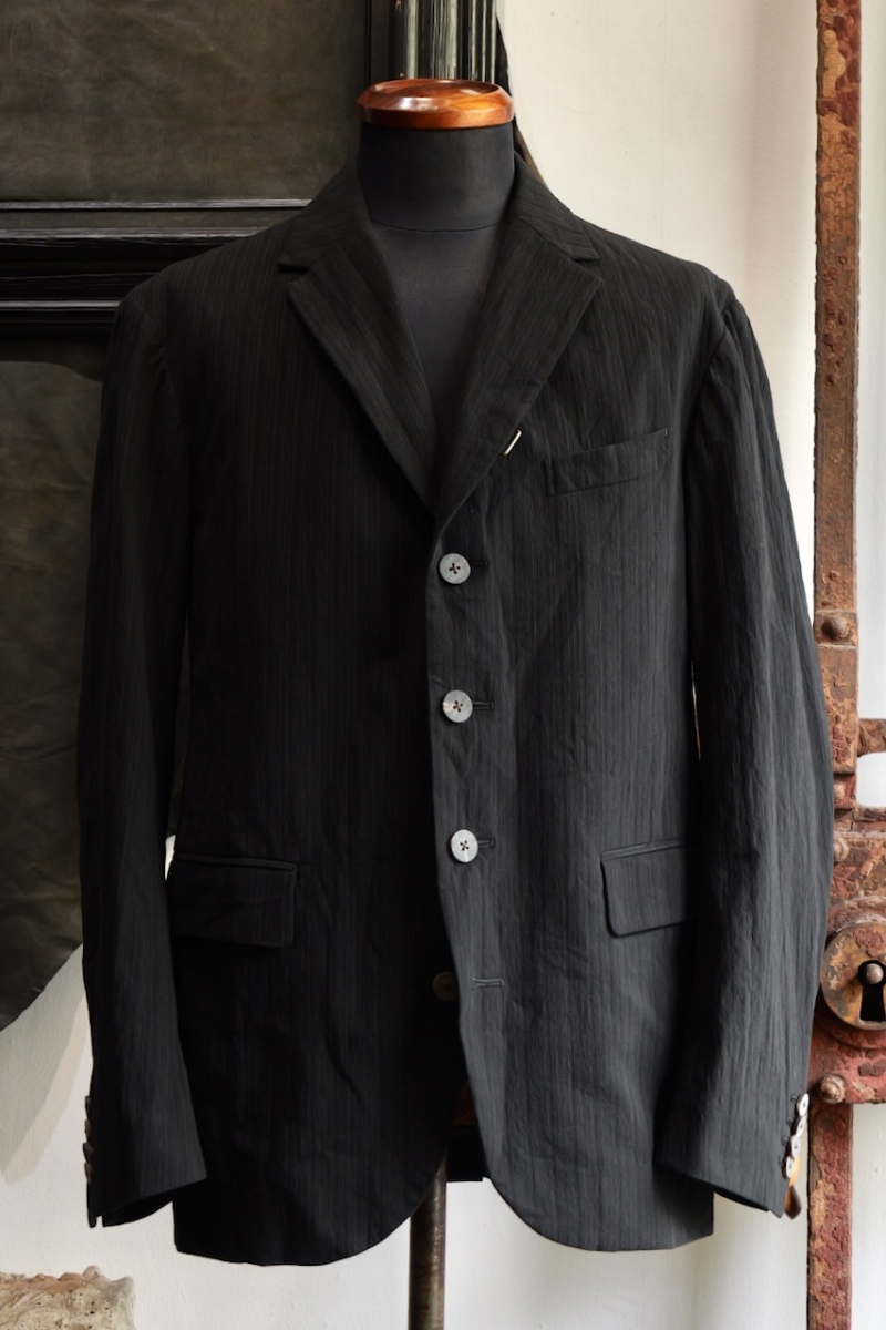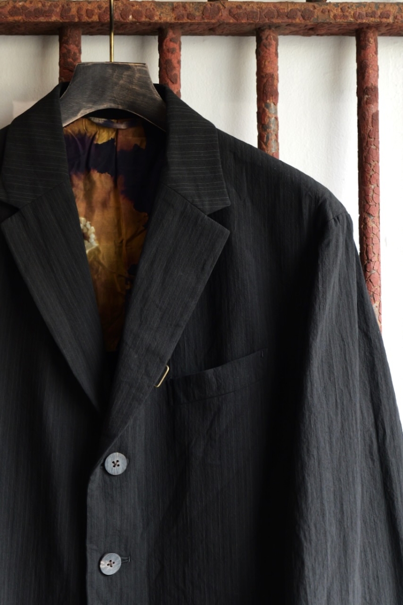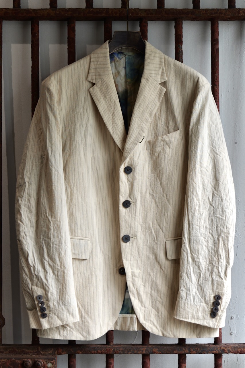Notched Lapel Sack Coat Z High Twisted Cotton Dobby Stripe.