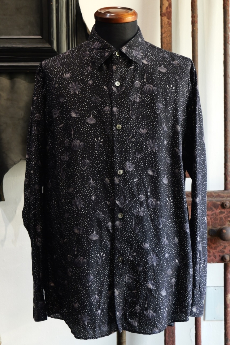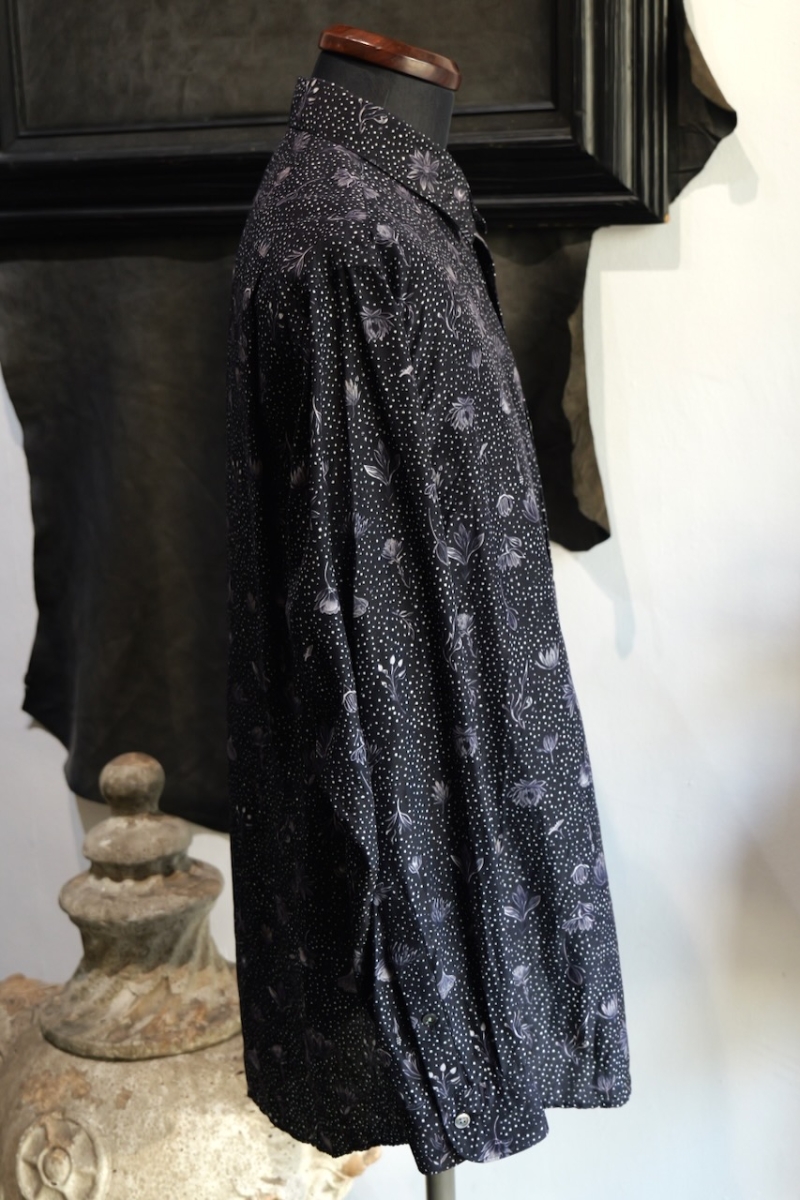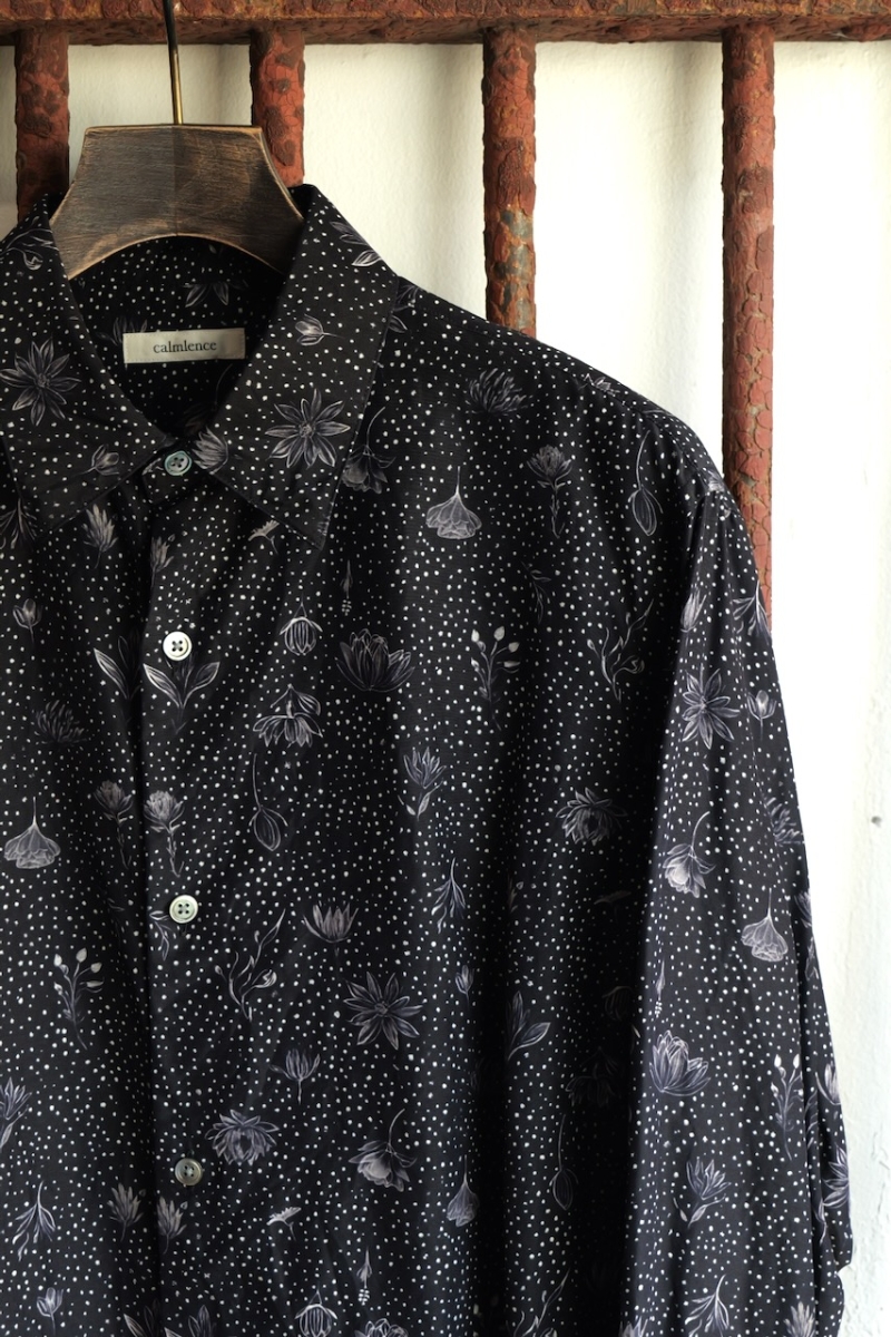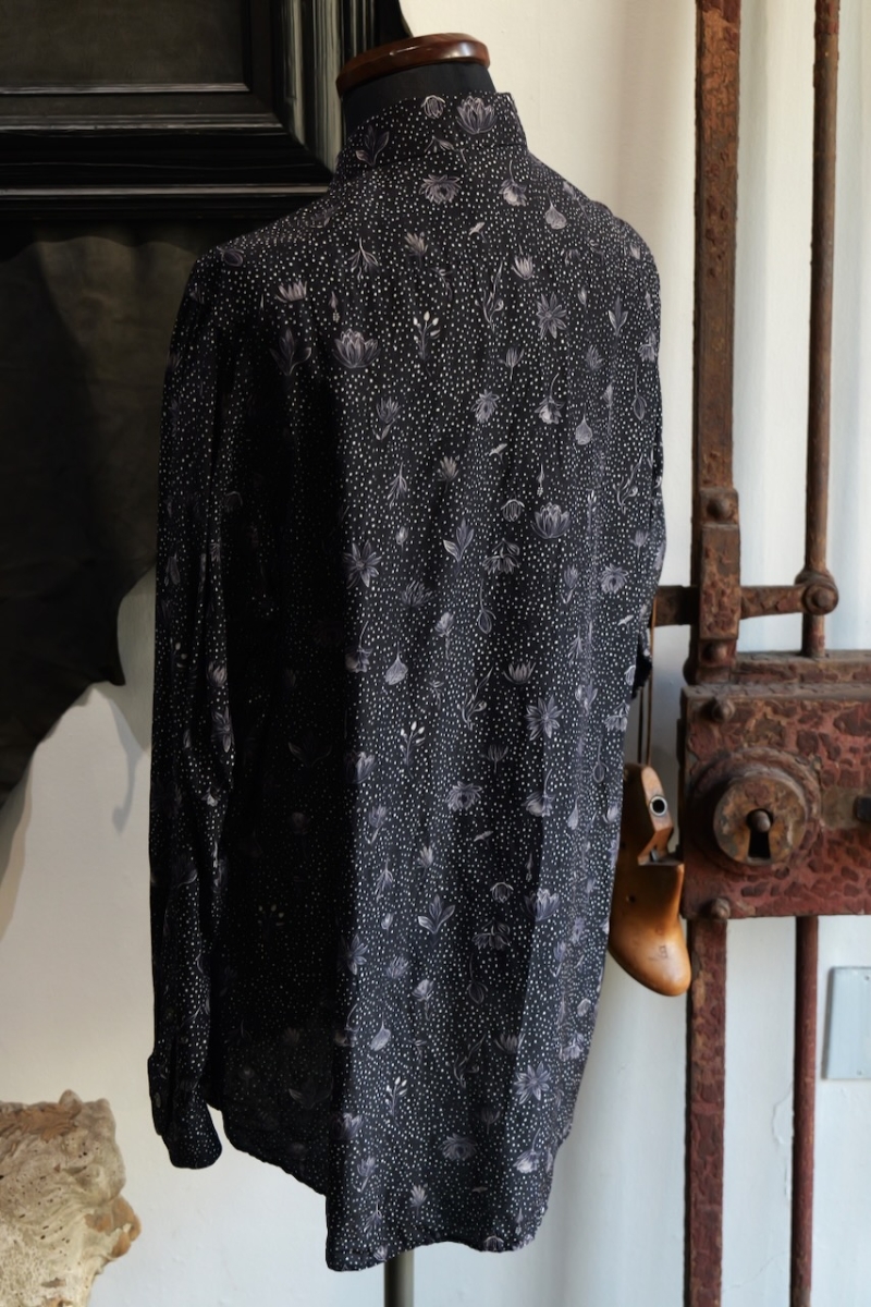 SHIRT036. Regular Collar Shirt Flower Print Silk Cupla. Black Print. Collection 006. calmlence.