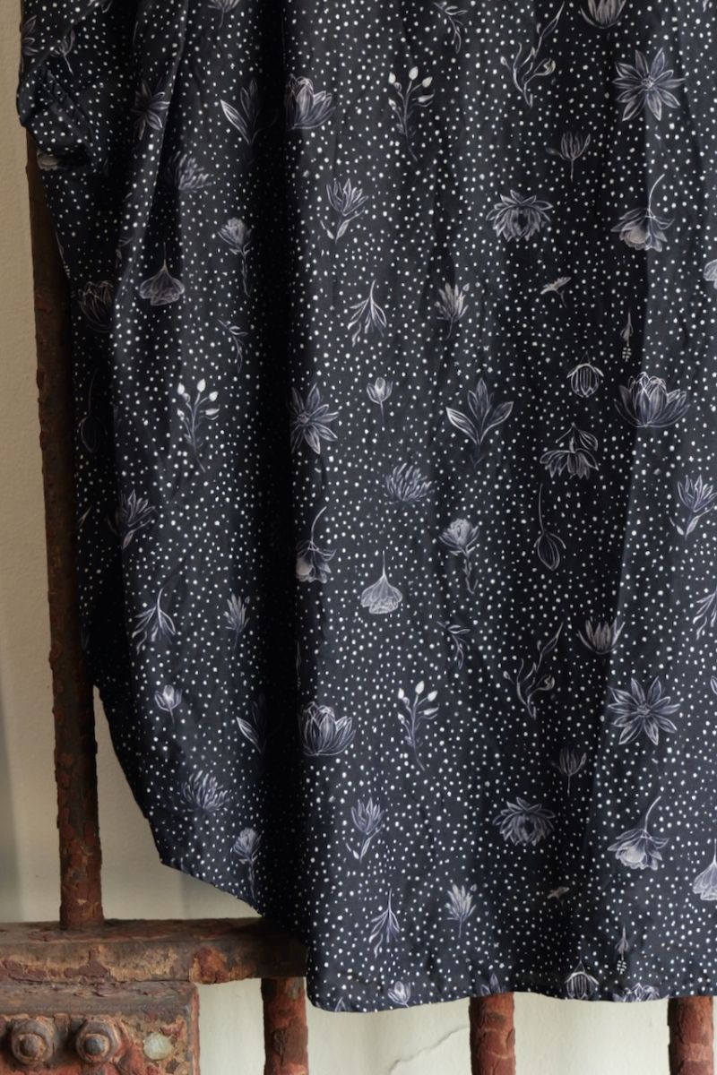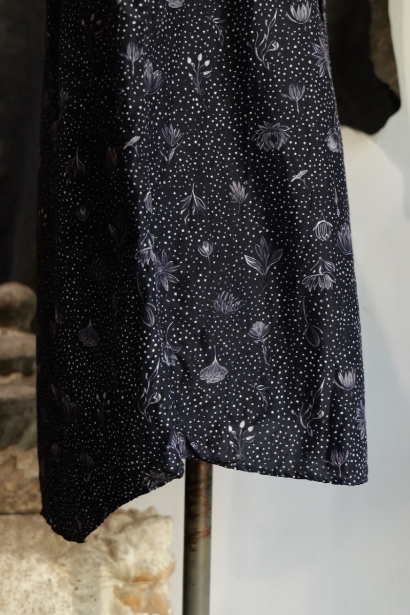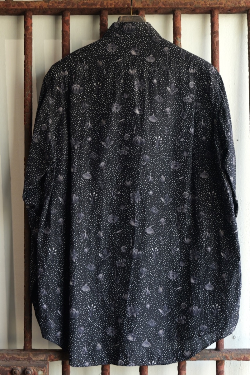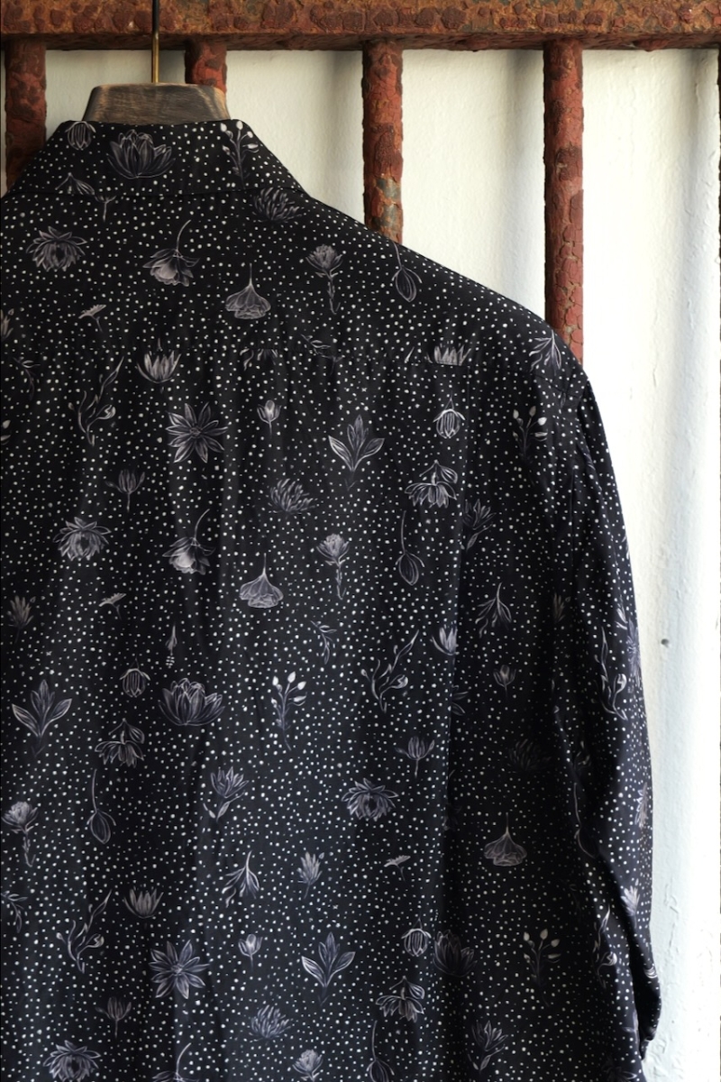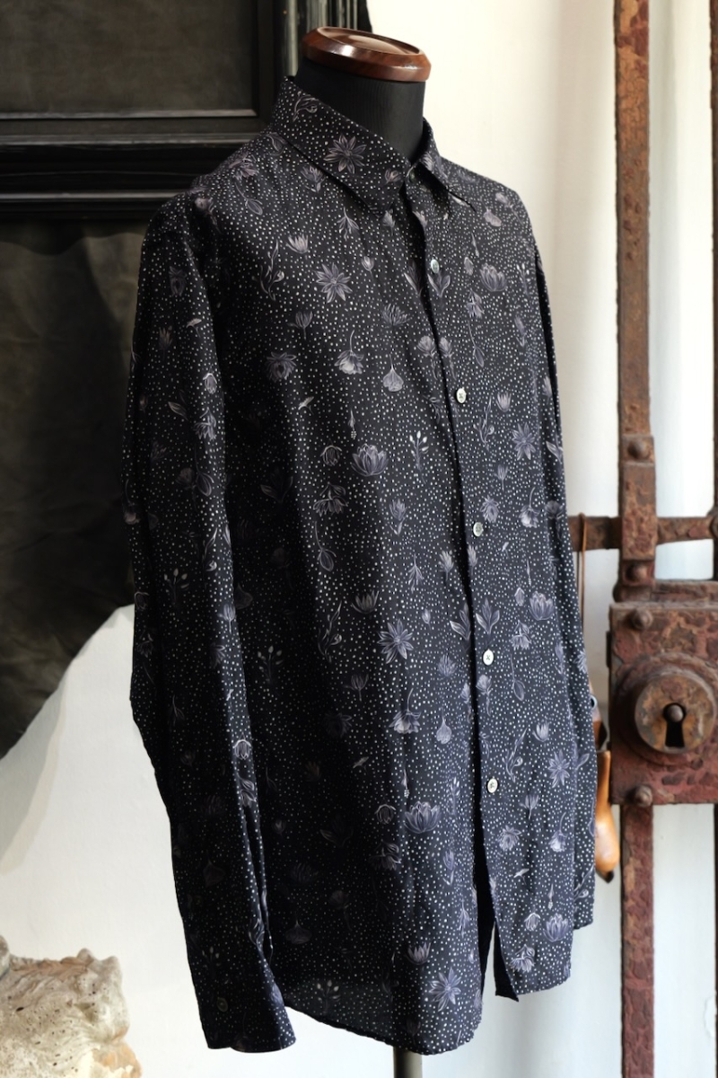SHIRT036. Regular Collar Shirt Flower Print Silk Cupla. Black Print. Collection 006. calmlence.