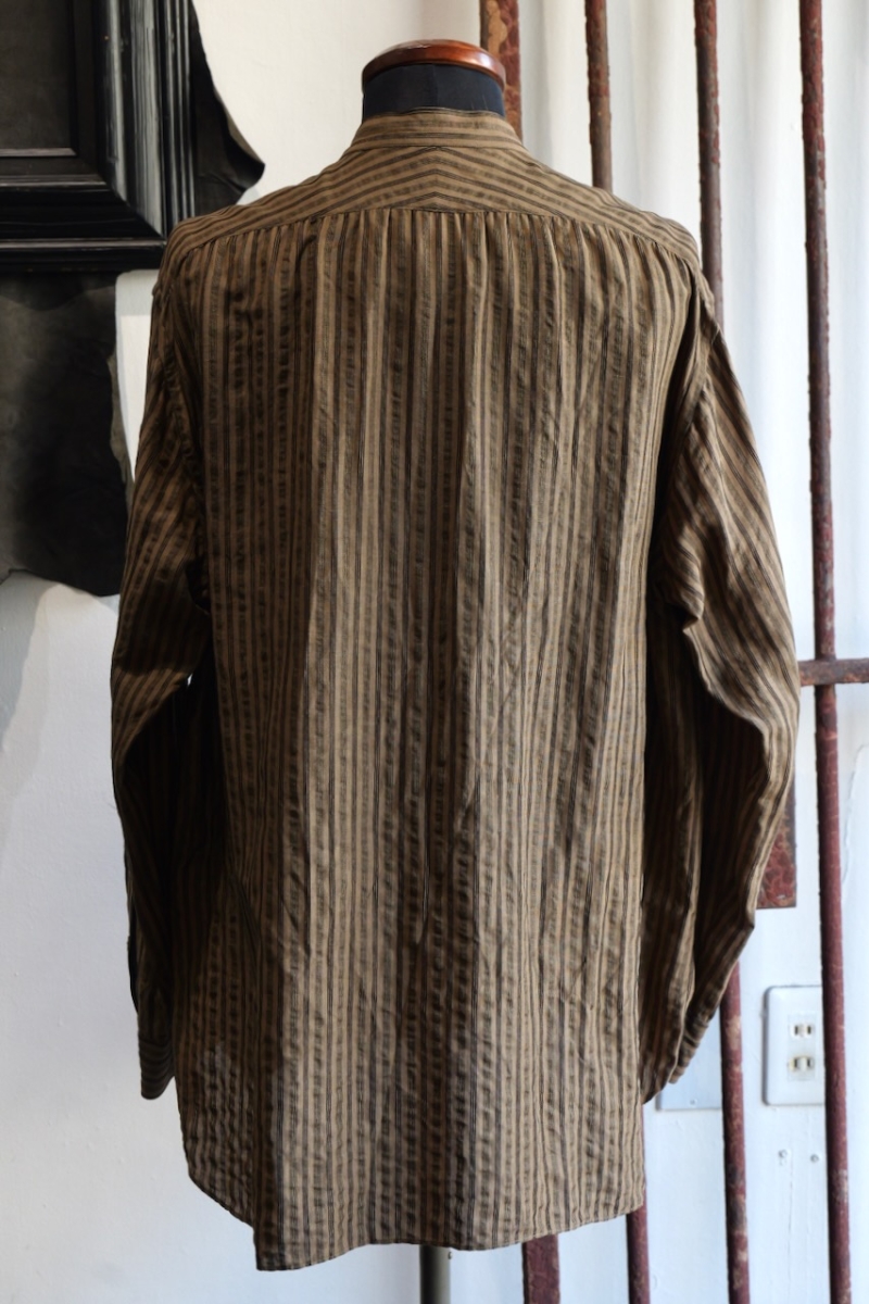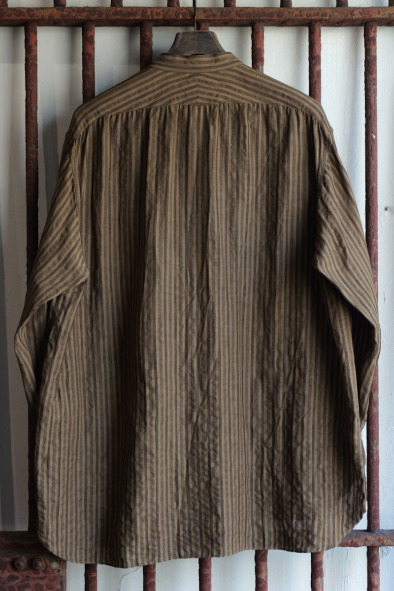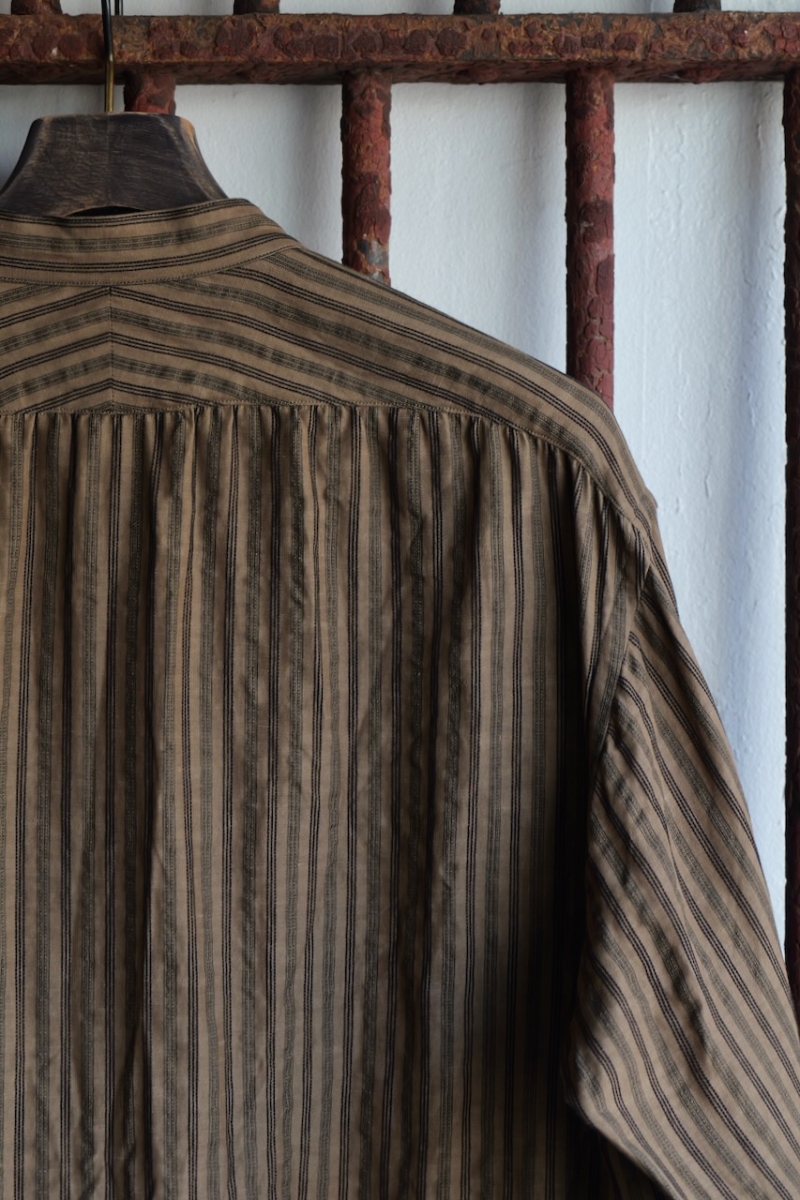 ・ヨークにギャザーを施したヴィンテージ感のあるバンドカラーシャツです。