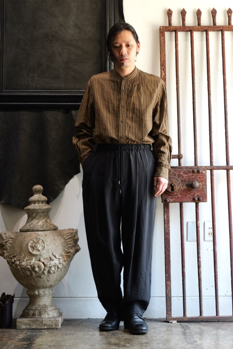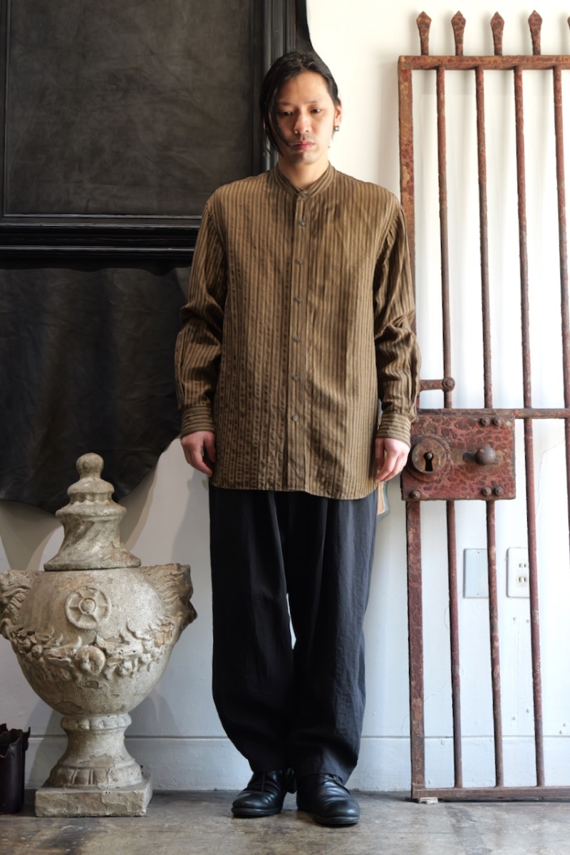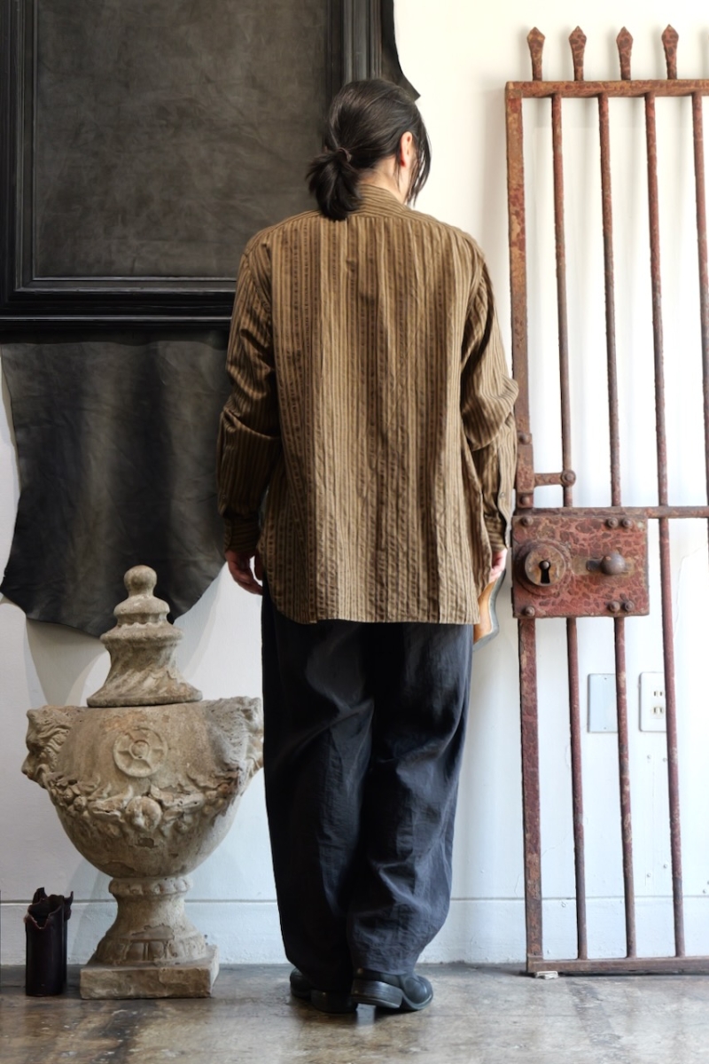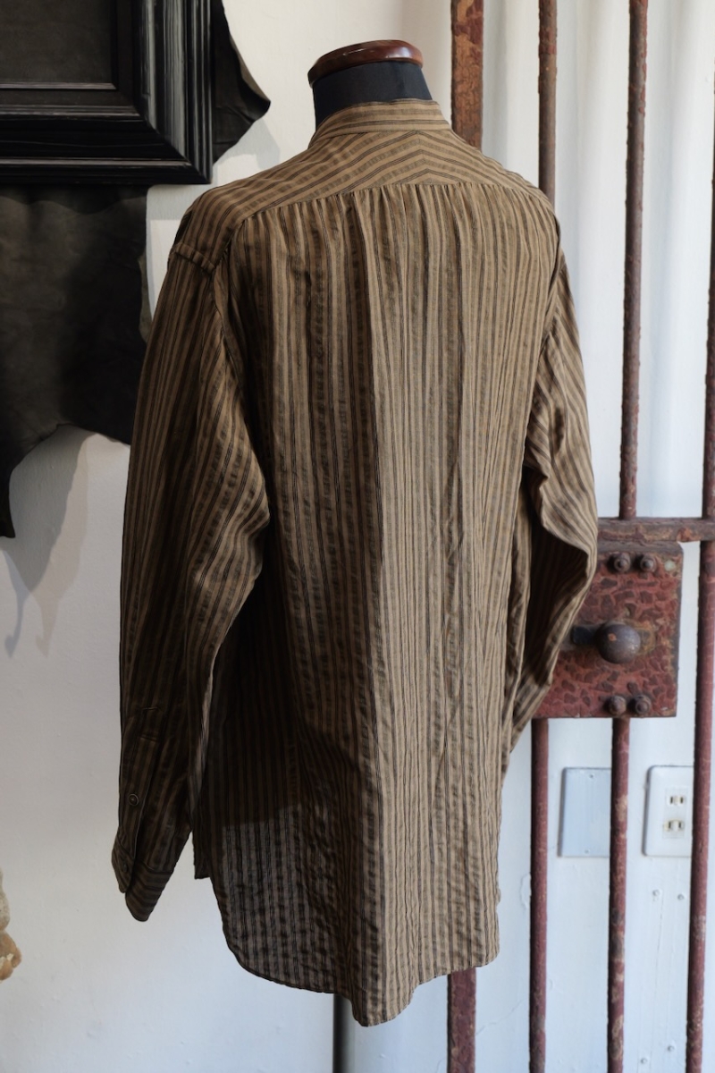 ・ヨークにギャザーを施したヴィンテージ感のあるバンドカラーシャツです。
