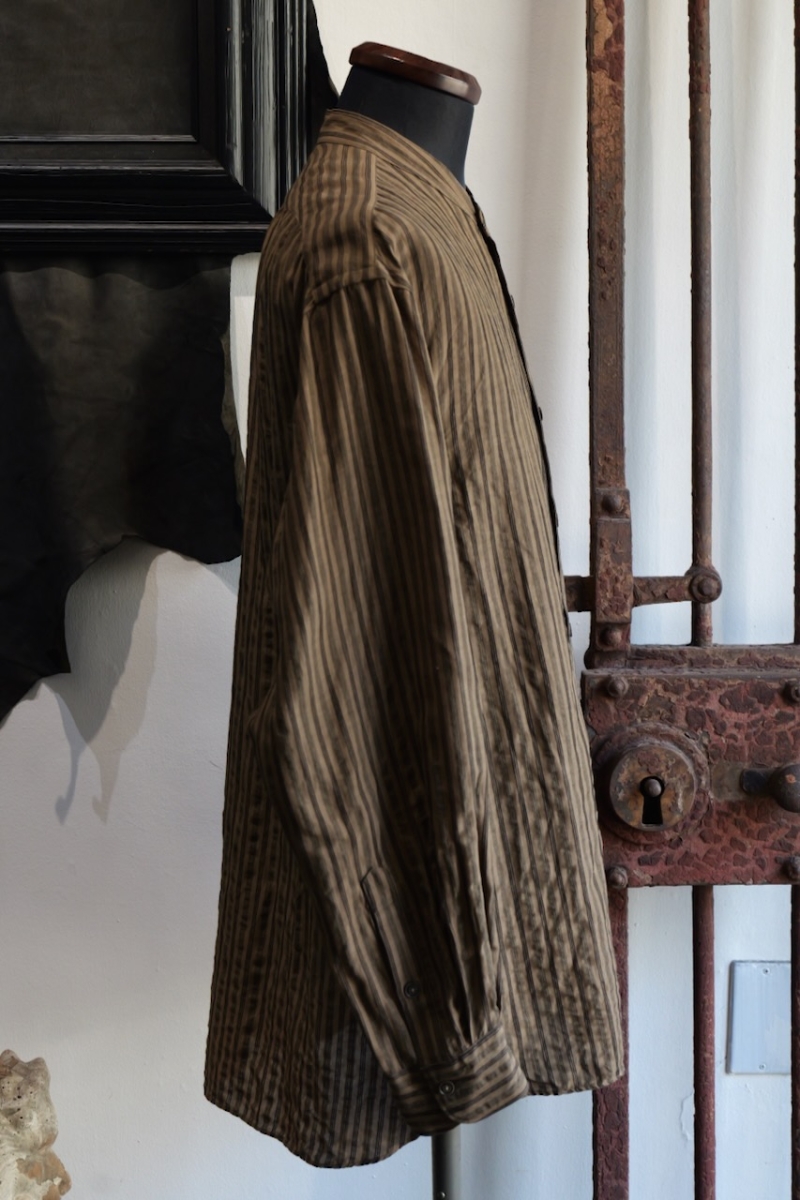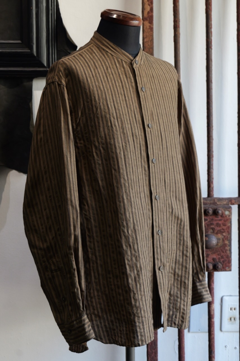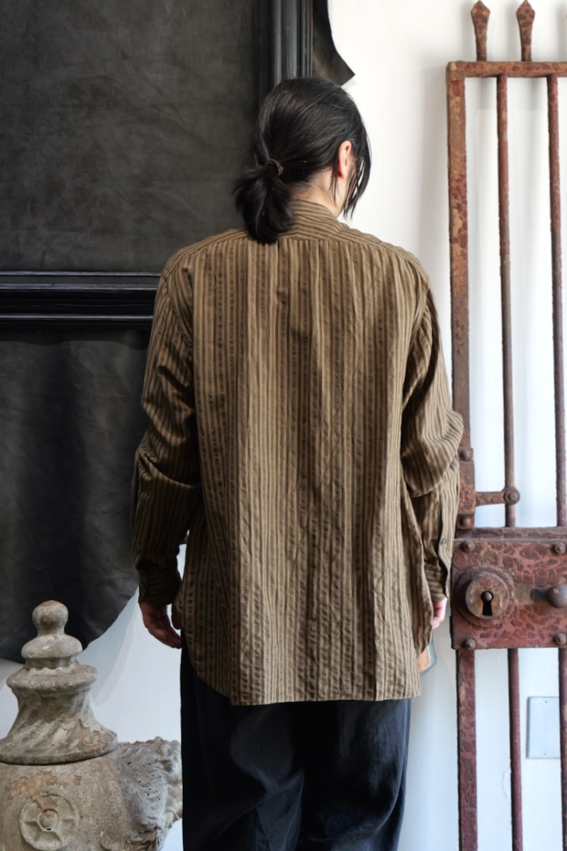 Band Collar Shirt Dobby Stripe.