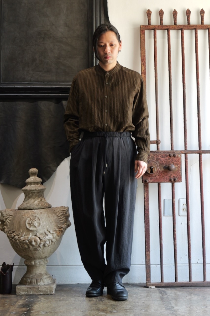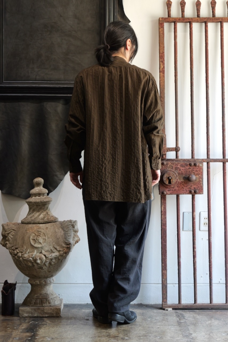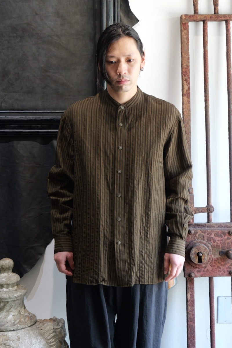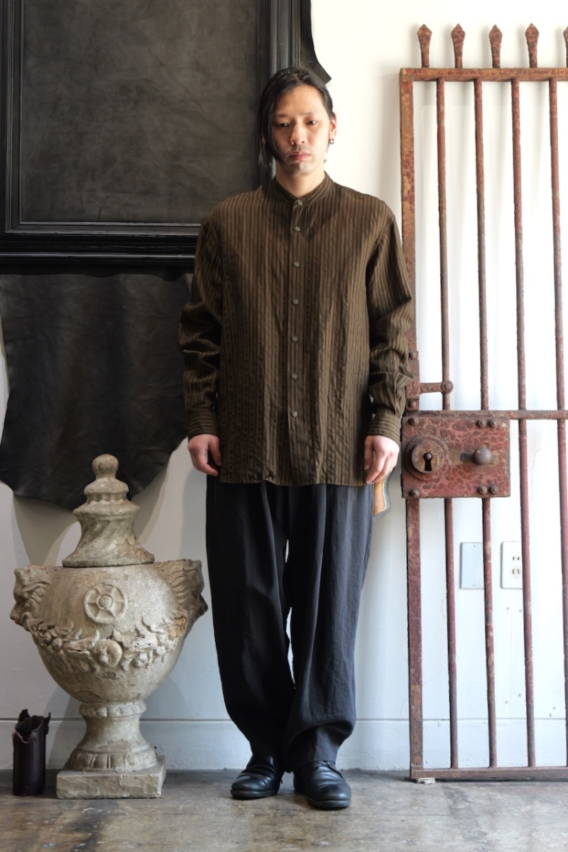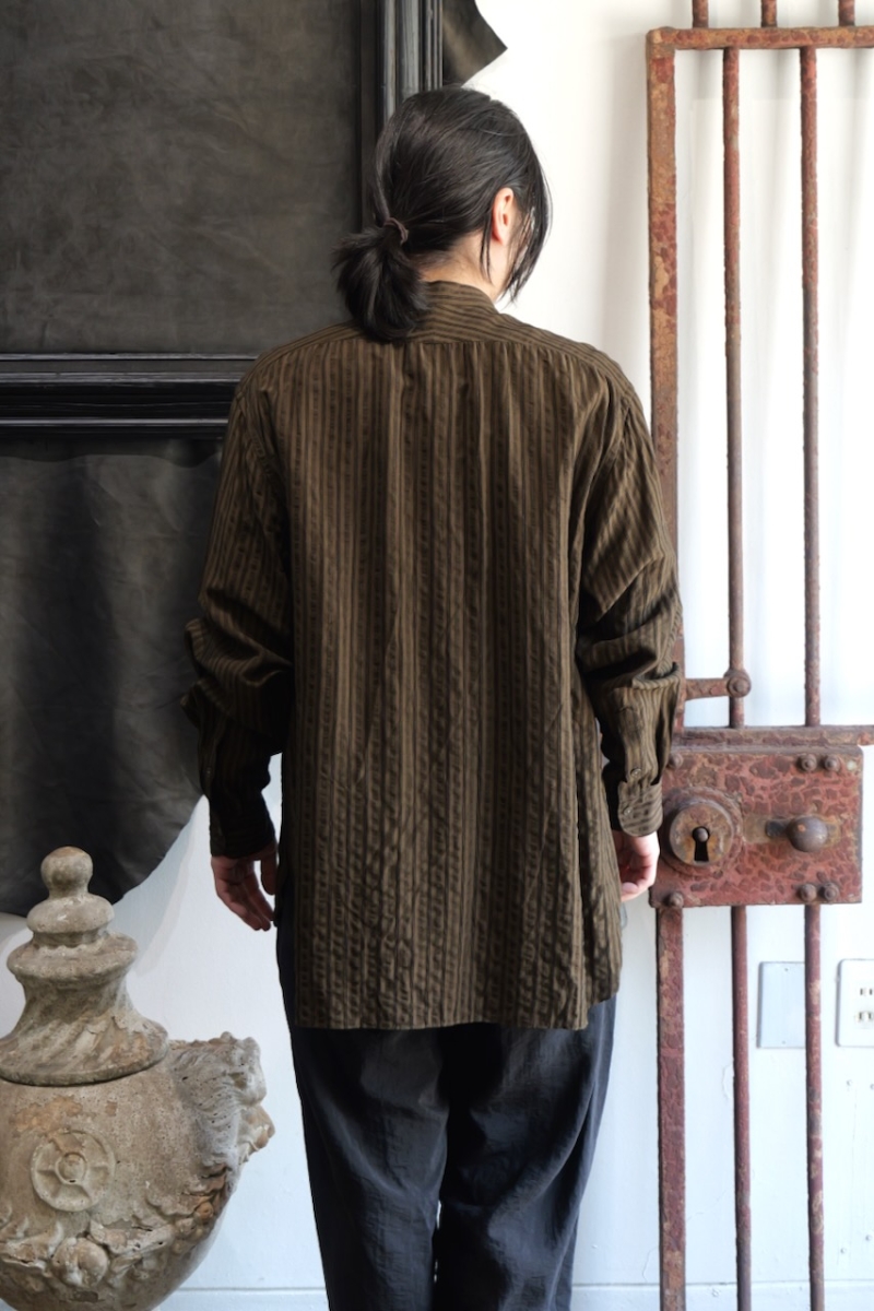 ・ヨークにギャザーを施したヴィンテージ感のあるバンドカラーシャツです。