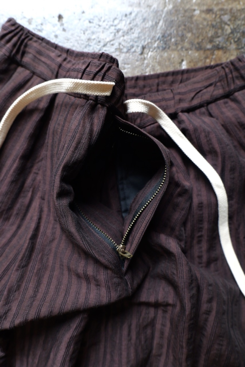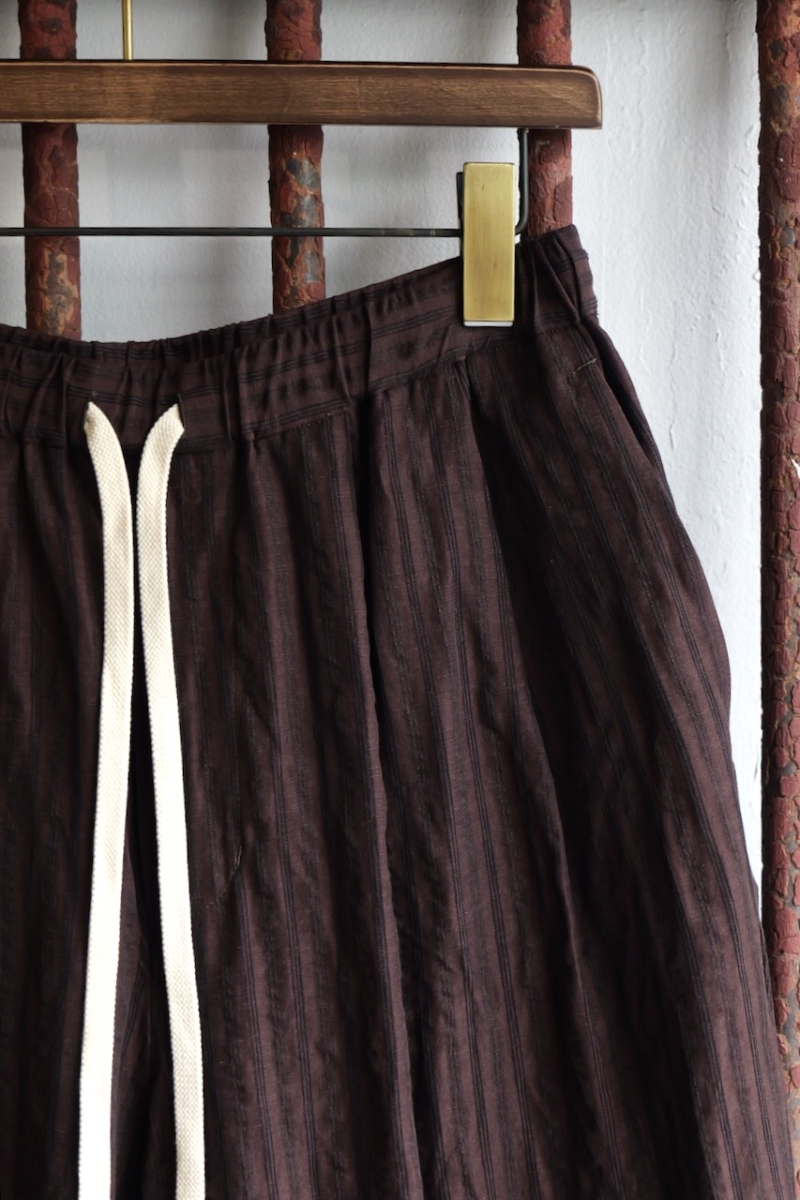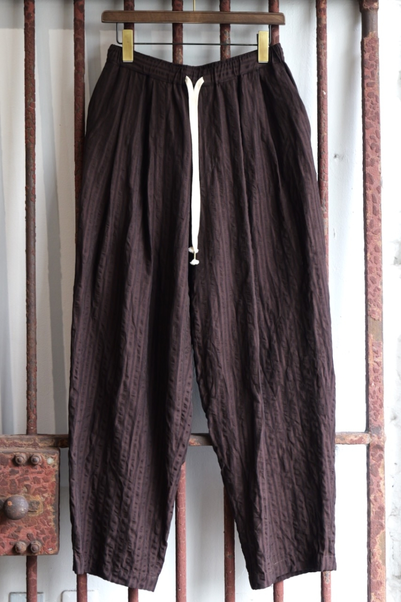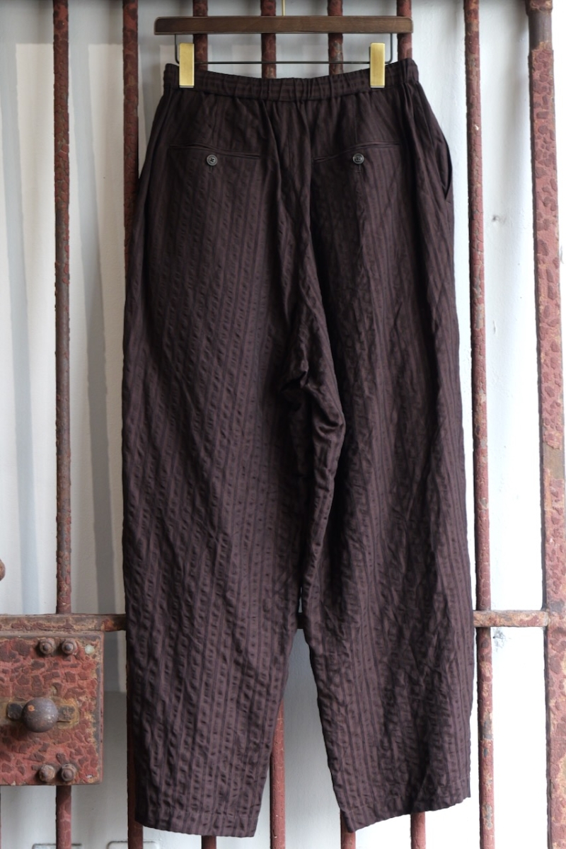 PANTS047. Double Pleated Easy Tapered Dobby Stripe. Brown Stripe. Collection 006. calmlence.