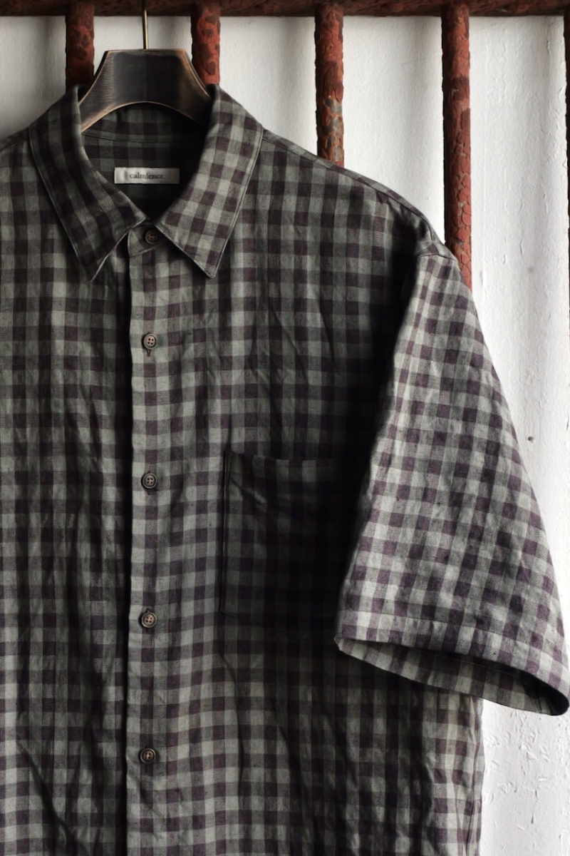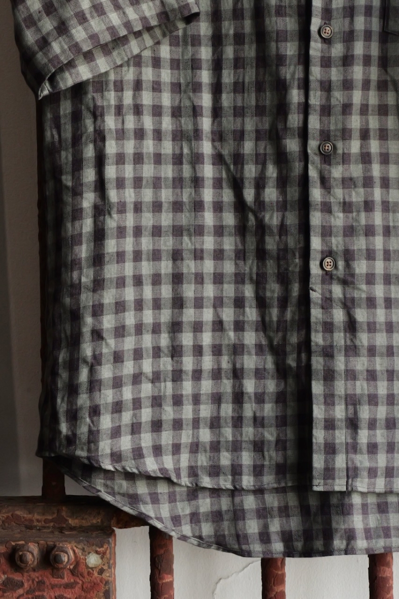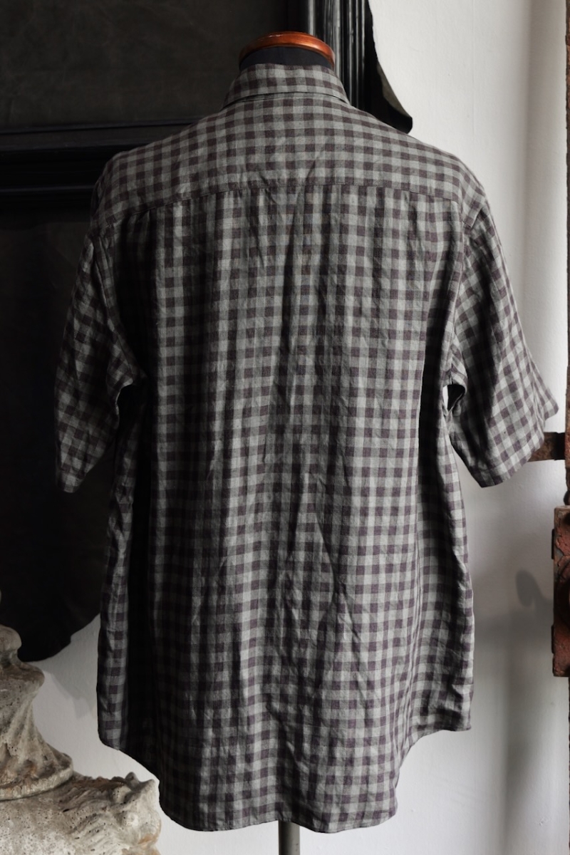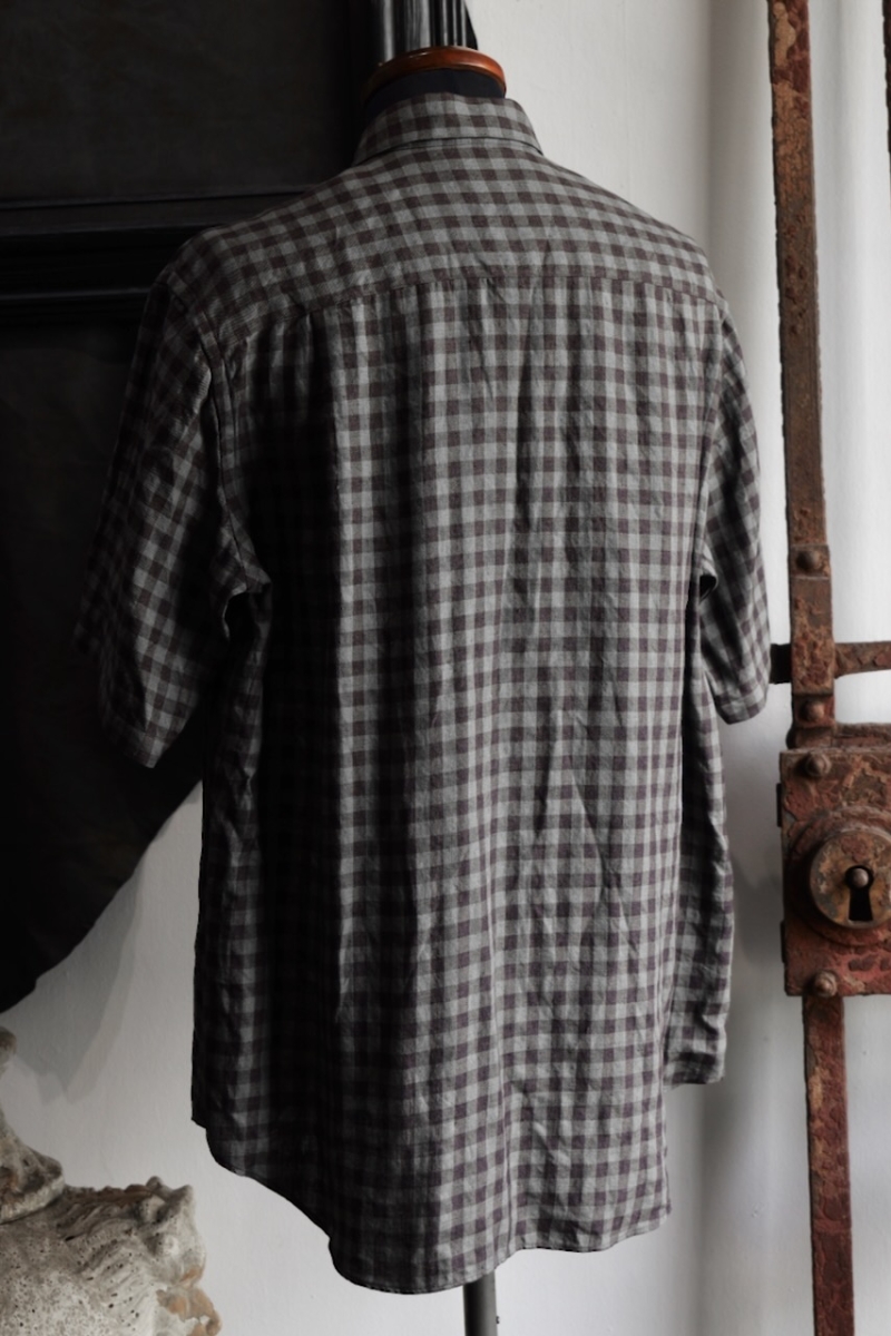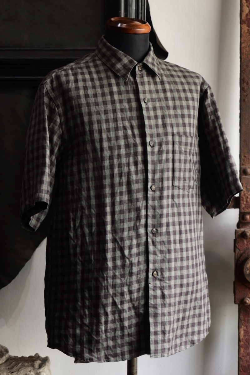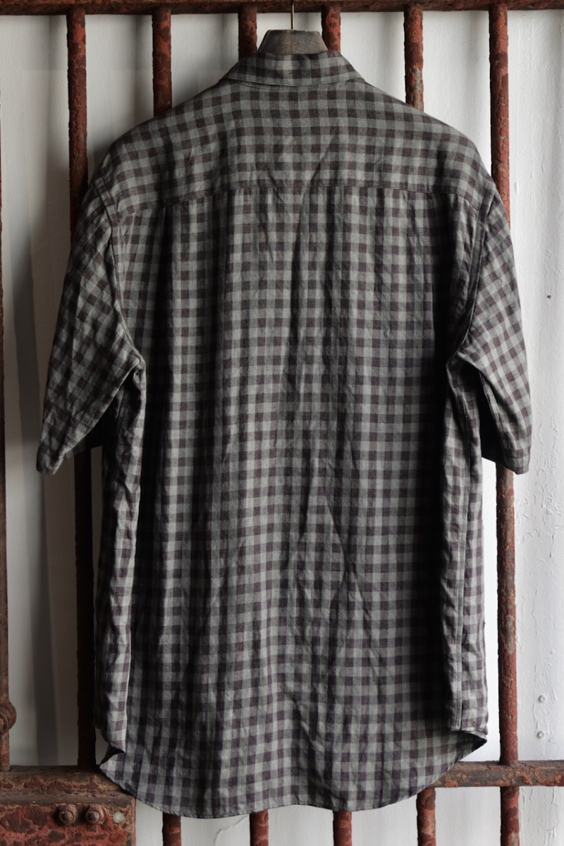 Regular Collar Short Sleeve Shirt 80/1 Linen Houndstooth Cloth.