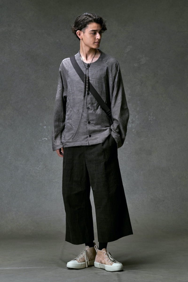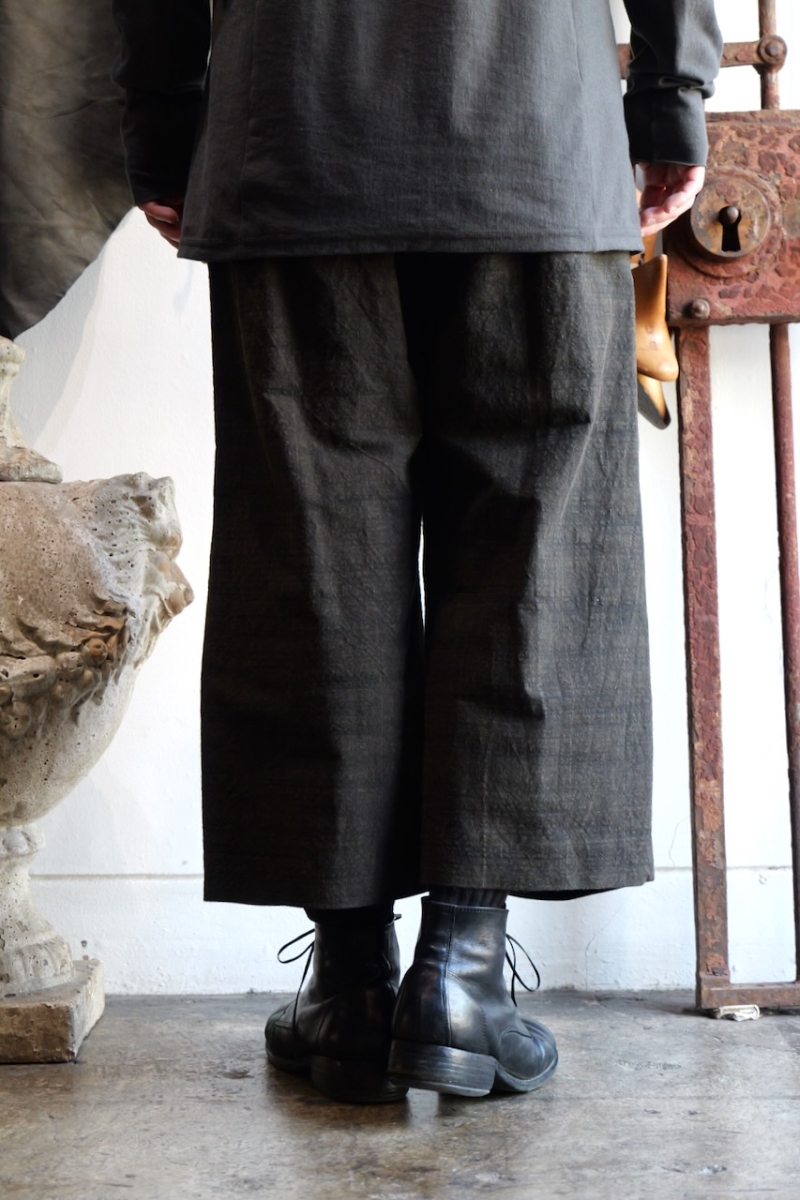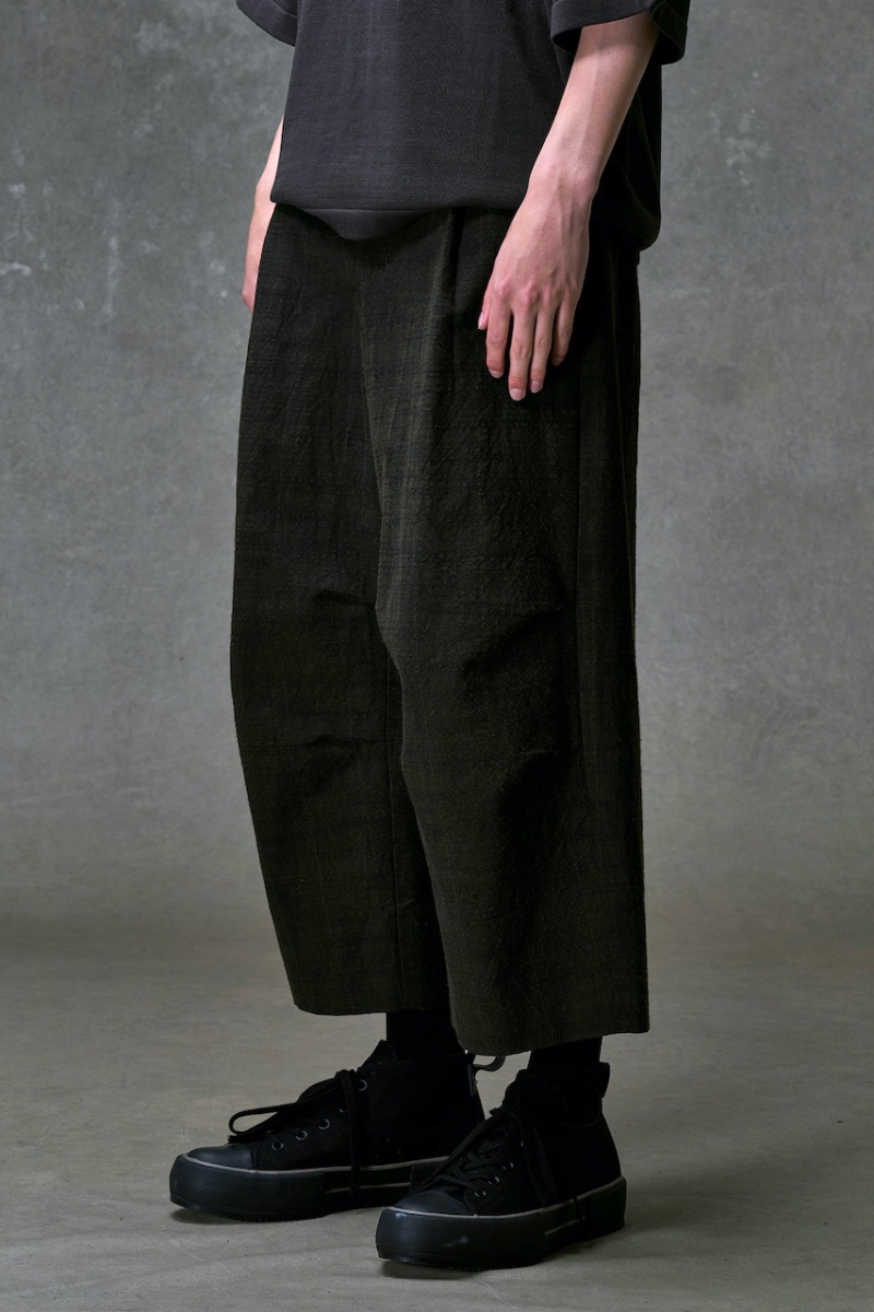 膝下にゆとりを持たせたクロップドバギーシルエットのパンツ。