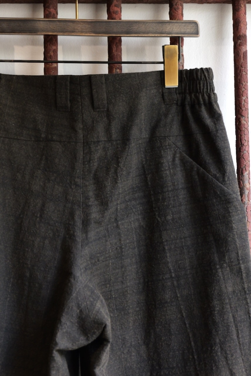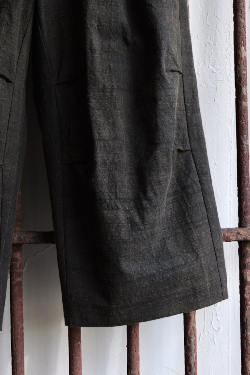 膝周りのタックと湾曲したシルエットが立体感とシワを作っています。