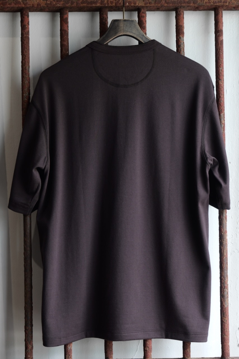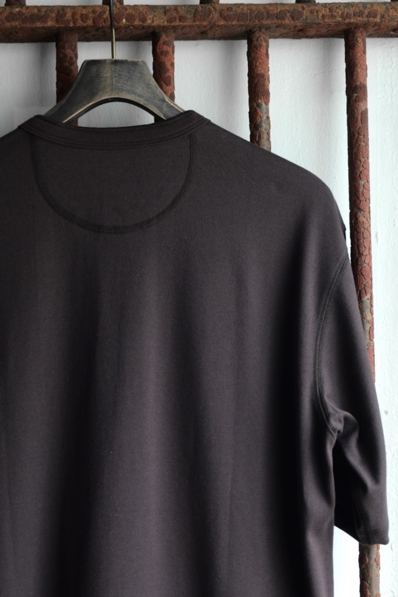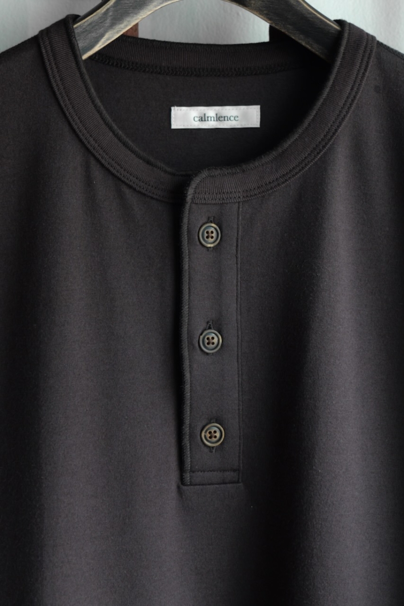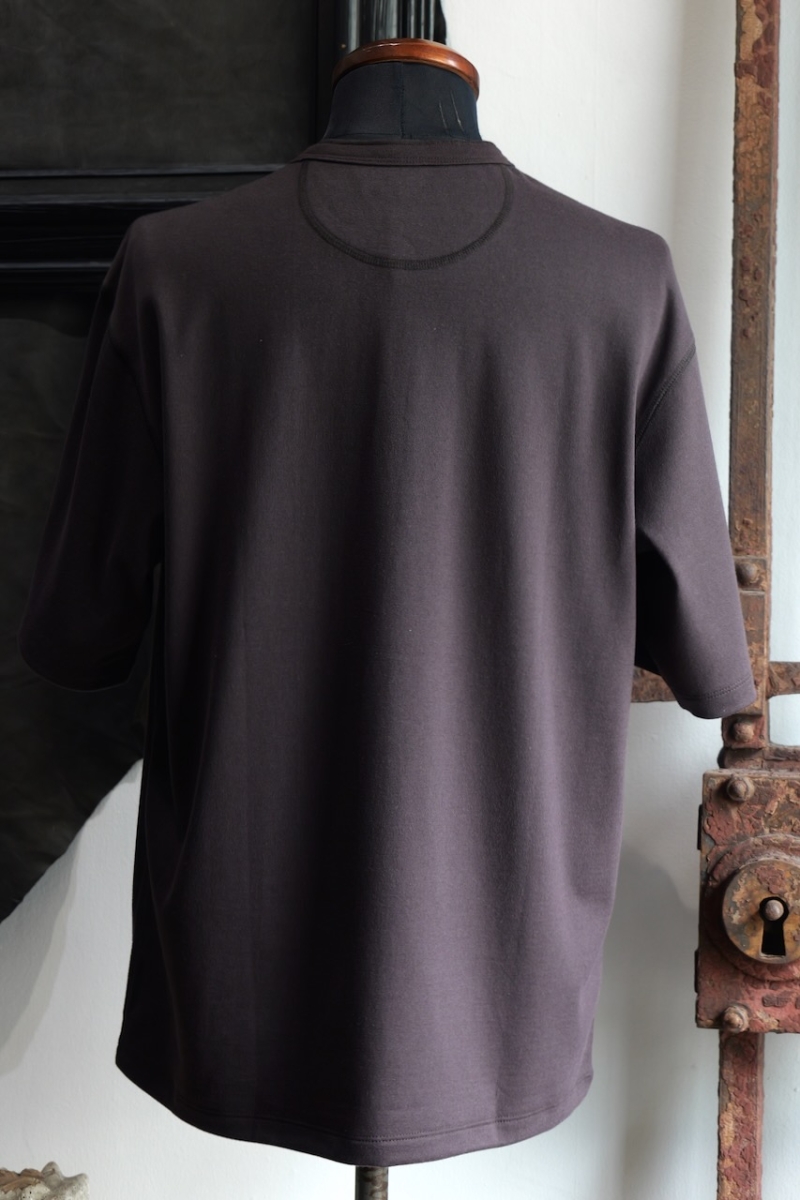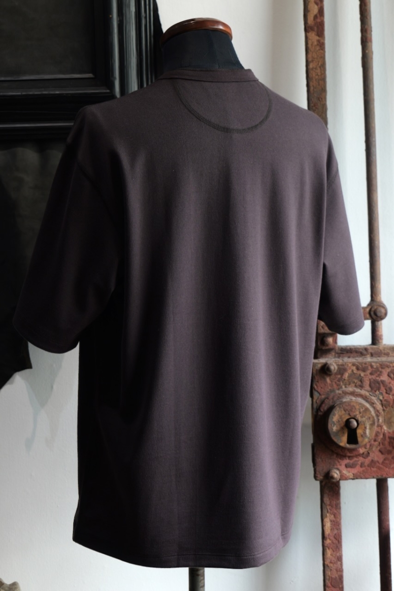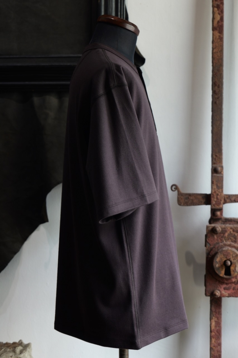 TSHIRT002. Henley Neck Short Sleeve T-Shirt Silk Suvin Rever Jersey. Dark Brown. Collection 006. calmlence.