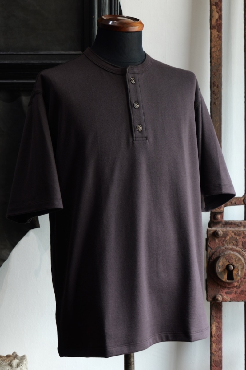 Henley Neck Short Sleeve T-Shirt Silk Suvin Rever Jersey.
