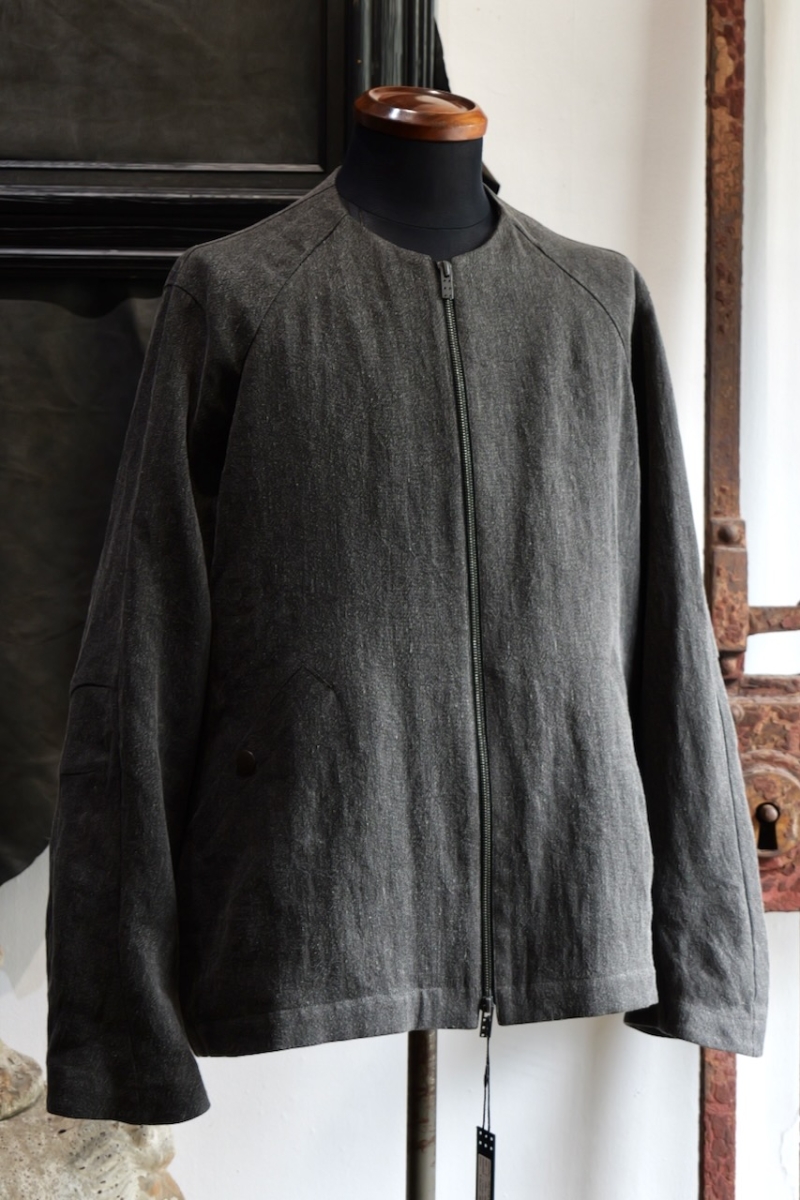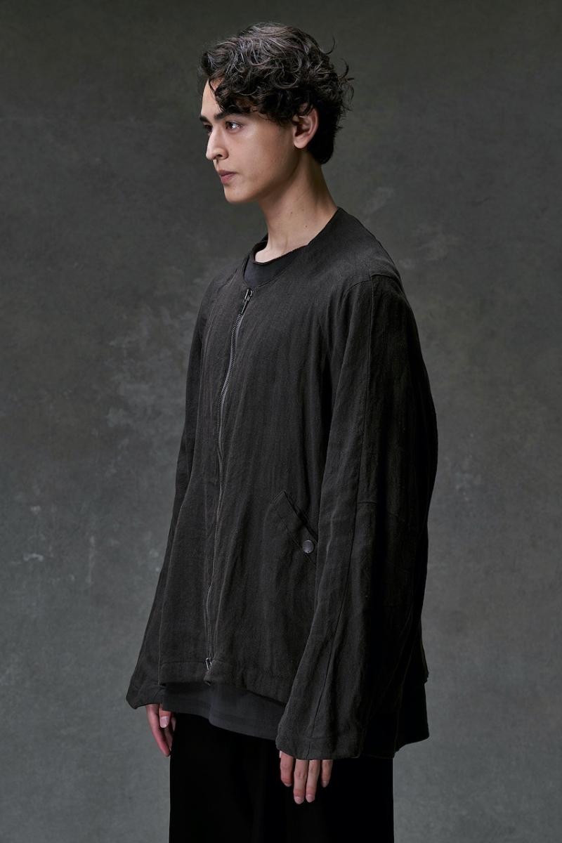 ノーカラーのセンタージップブルゾン。