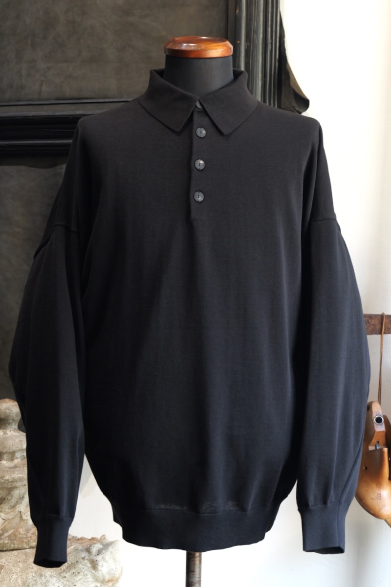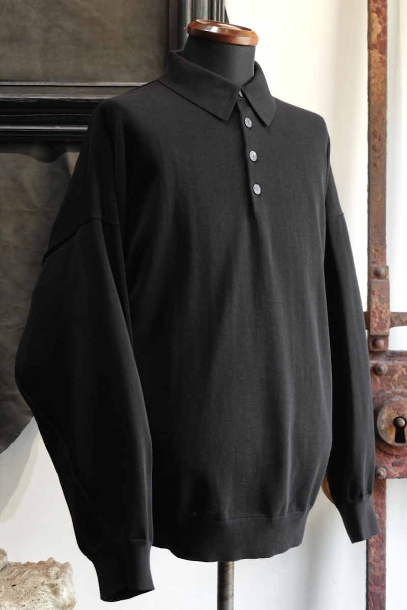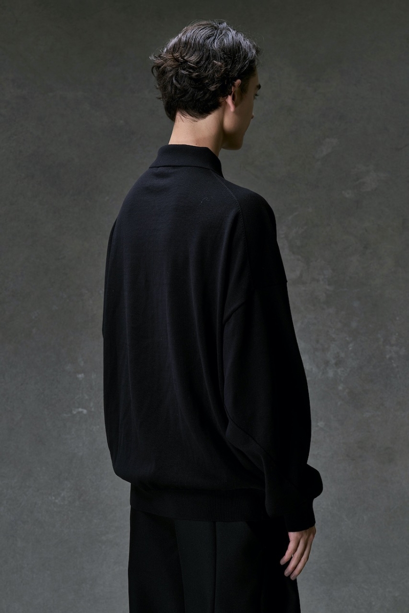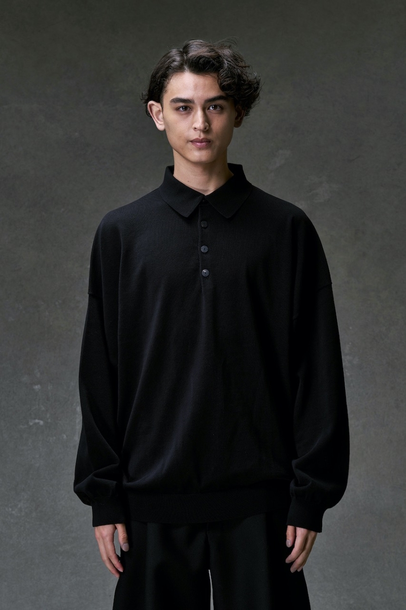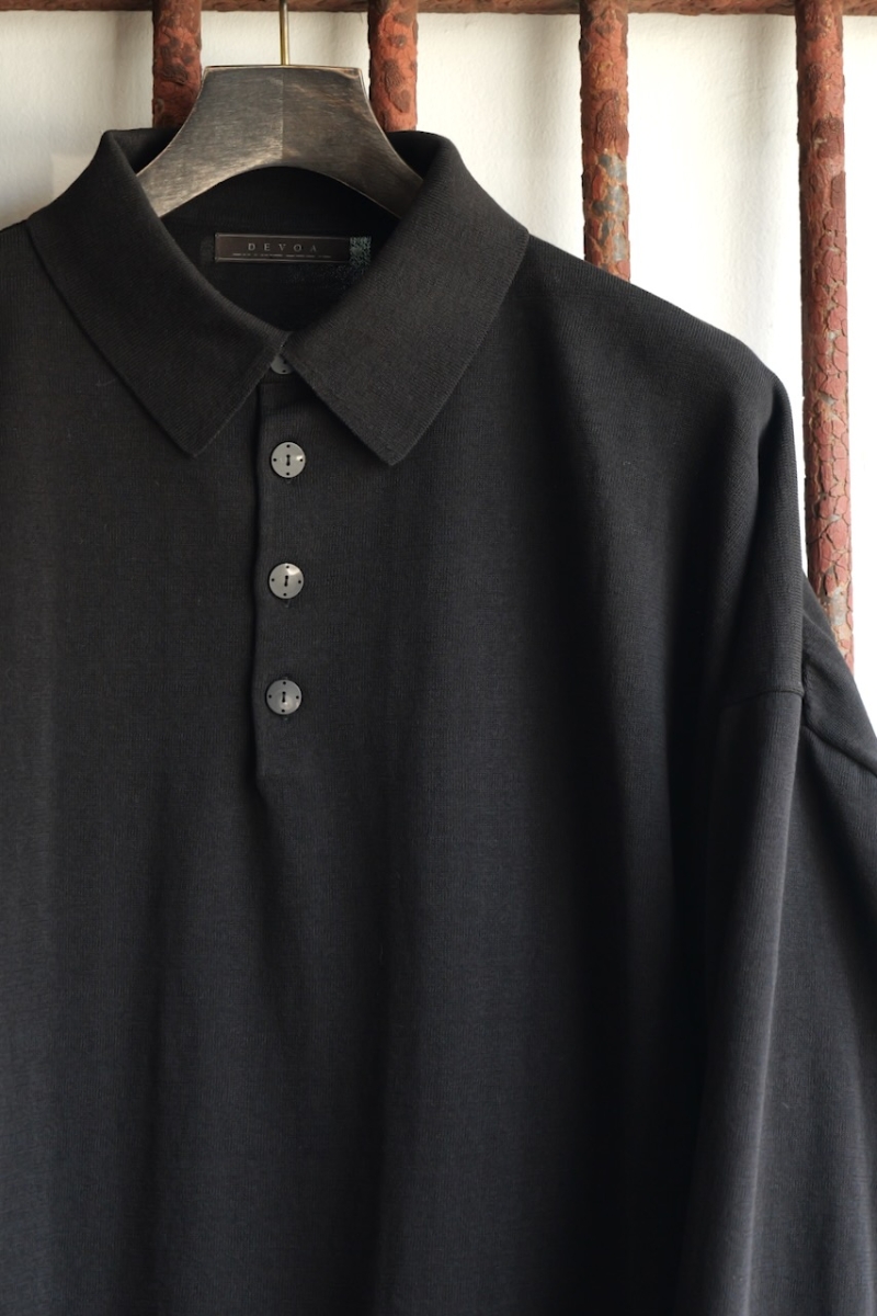 KTS-BRPL. Knit long Sleeve (Polo Type) Cotton Nylon Rayon. Black. DEVOA.