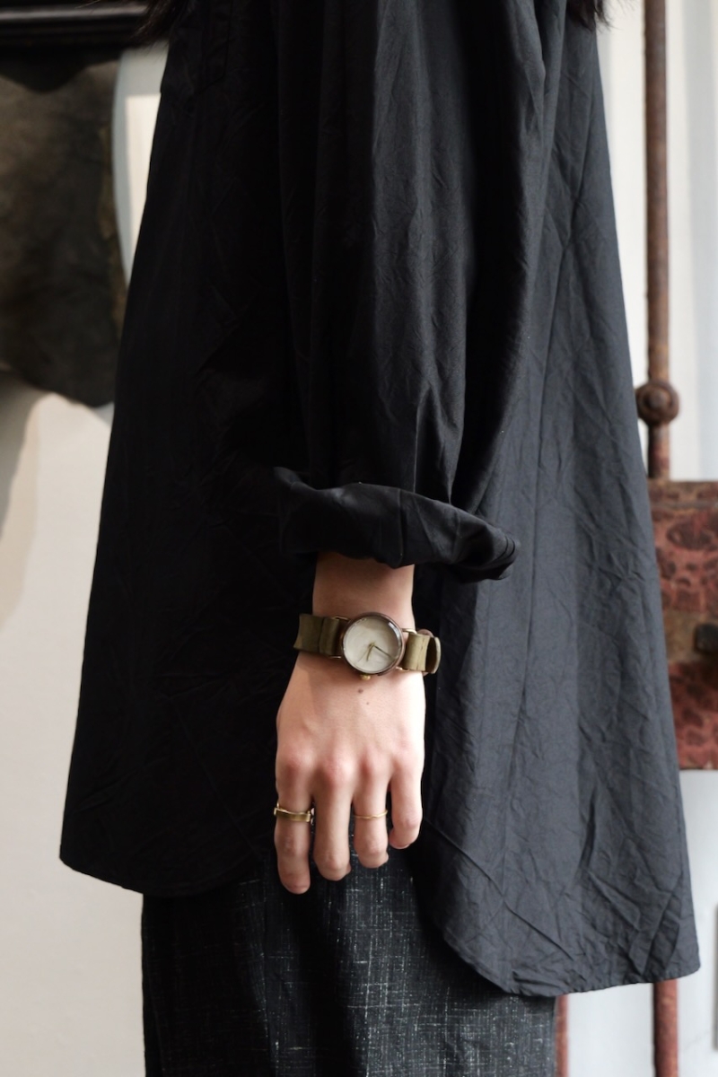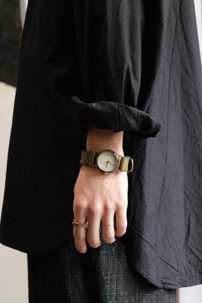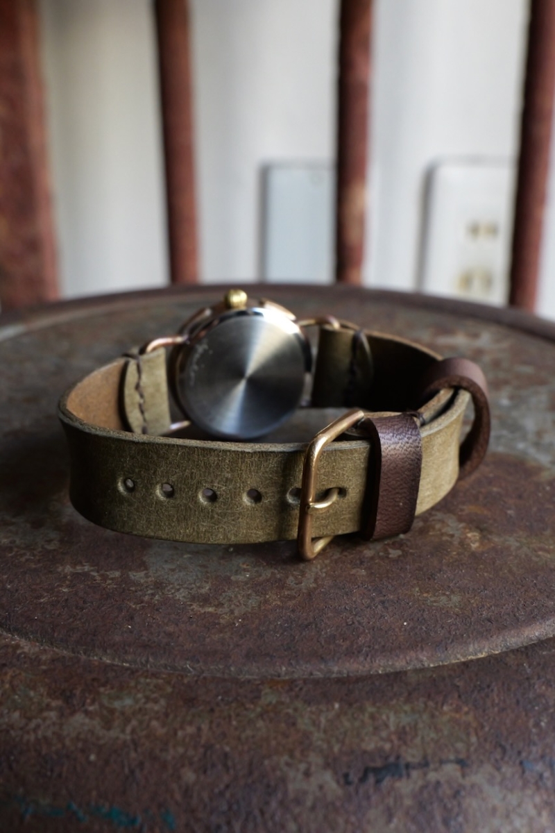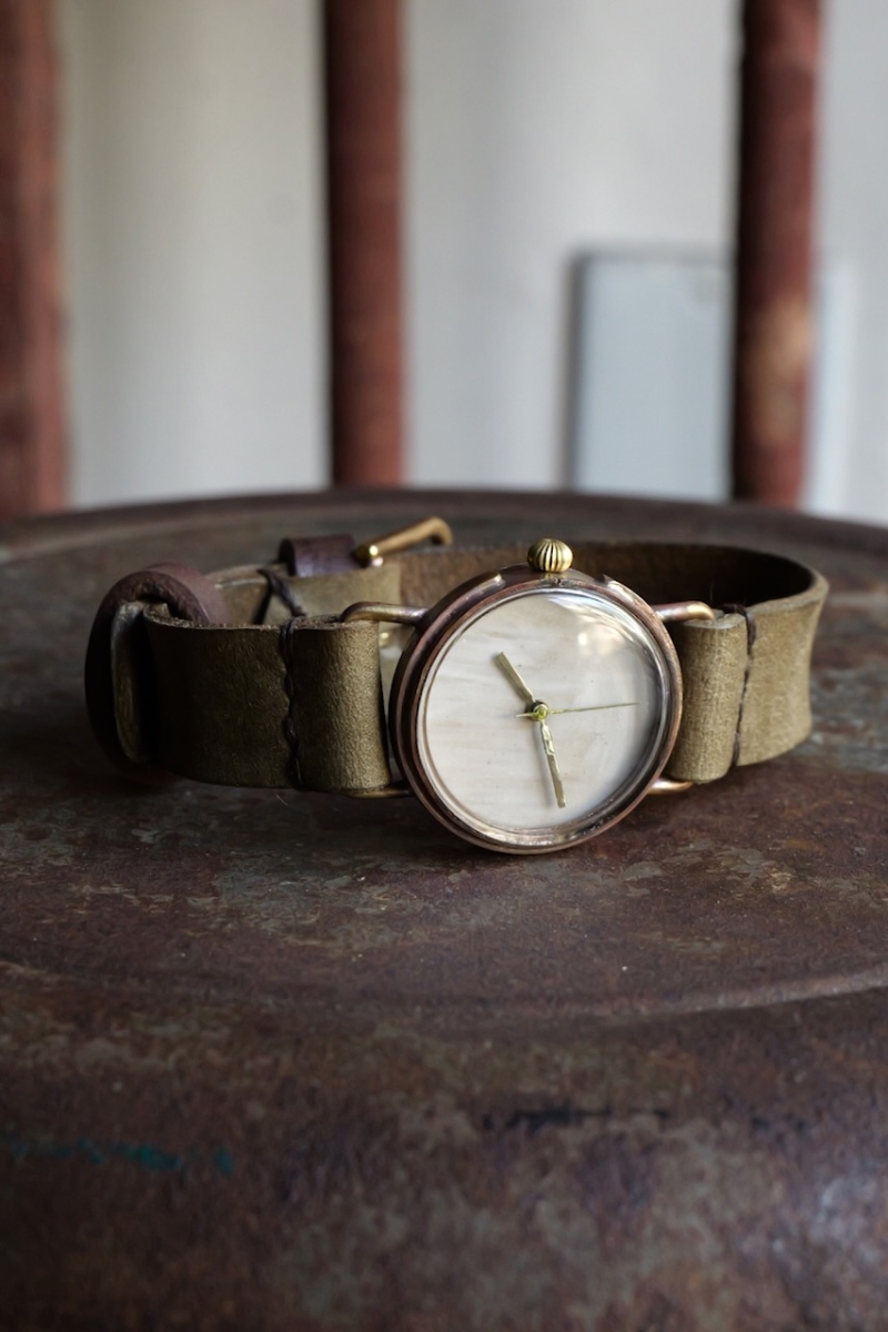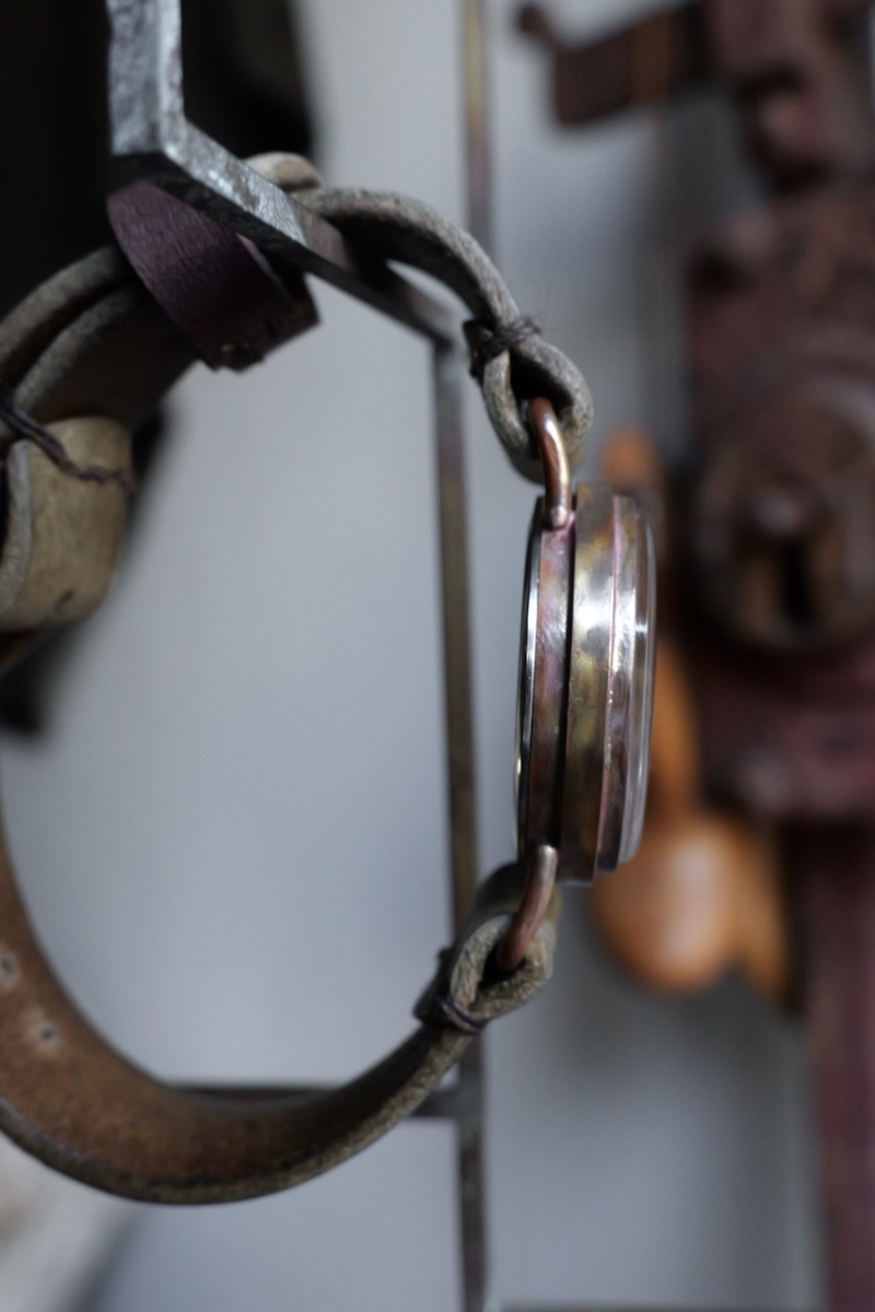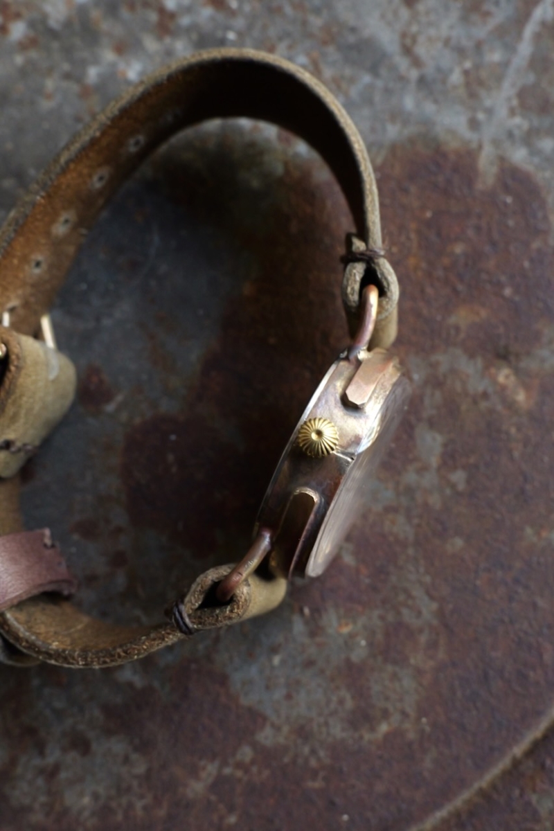 ・金属部分、文字盤はエイジングされた真鍮を使用しており、