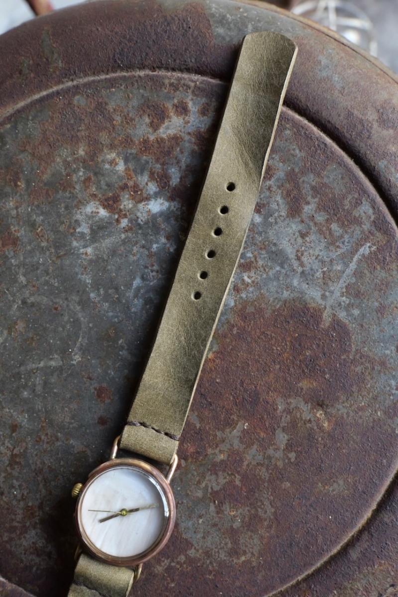 ・ベルト部分の革も質感・色味に拘り、カットから時計に合わせて作られています。