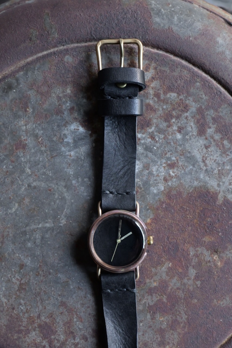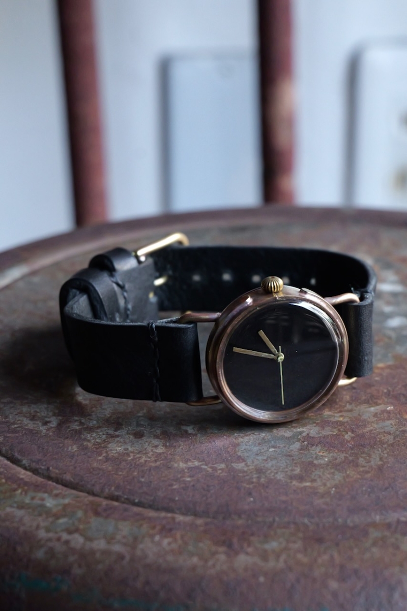 ・金属部分、文字盤はエイジングされた真鍮を使用しており、