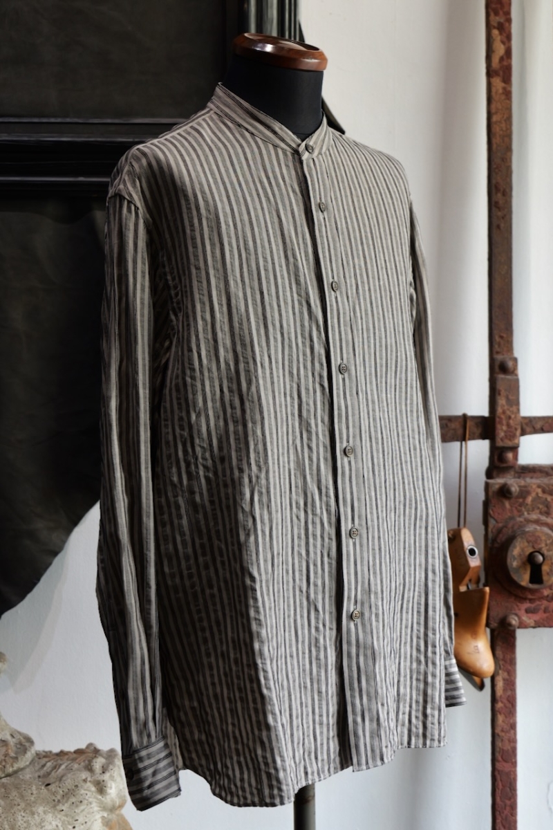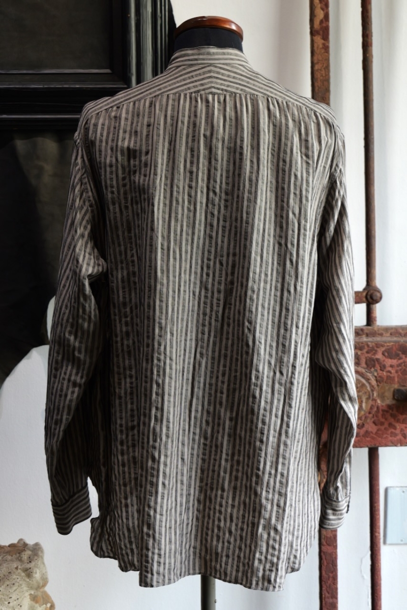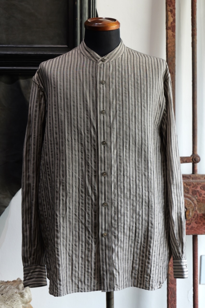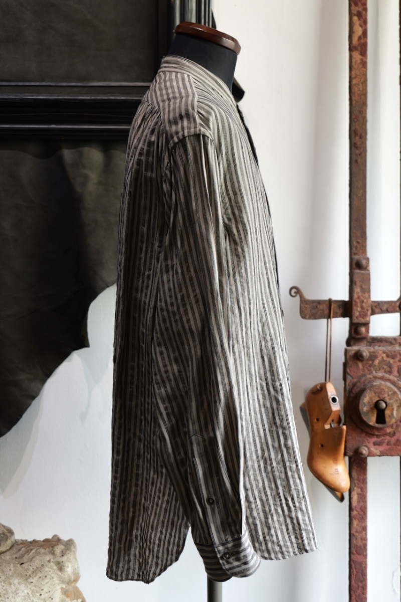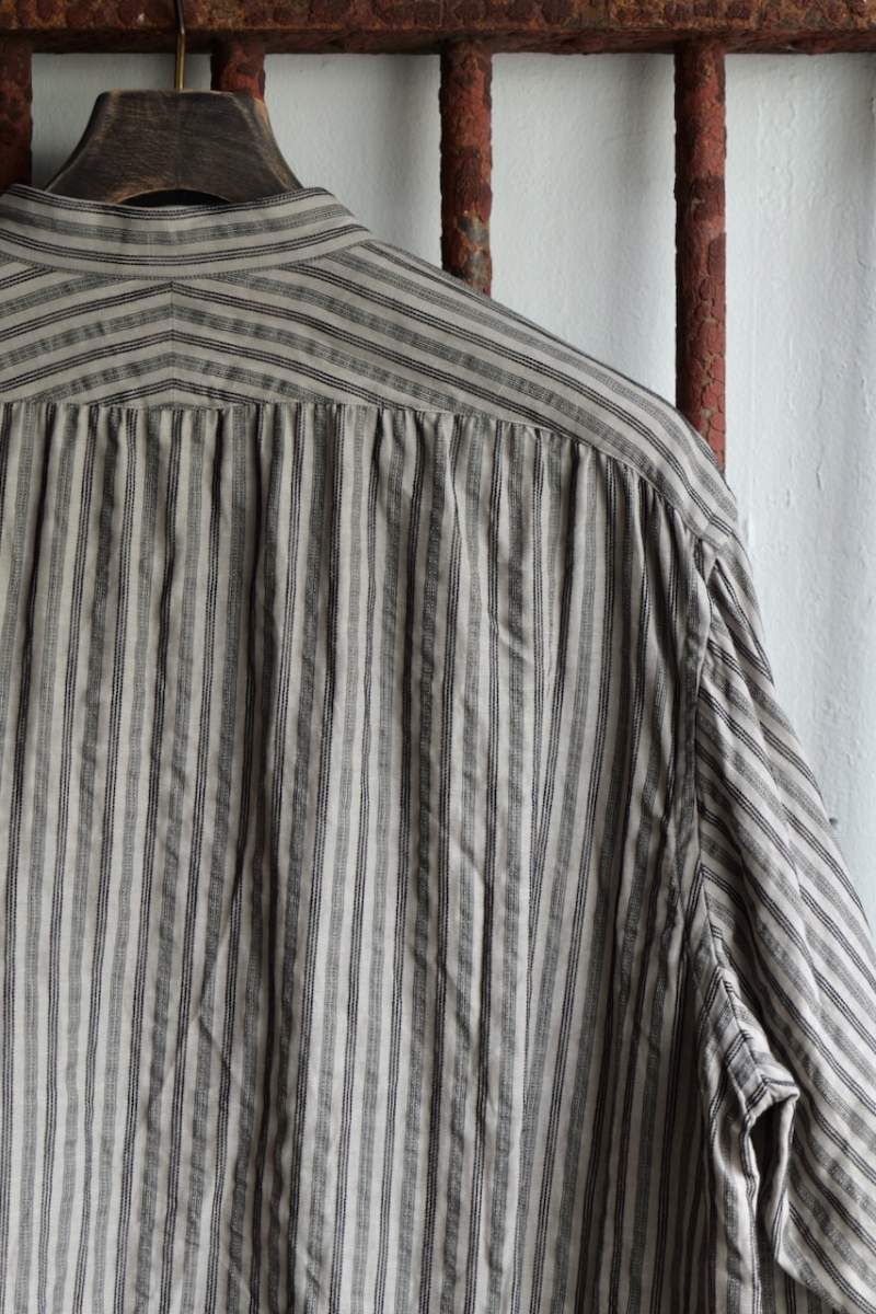 ・ヨークにギャザーを施したヴィンテージ感のあるバンドカラーシャツです。