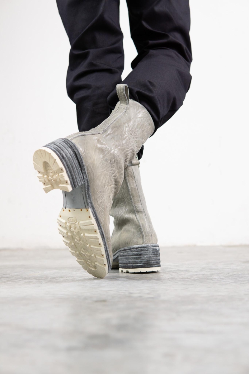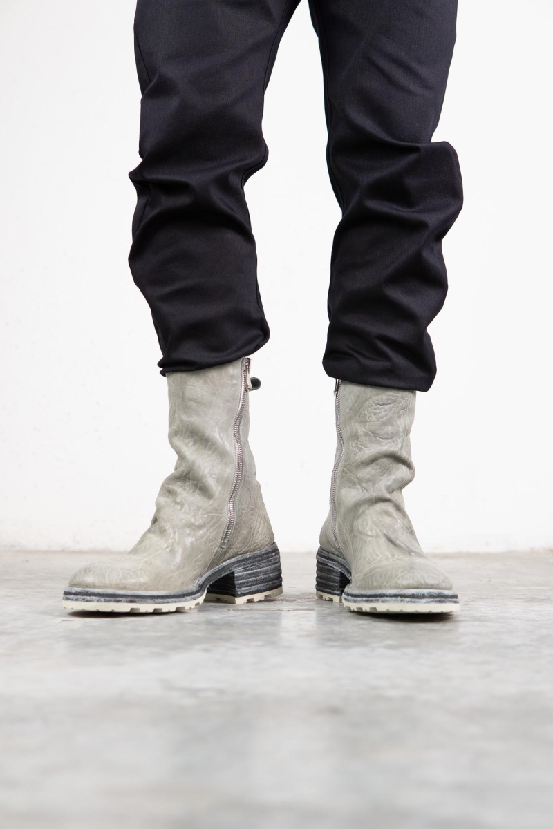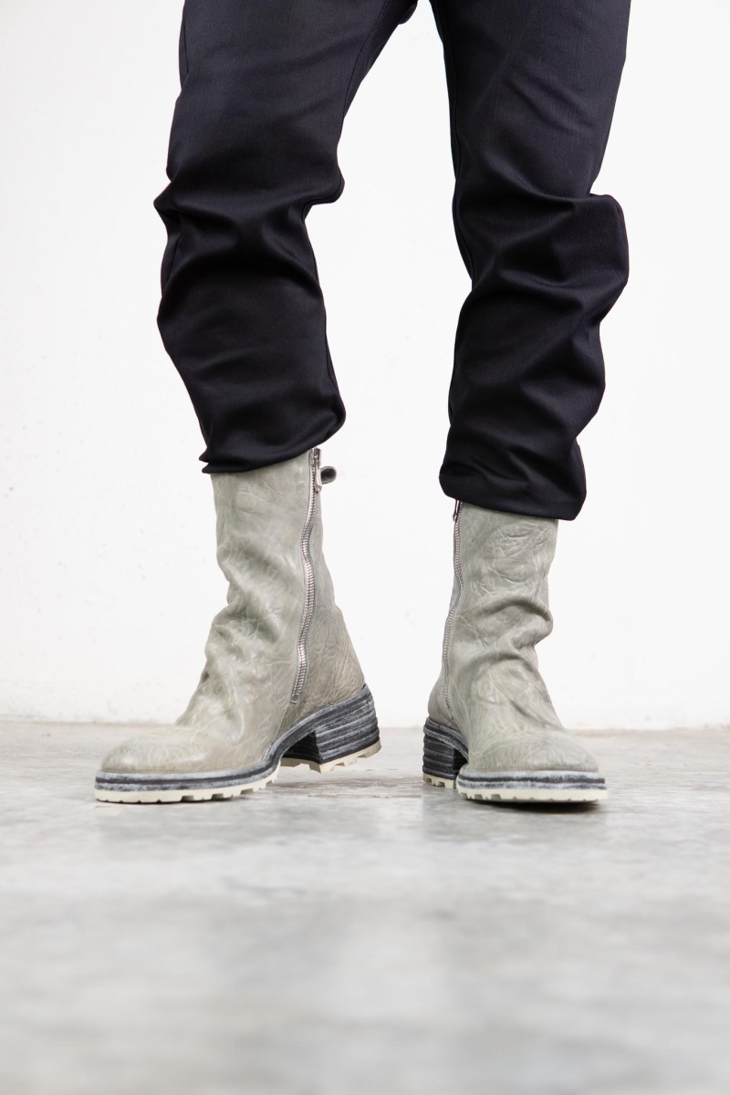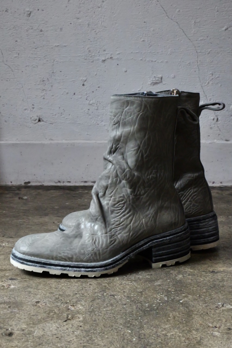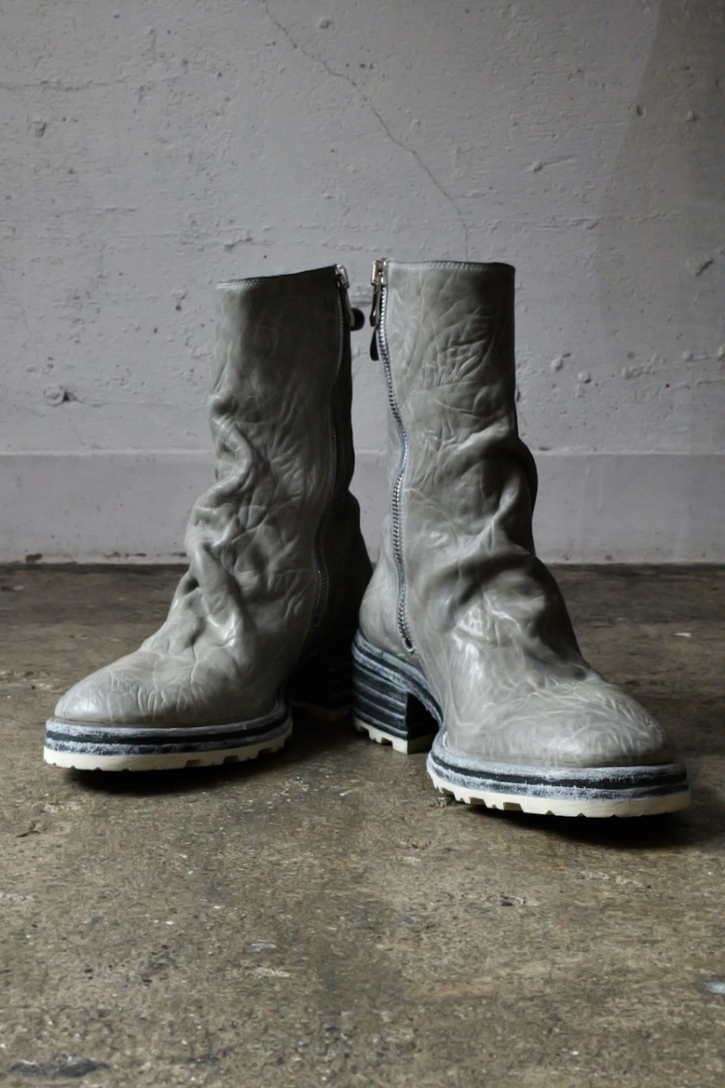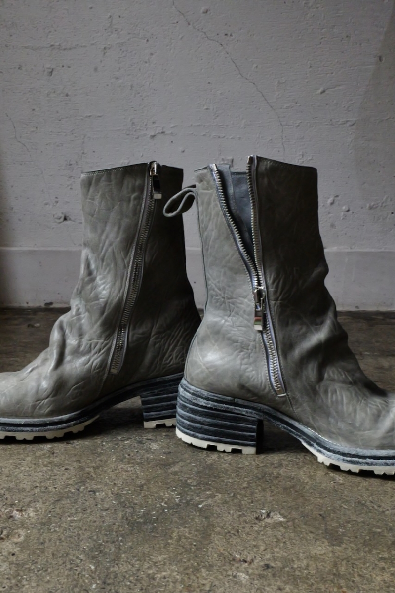 HORSE WHTE RAGGRINZITA LEATHER SZ-1L SIDE ZIP LONG LINED #2LEATHER SOLES+VIBRAM PIECE DYED