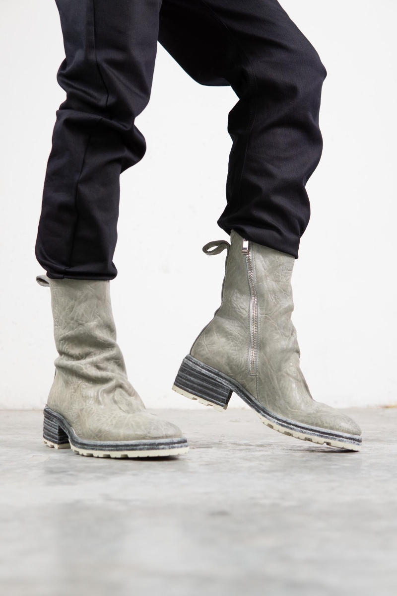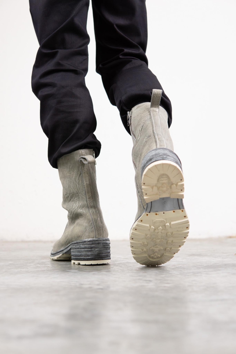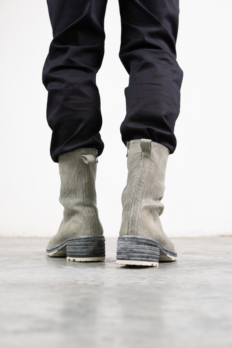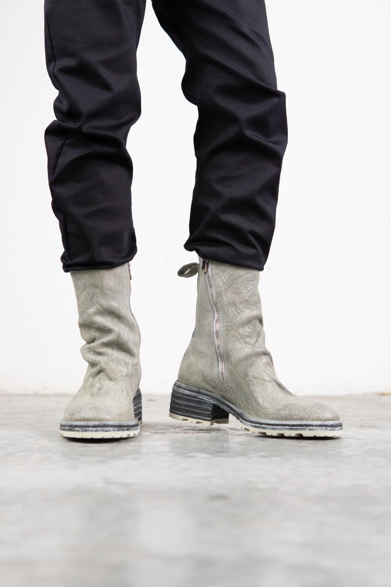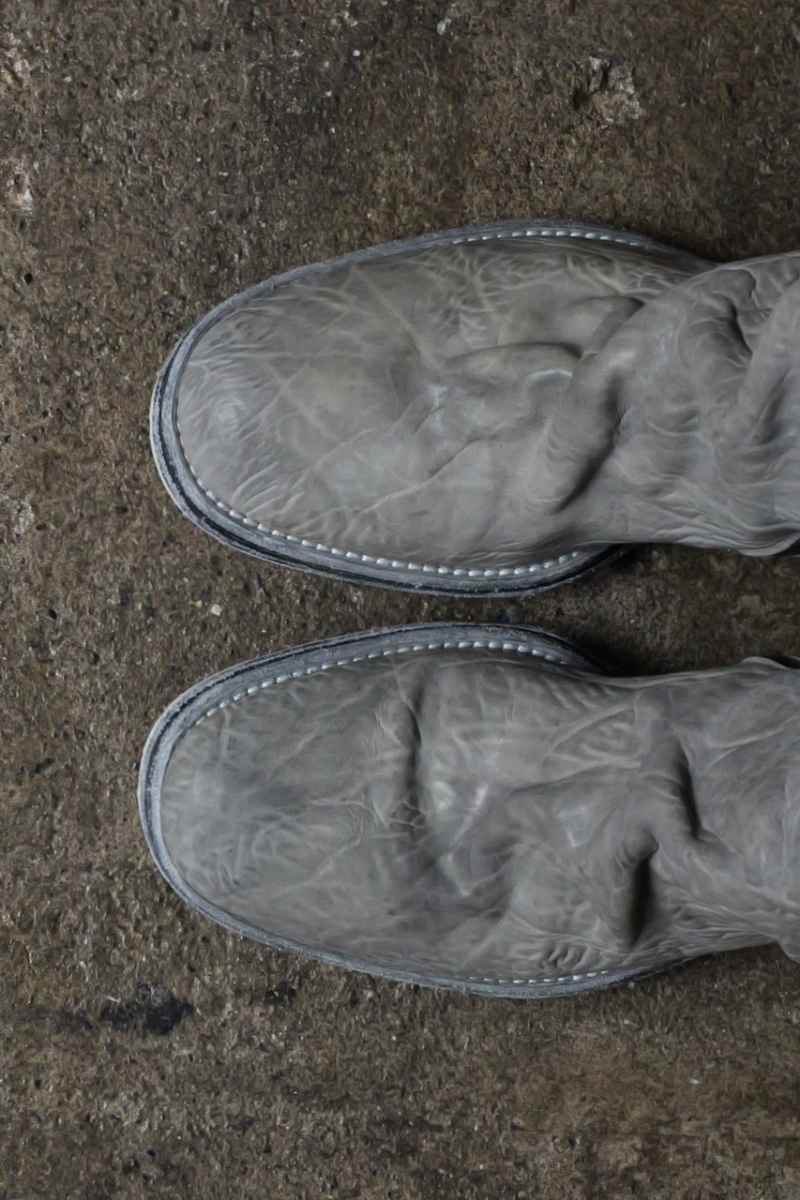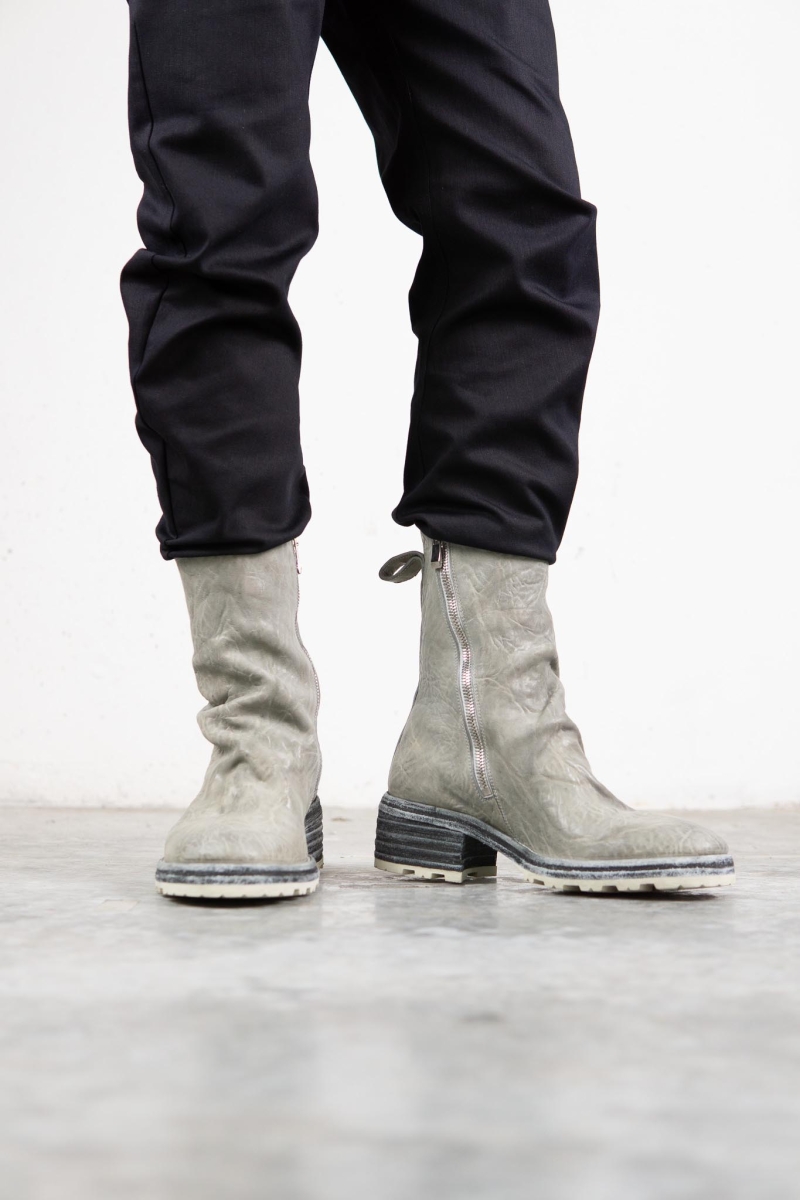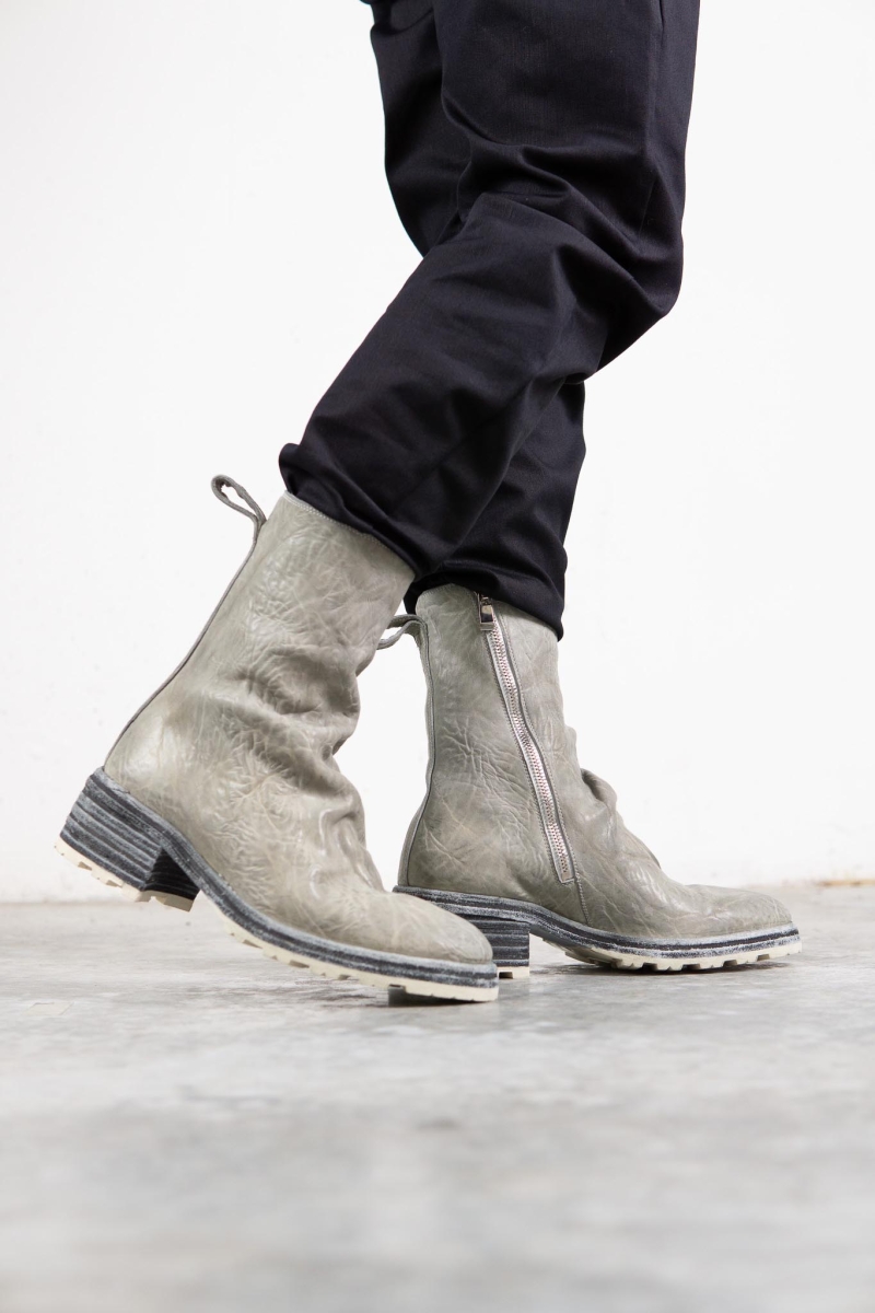 HORSE WHTE RAGGRINZITA LEATHER SZ-1L SIDE ZIP LONG LINED #2LEATHER SOLES+VIBRAM PIECE DYED