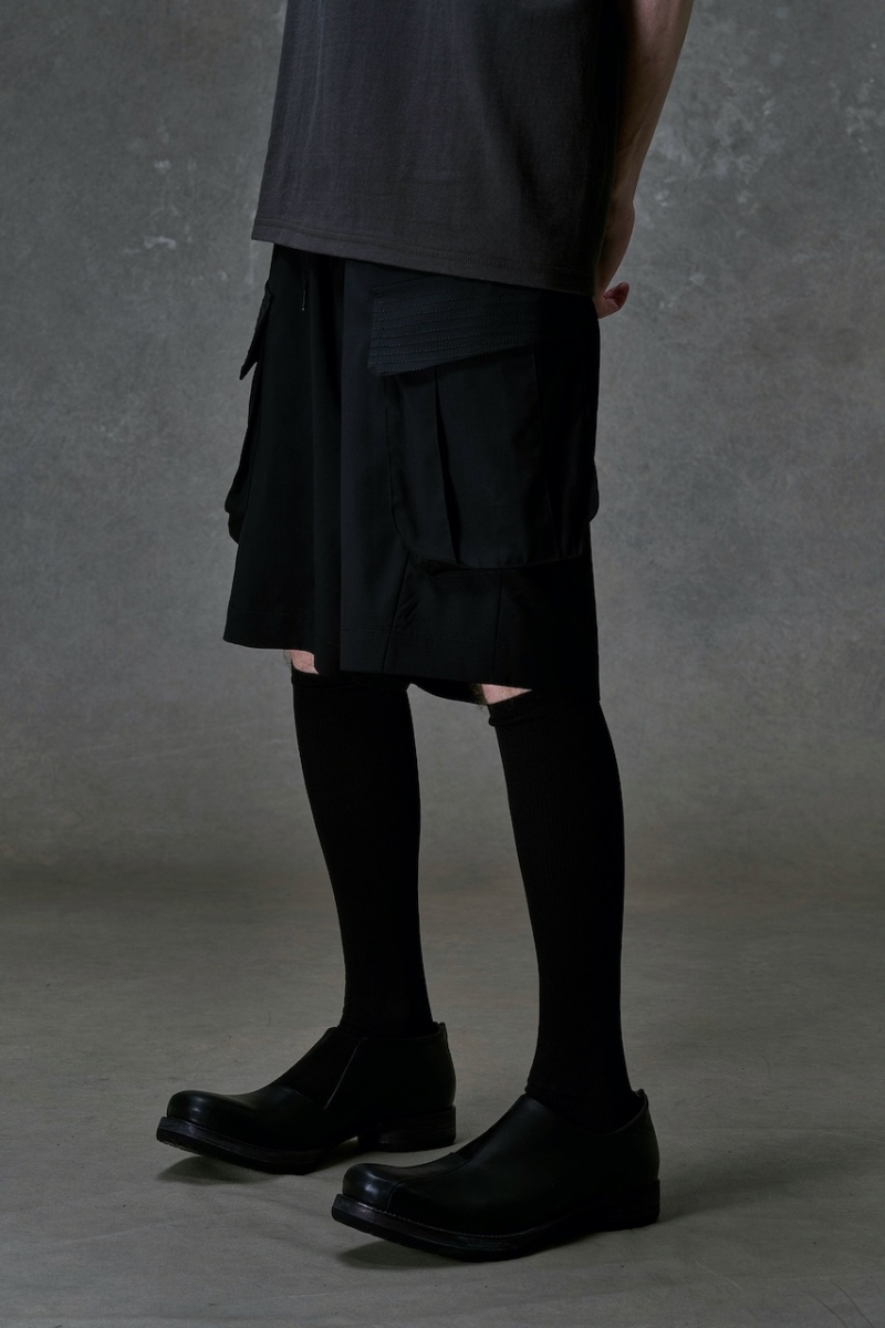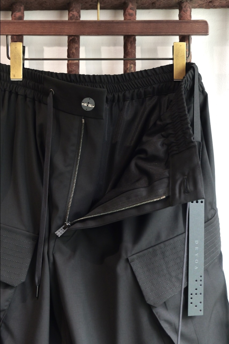 PTJ-RADC. Short Cargo Pants Shirt Super 120’s Merino Wool. Black. DEVOA.