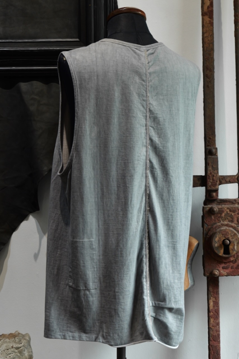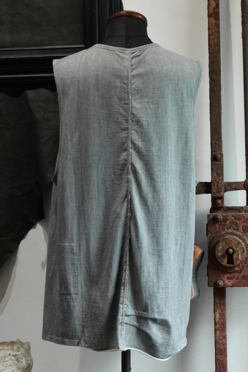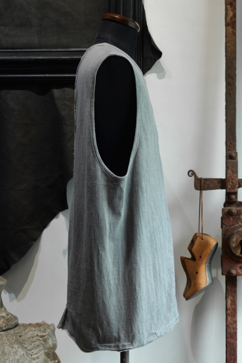 酷暑の中でも快適に着用できる軽やかな仕上がりで、レイヤードスタイルにも適しています。
