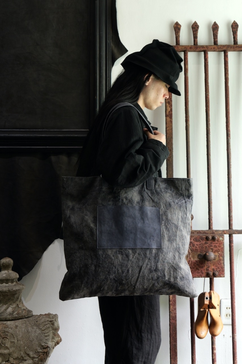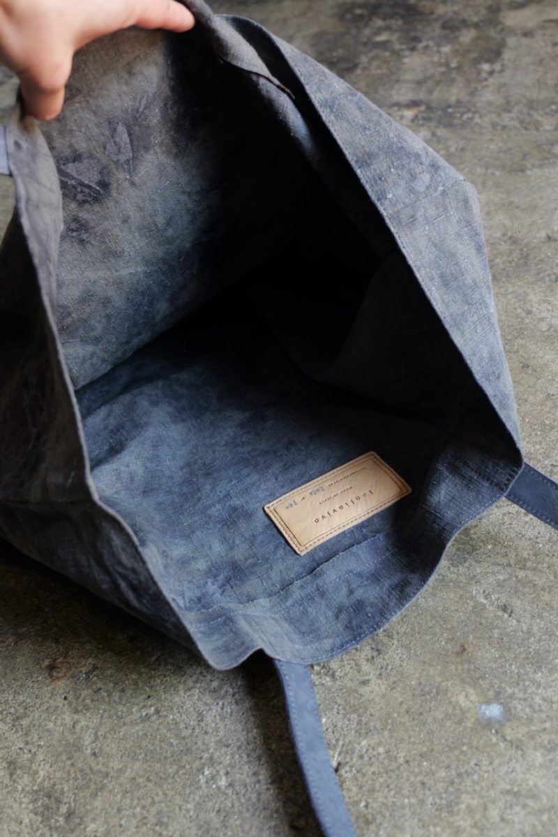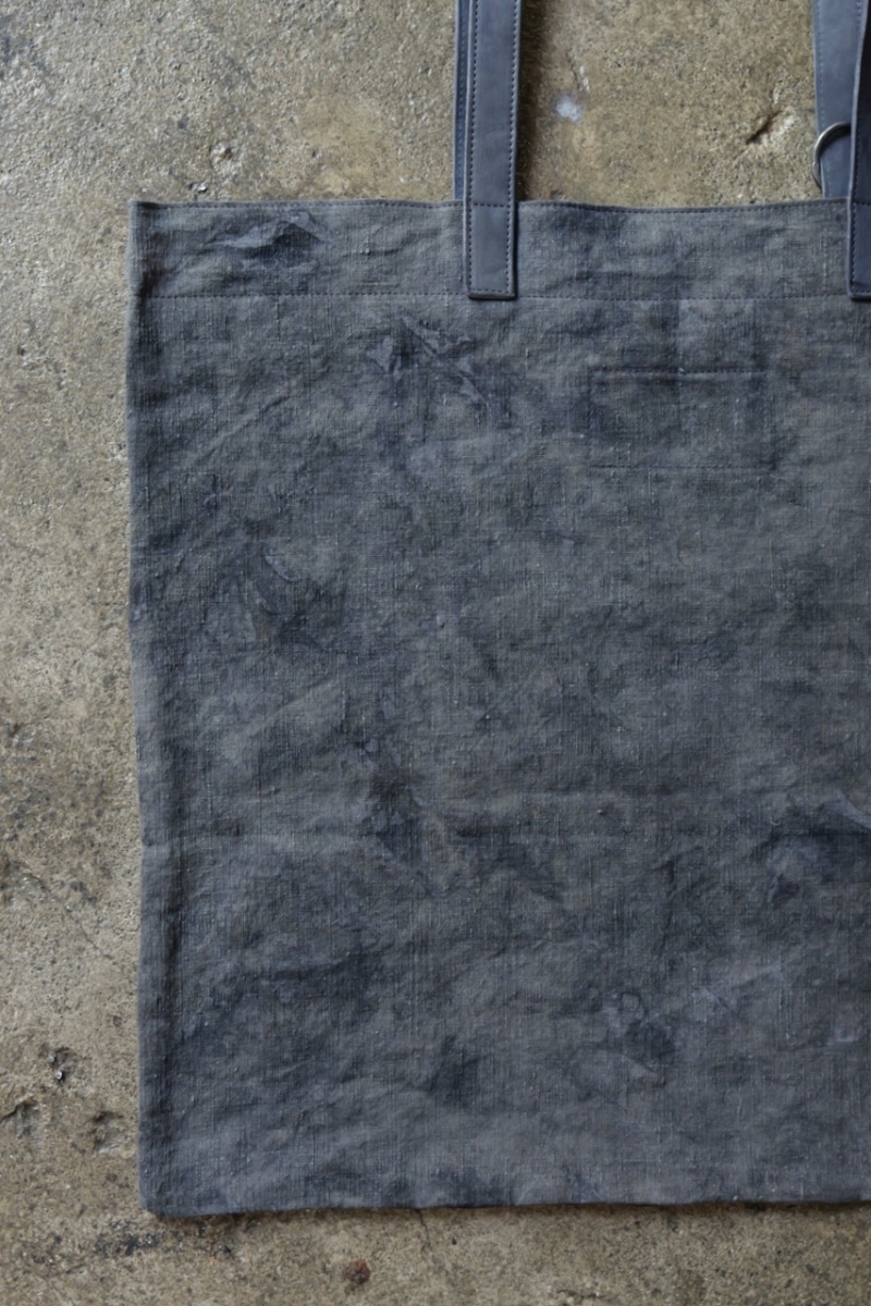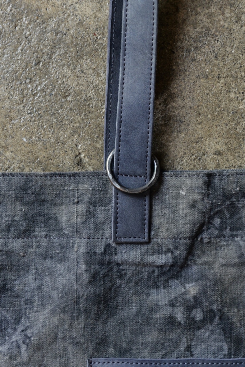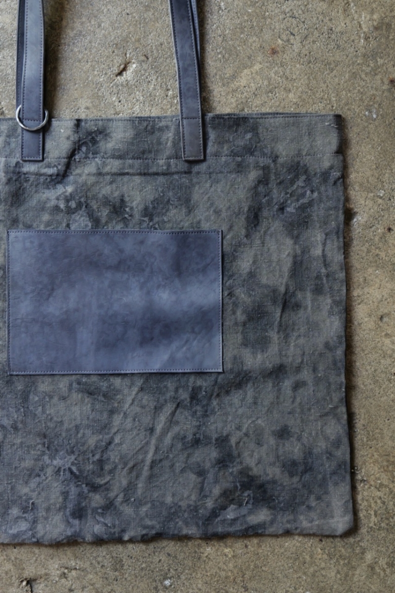ヘンプにはムラ感のある染色を施し、奥行きのある表情に仕上げています。