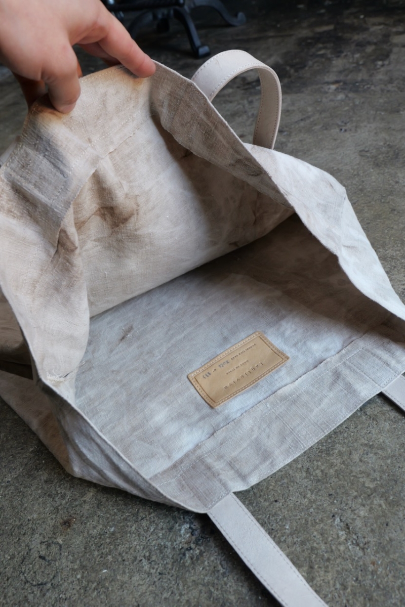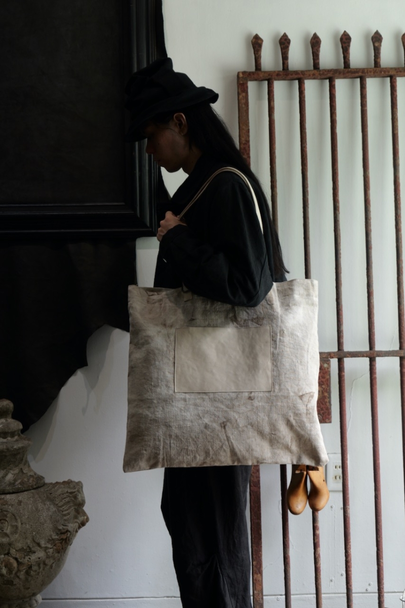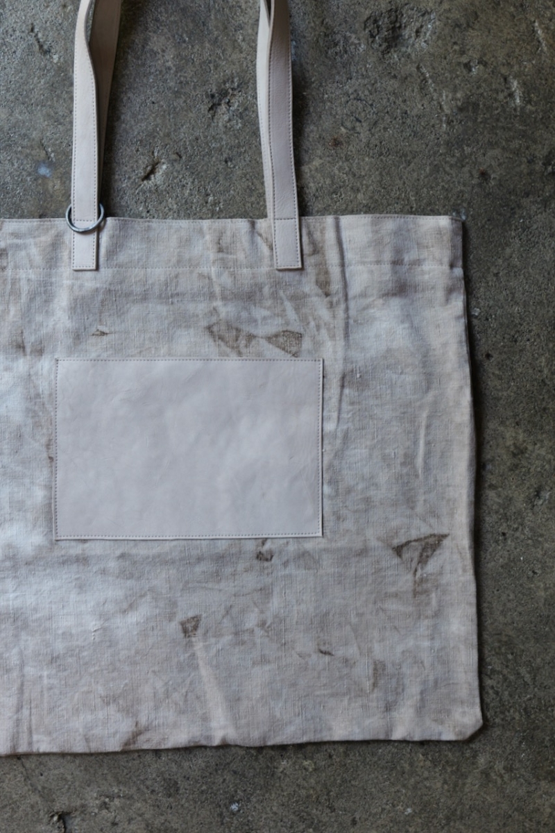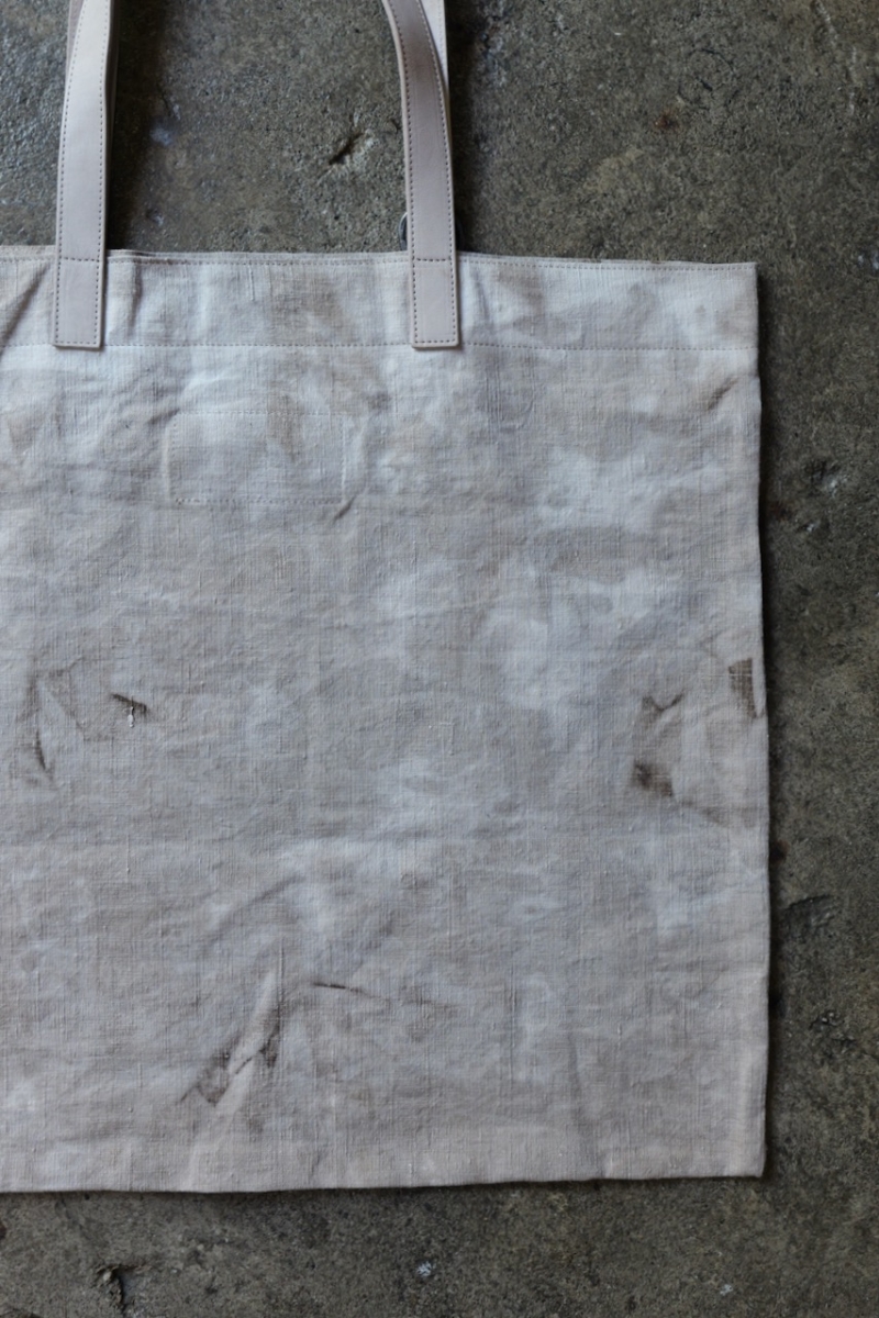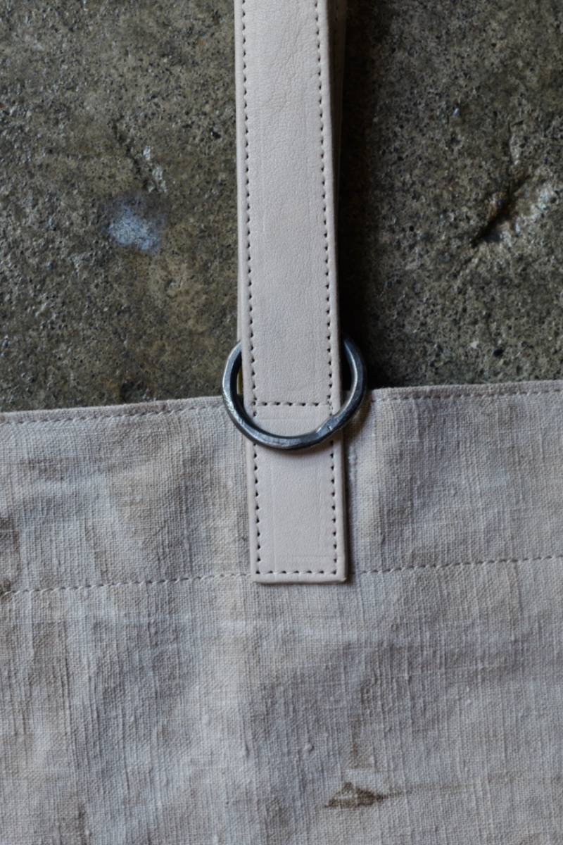 ヘンプにはムラ感のある染色を施し、奥行きのある表情に仕上げています。