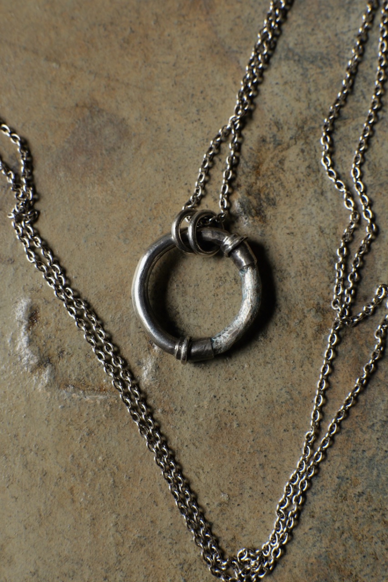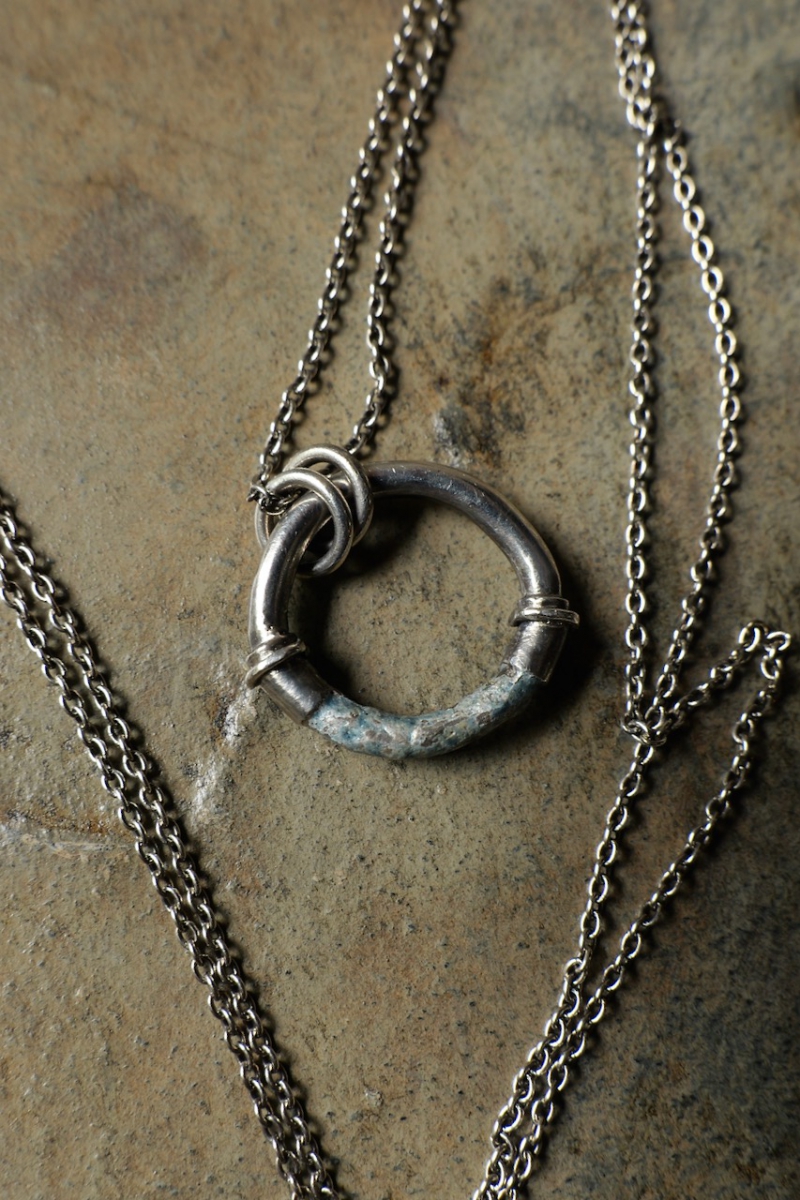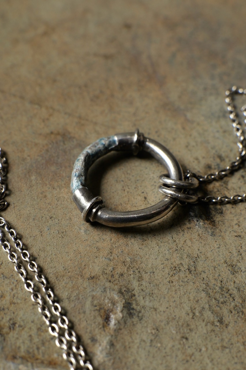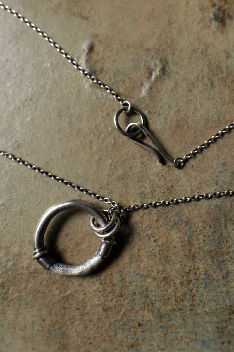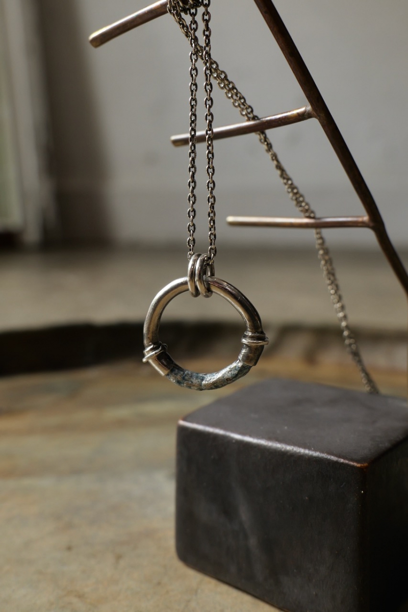 ネックレストップはリングをモチーフに敢えて歪ませています。