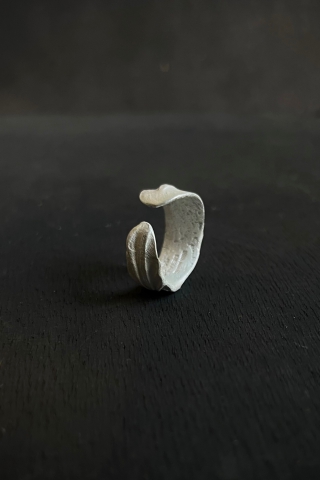 バンデージからインズピレーションを受けたデザイナーが、シルバー925素材で製作したバンデージリングです。バンデージの持つ色や質感、皺などの美しさを体現しています。こちらのサイズは各サイズおおよそのサイズ感となっております。製作は全て日本の自社アトリエにてデザイナーが自ら一点一点製作しています。そのため同型の作品でも、雰囲気がそれぞれ異なるのが特長です。ブランドオリジナルのケースが付属します。