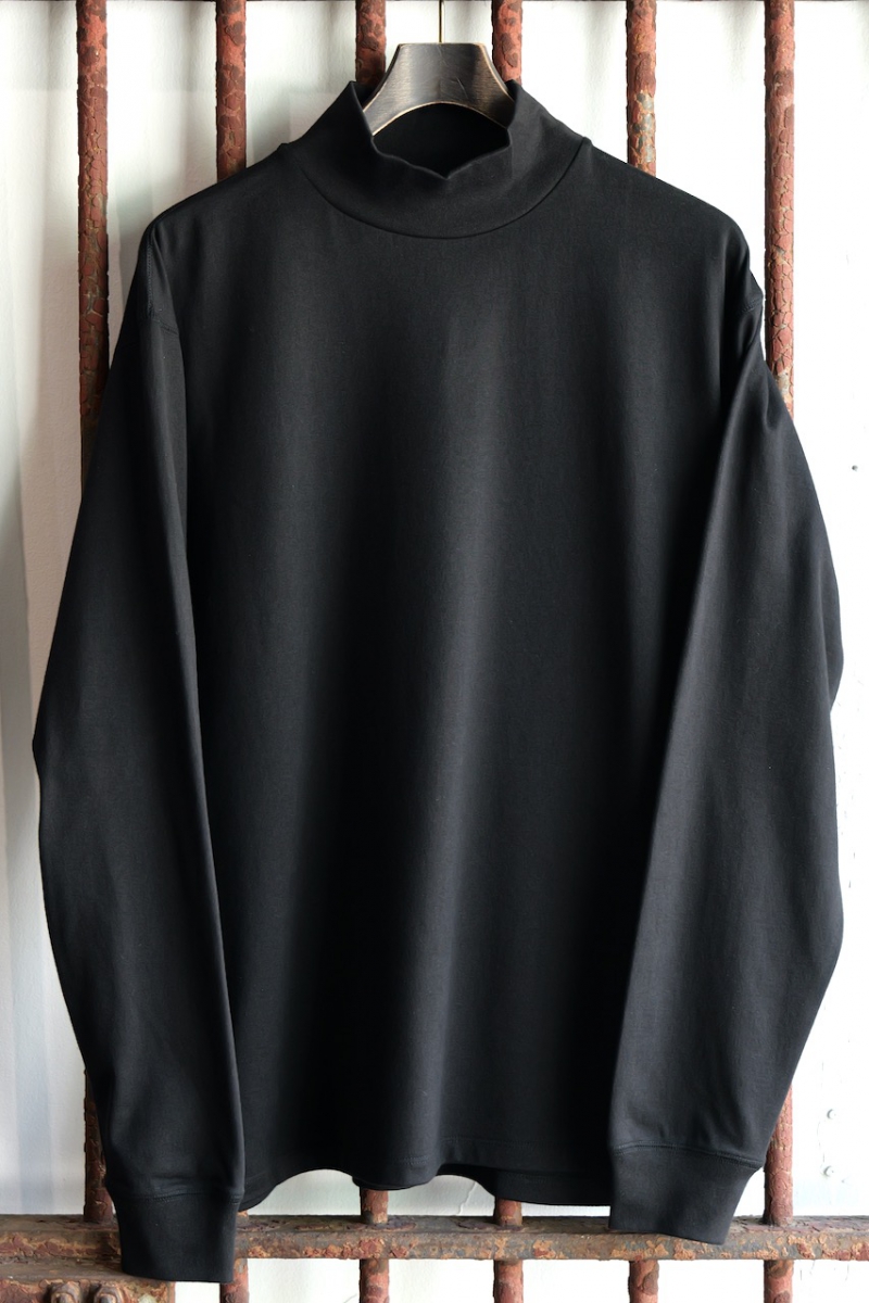 TSHIRT004. Mock Neck Long Sleeve T-Shirt Silk Suvin Rever Jersey. Black. Collection 005. calmlence.