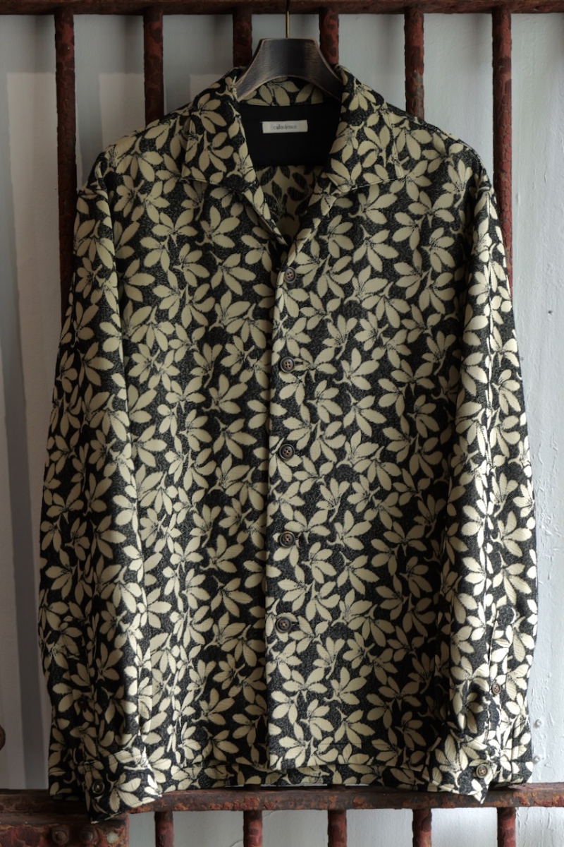 SHIRT029. Classic Open Collar Long Sleeve Shirt Leaves Jacquad. Black. Collection 005. calmlence.