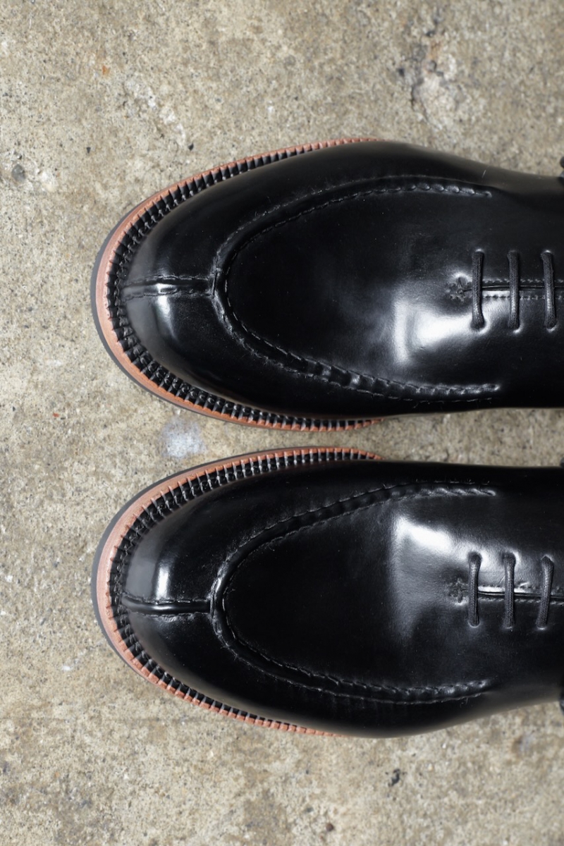 SHOES002. U-tip Belted Whole Cut Shoes Shinki Oil Cordovan. Black. calmlence.