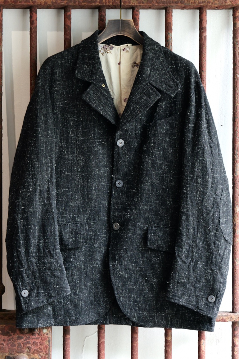 JACKET015 Peaked Lapel Sack Coat Kasuri Nanako Cloth. Black. Collection 003. calmlence.