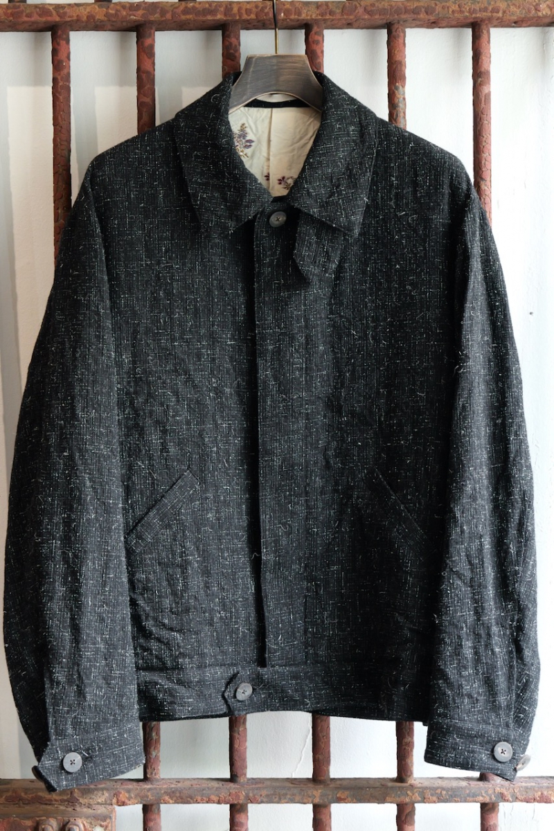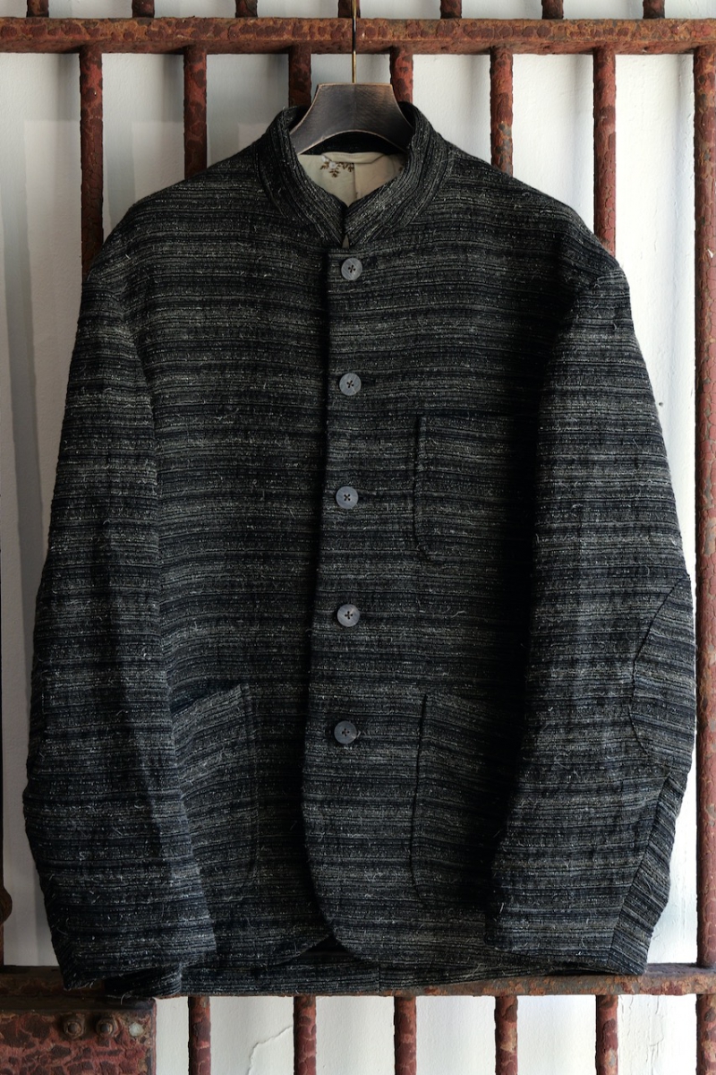 JACKET033. Stand Collar Jacket Cotton Sashiko Cloth. Black & Gray. Collection 005. calmlence.
