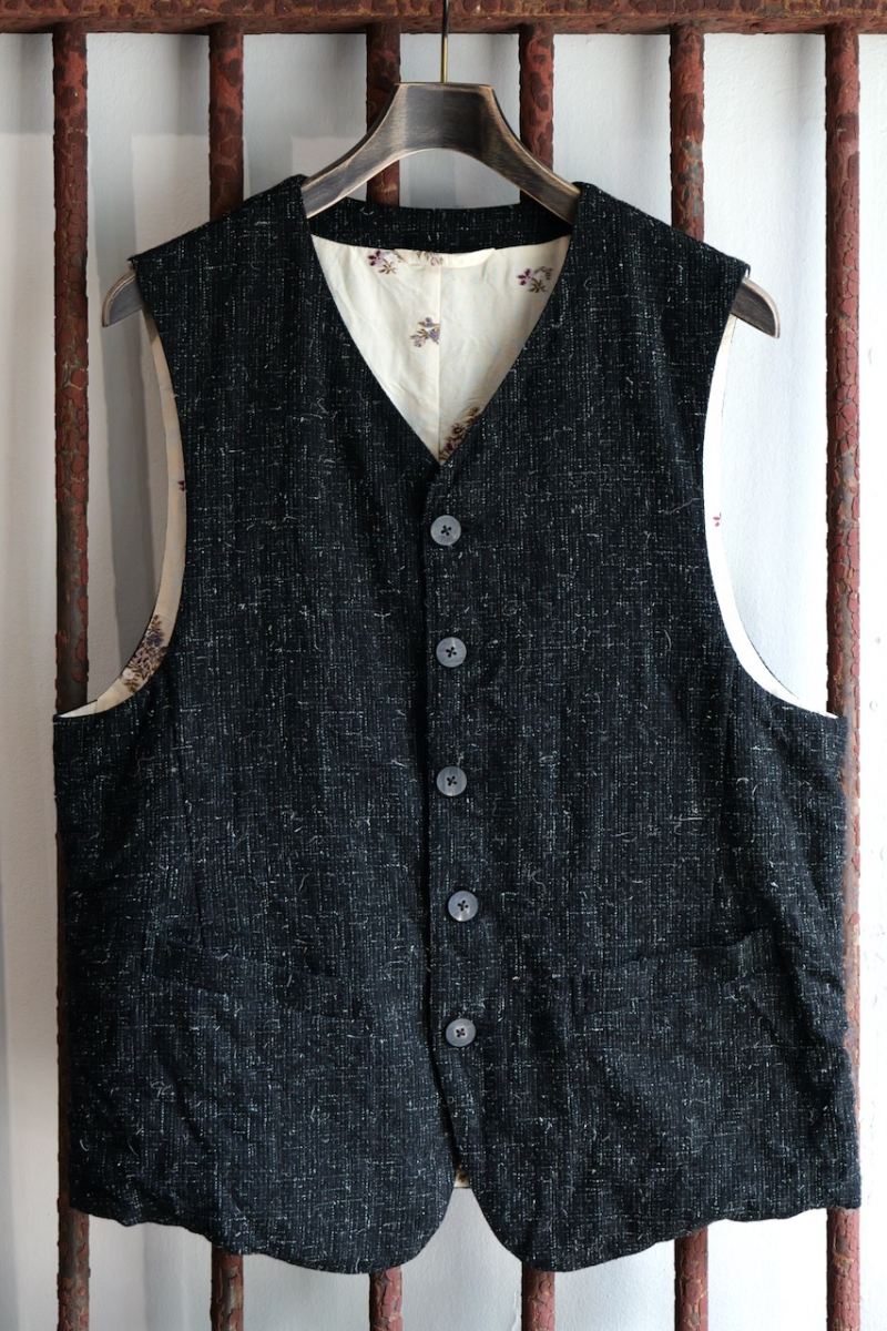 VEST007. Workers Gilet Kasuri Gabardine. Black. Collection 005. calmlence.